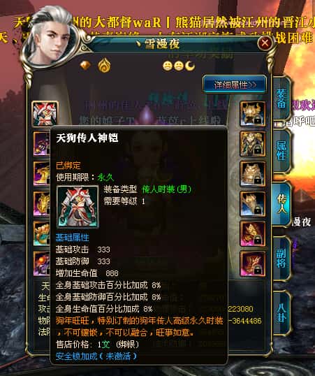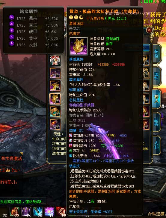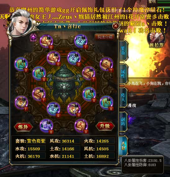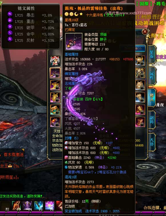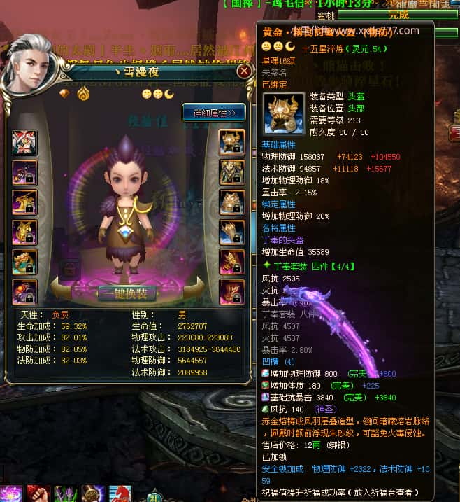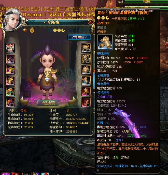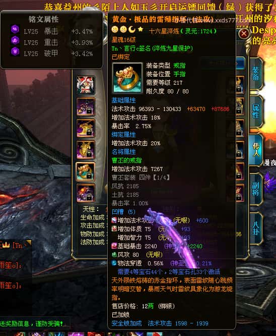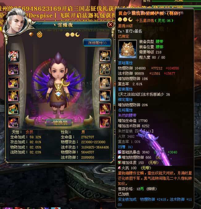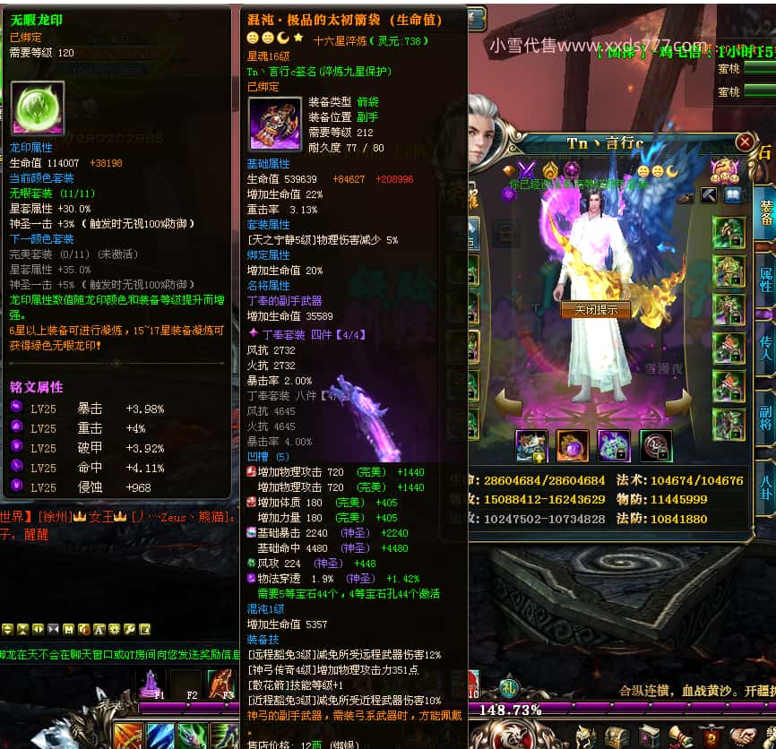 编号Z23718 Tn丶言行c 逐鹿天下 荆州 世界排名32名 28020W战力 人物黄金极品橙15X(9件混沌) 传人加强橙15X(9件黄金) 副将史诗紫15X 马黄金精良橙13X 极品紫16披风 人物星魂16级 传人16级 副将9级 马星魂16级 人物铭刻16级 点亮16星 马铭刻15级 点亮14星 人物绿龙印 马绿龙印 五六等单双属性神圣完美无瑕石头 紫绿孔