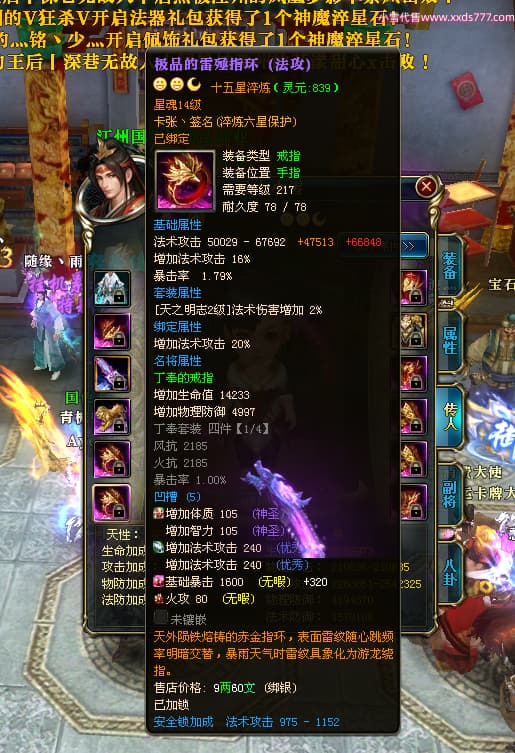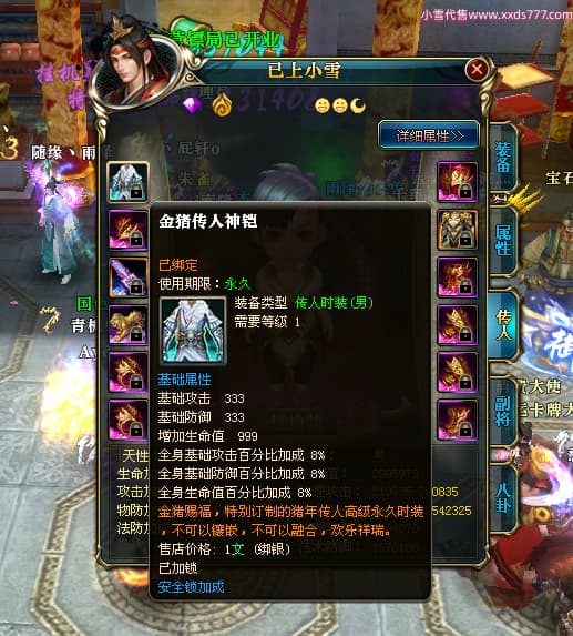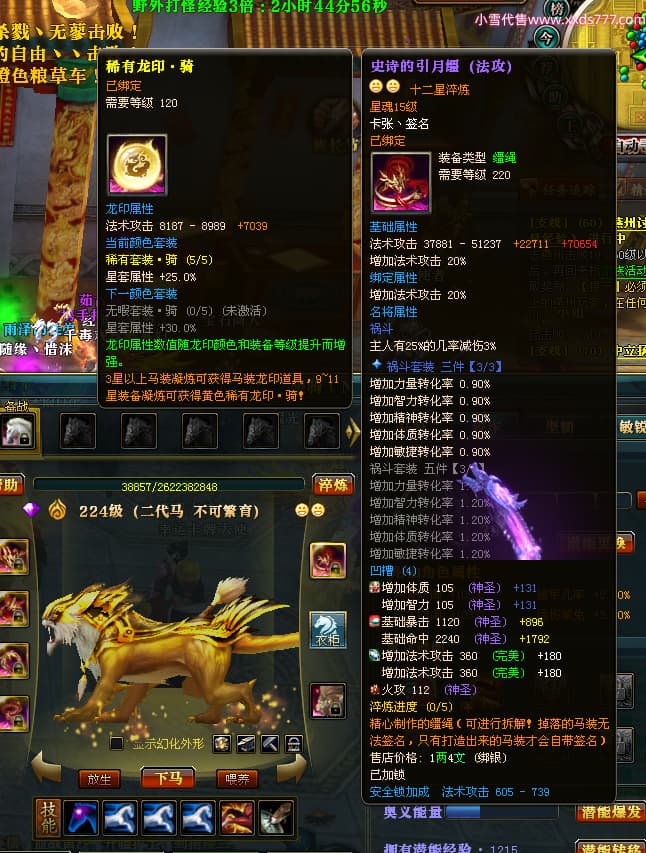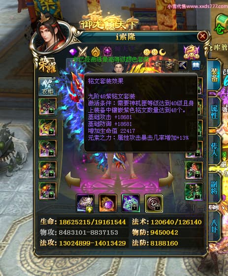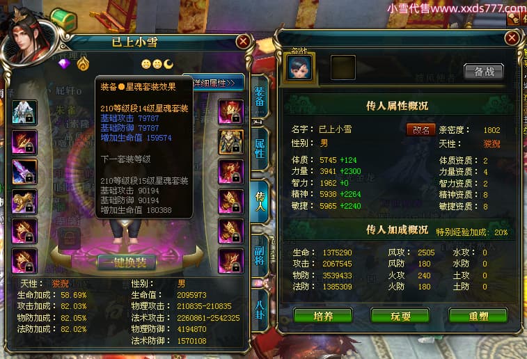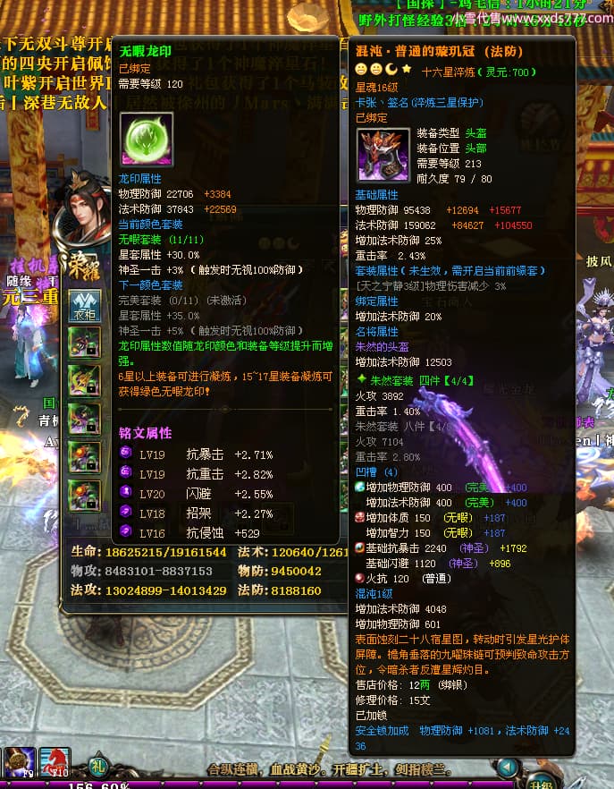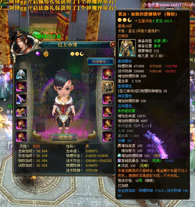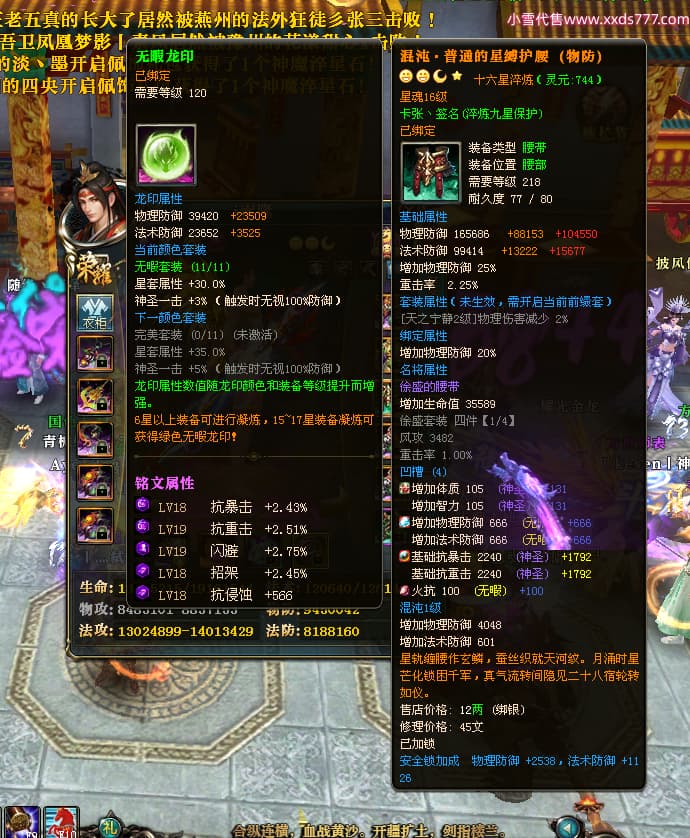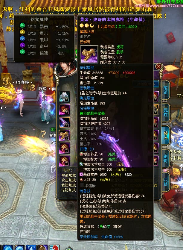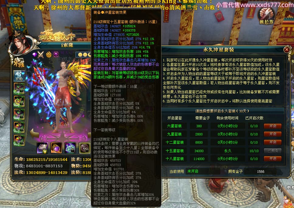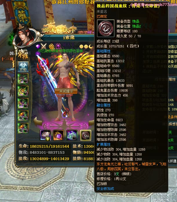 编号X23727 i索隆 龙啸风云 青州 本国排名29名 18168W战力 人物黄金普通橙16X(2件18X1件17X9件混沌) 传人精良紫15X 副将精良橙15X 马史诗紫12X 精良紫15披风 人物星魂16级 传人星魂14级 副将星魂6级 马星魂15级 人物铭刻15级 人物点亮16星 马铭刻12级 点亮12星 人物绿龙印 马黄龙印 五六等单双属性神圣完美优秀石头 黄蓝孔 已开启永久15星套