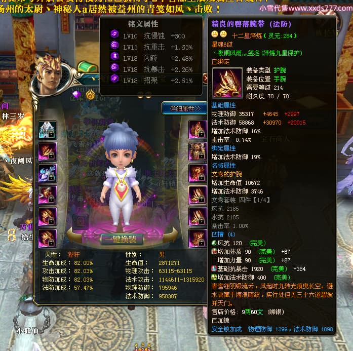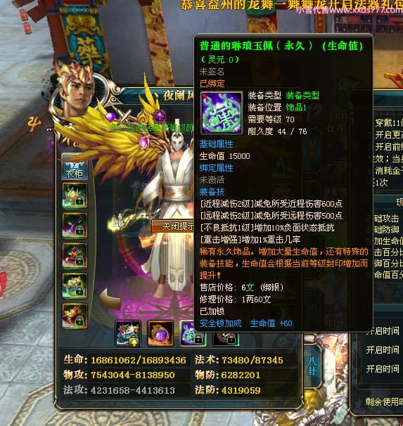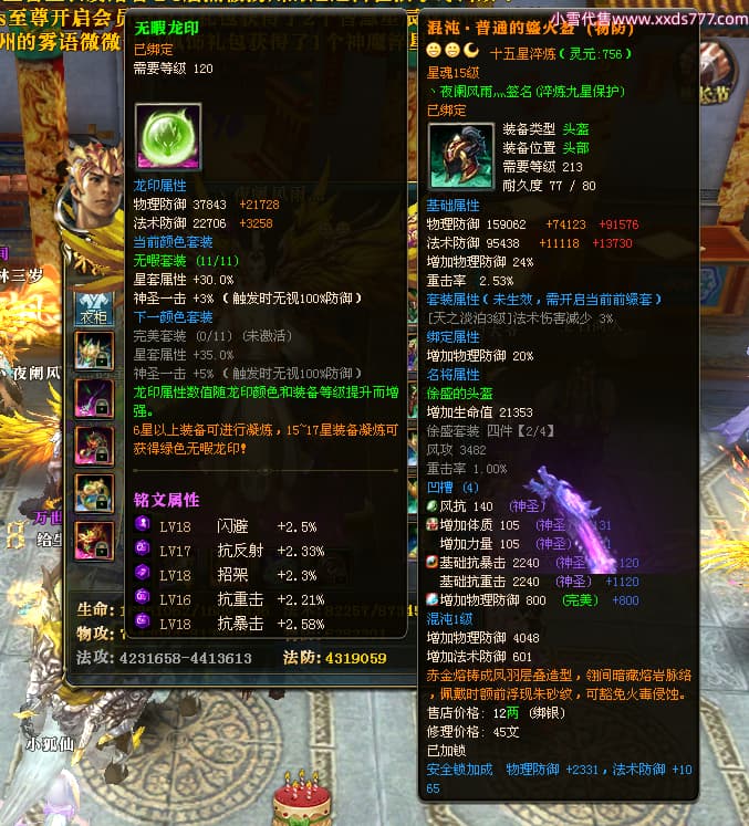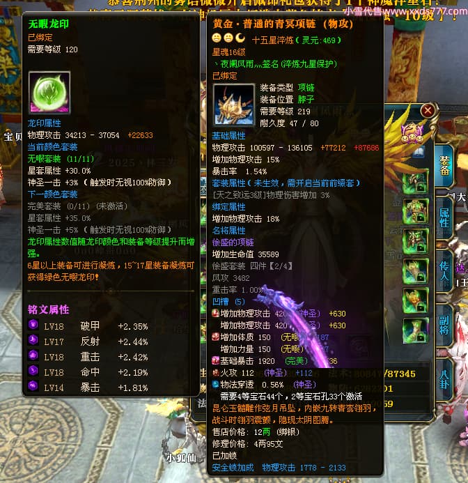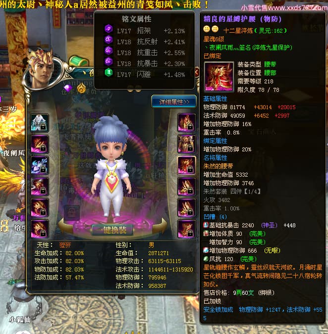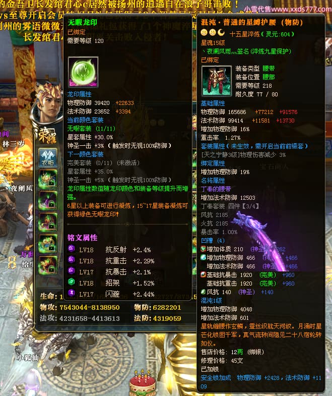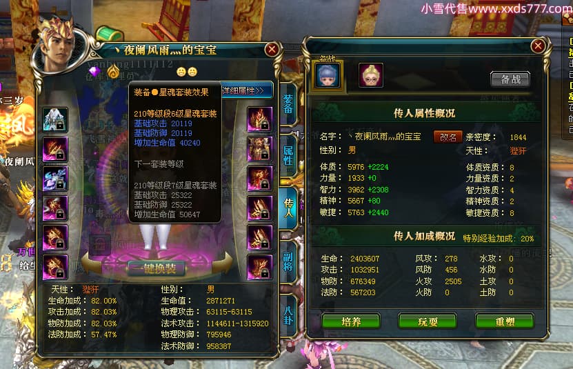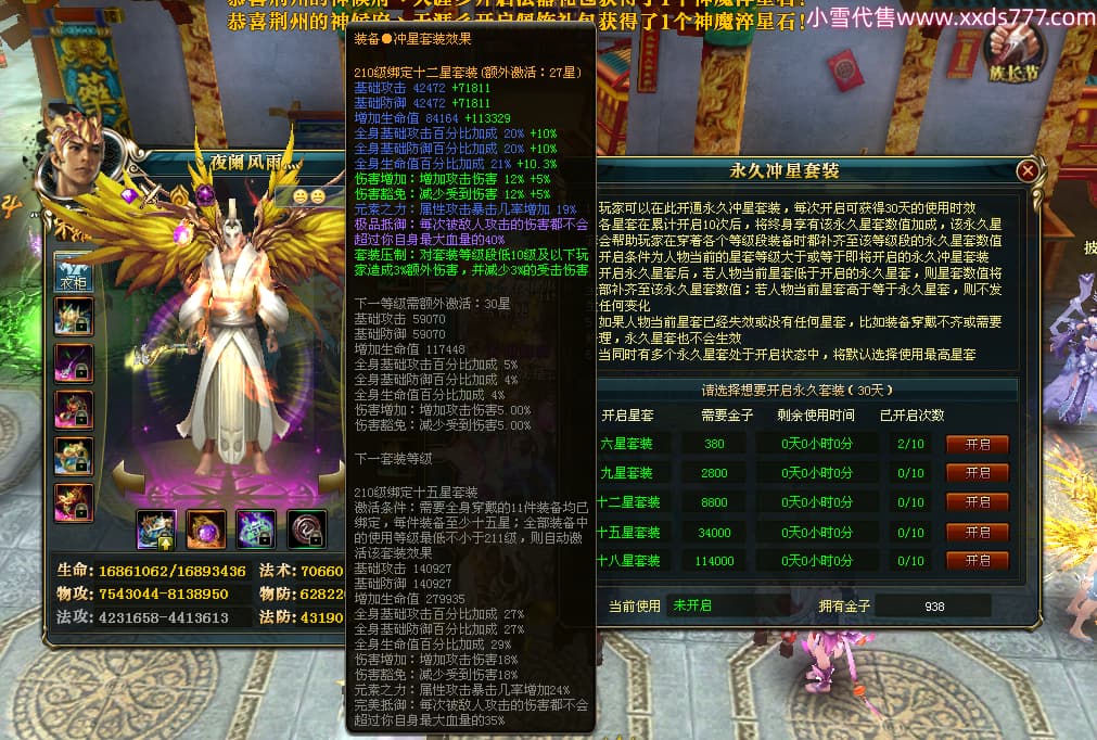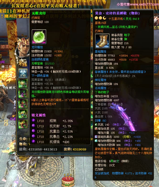 编号W23753 丶夜阑风雨灬 龙舞九州 幽州 本国排名84名 11398W战力 人物黄金普通橙12X(9件15X3件混沌) 传人精良紫12X 副将极品紫12X 马史诗紫10X 精良紫15披风 人物星魂15级 传人星魂6级 副将星魂6级 马星魂8级 人物铭刻15级 人物点亮3件16星其余14星 马铭刻12级 点亮10星 人绿龙印 马黄龙印 五六等单双属性神圣完美优秀石头 蓝黄孔