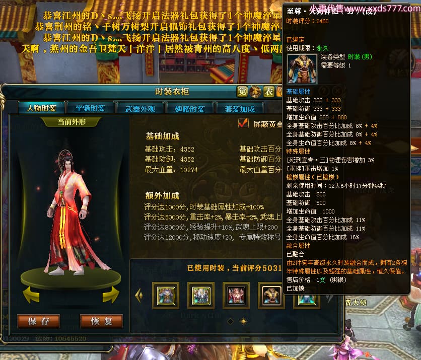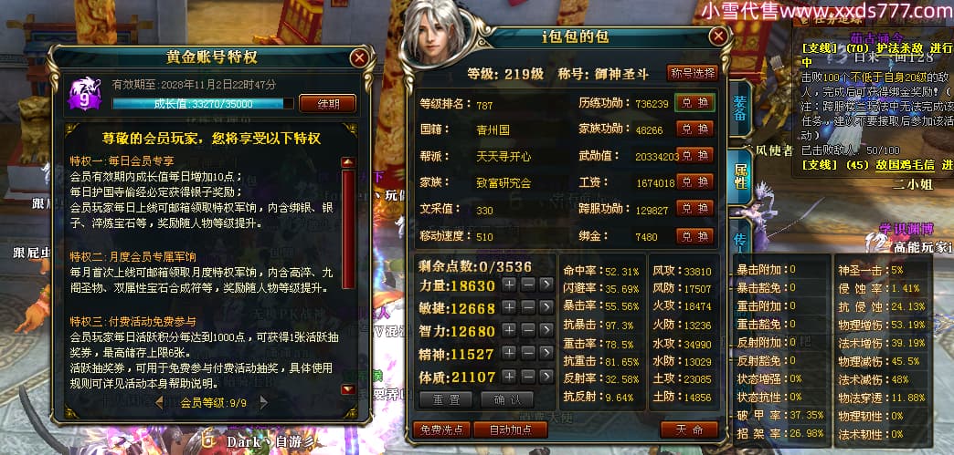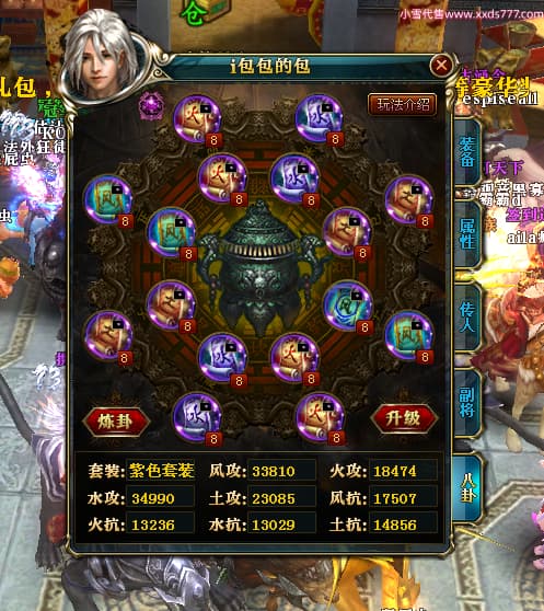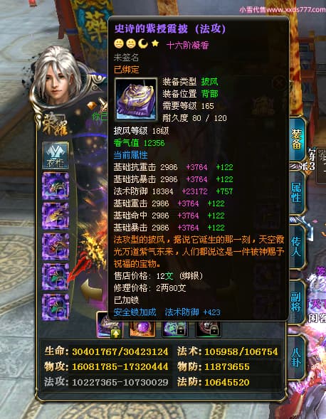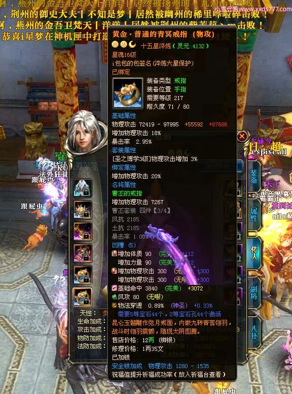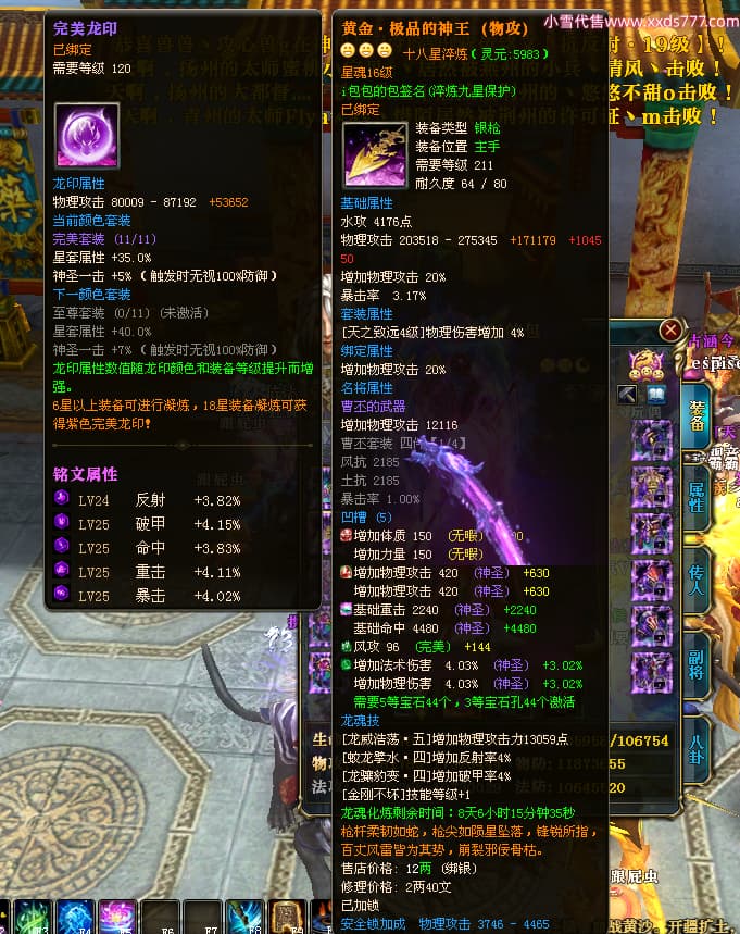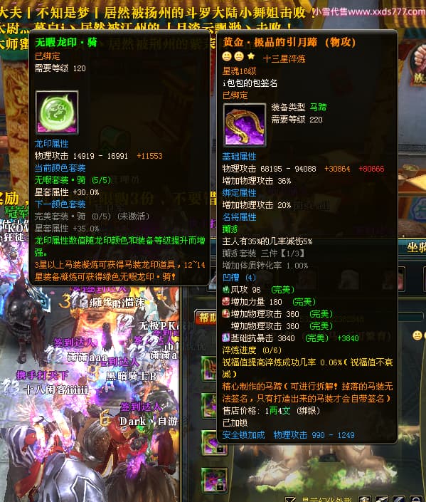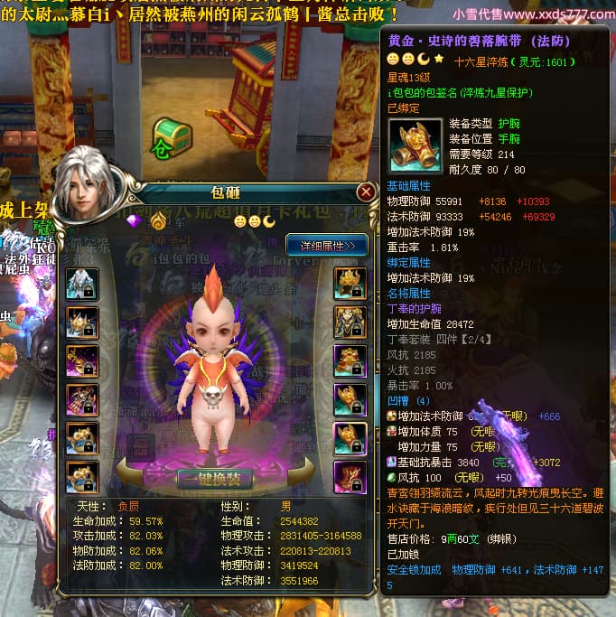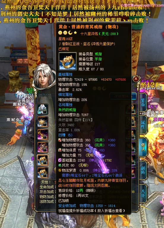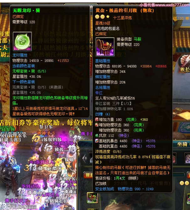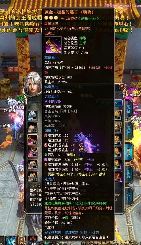 编号X23765 i包包的包 龙啸风云 青州 世界排名38名 27767W战力 人物黄金精良橙15X(5件18X9件混沌) 传人黄金史诗紫15X 副将精良橙15X 马黄金极品橙13X(双潜能52级50级) 史诗紫16披风 人物星魂16级 传人星魂13级 副将星魂6级 马星魂16级 人物铭刻1件18级1件17级其余16级 人物点亮1件18星其余16星 马铭刻13级 点亮14星 人物紫龙印 马绿龙印 六等单双属性神圣完美优秀石头 黄绿孔 已开启永久18星套