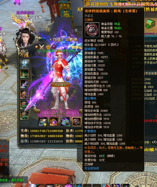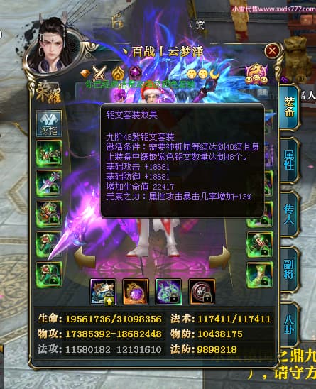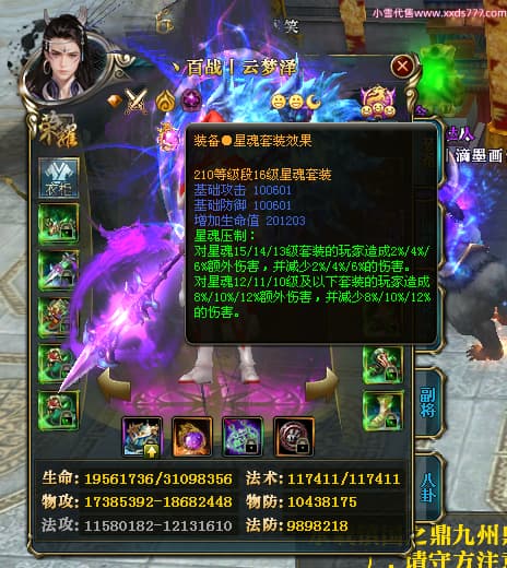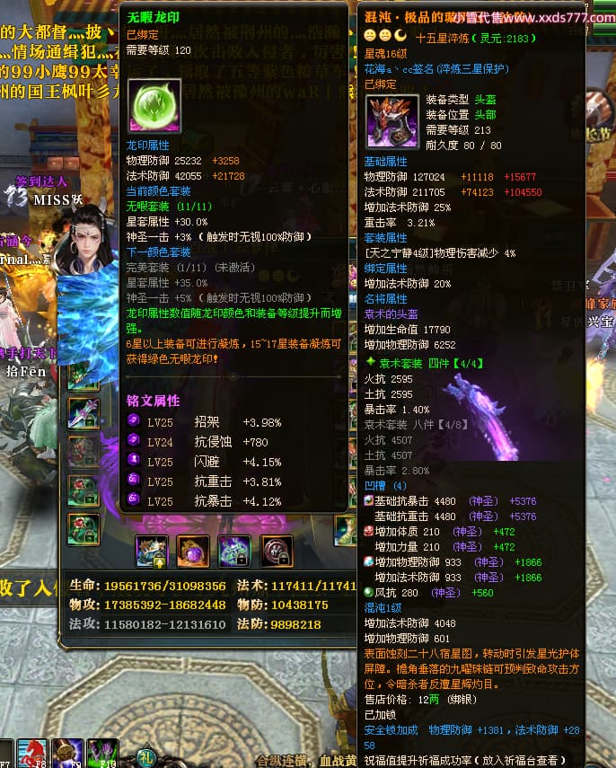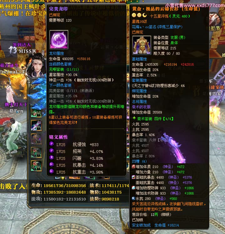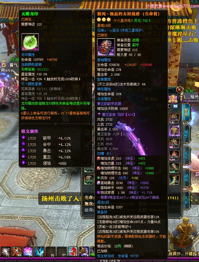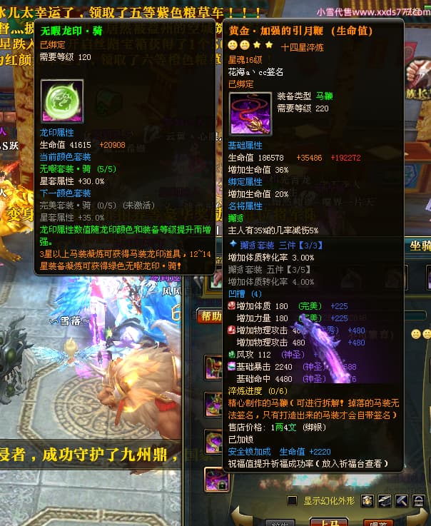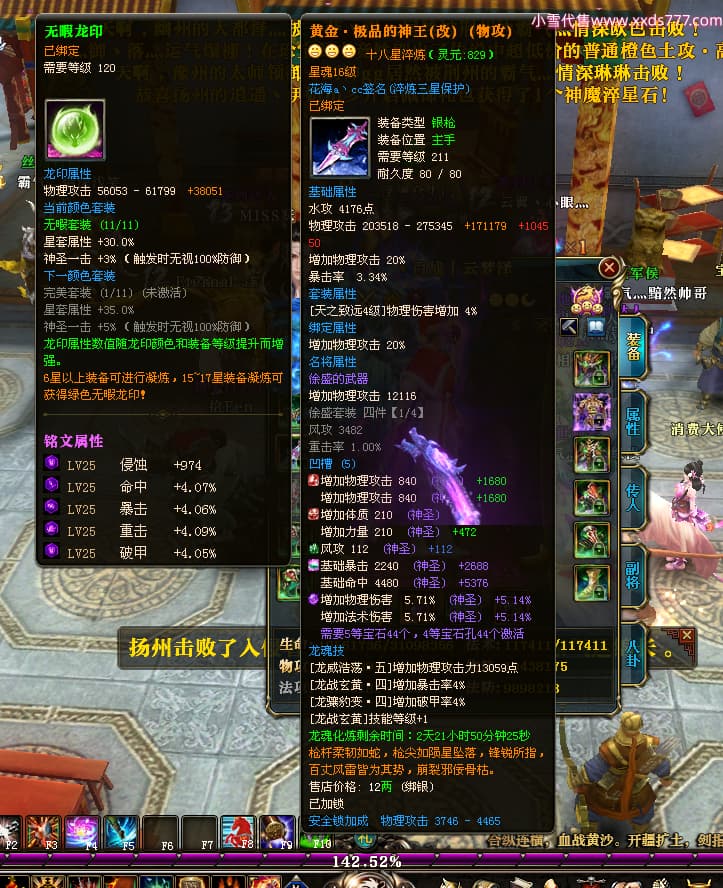 编号W23769 丶百战丨云梦泽 龙舞九州 荆州 世界排名39名 31421W战力 人物黄金极品橙15X(6件18X8件混沌) 传人史诗紫15X 副将精良紫15X 马黄金加强橙14X(双潜能66级65级) 史诗紫17披风 人物星魂16级 传人星魂16级 副将星魂9级 马星魂16级 人物铭刻1件18级1件17级1件16级其余15级 点亮16星 马铭刻15级 点亮14星 人物绿龙印(1件紫龙印) 马绿龙印 六等单双属性完美神圣石头 绿紫孔 已开启永久18星套