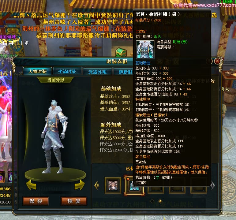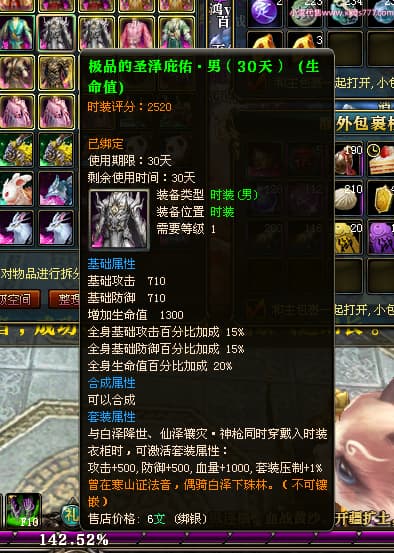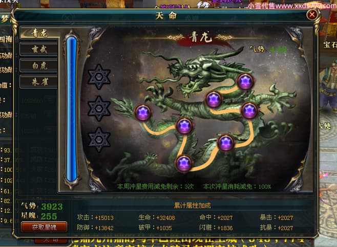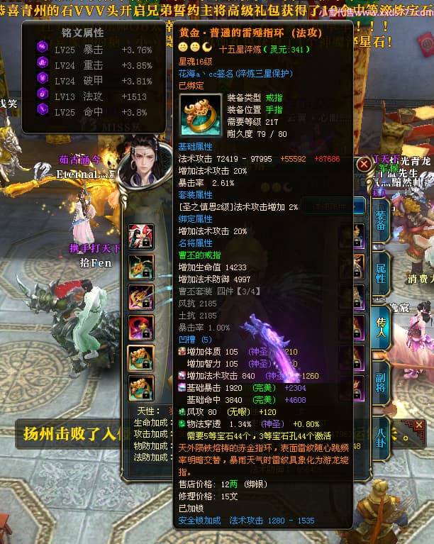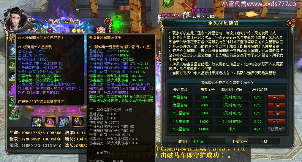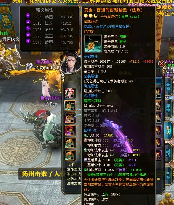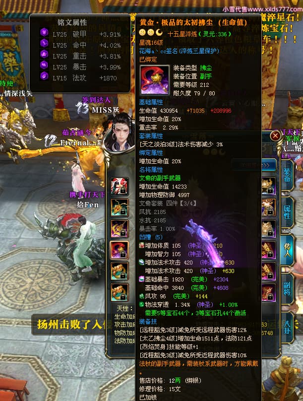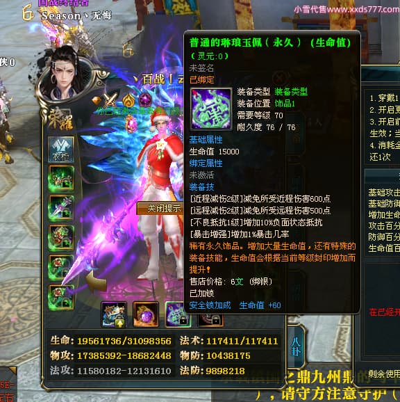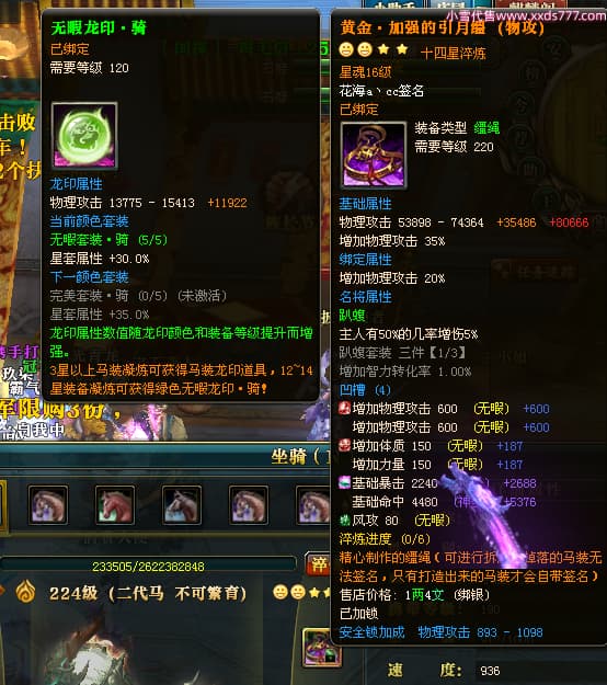 编号W23769 丶百战丨云梦泽 龙舞九州 荆州 世界排名39名 31421W战力 人物黄金极品橙15X(6件18X8件混沌) 传人史诗紫15X 副将精良紫15X 马黄金加强橙14X(双潜能66级65级) 史诗紫17披风 人物星魂16级 传人星魂16级 副将星魂9级 马星魂16级 人物铭刻1件18级1件17级1件16级其余15级 点亮16星 马铭刻15级 点亮14星 人物绿龙印(1件紫龙印) 马绿龙印 六等单双属性完美神圣石头 绿紫孔 已开启永久18星套