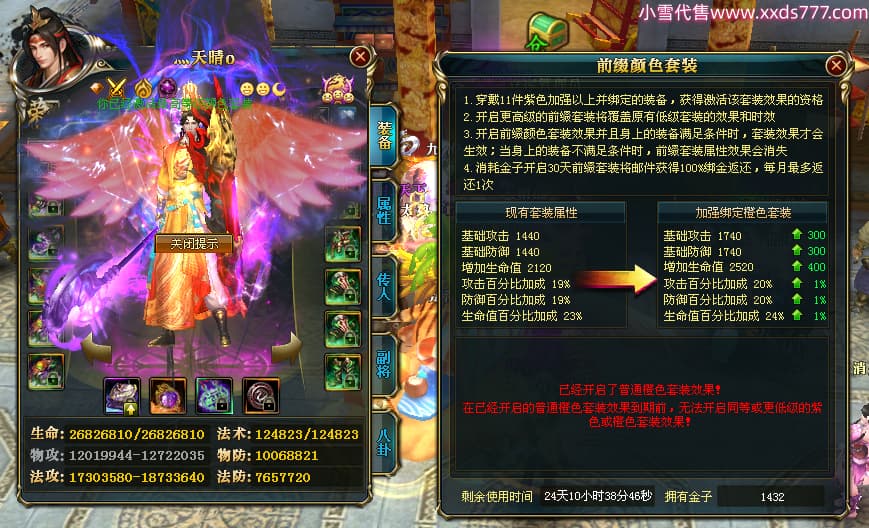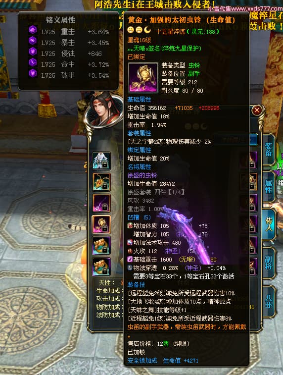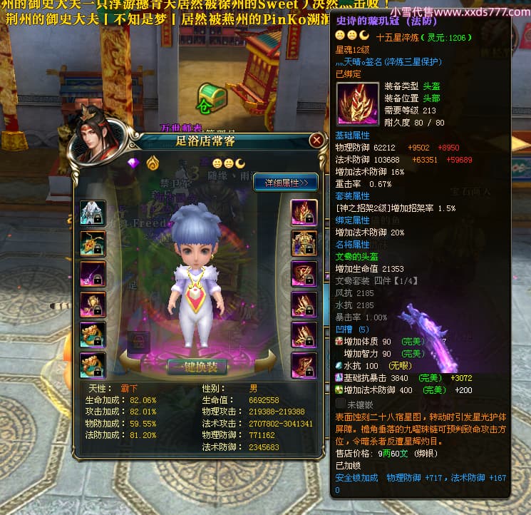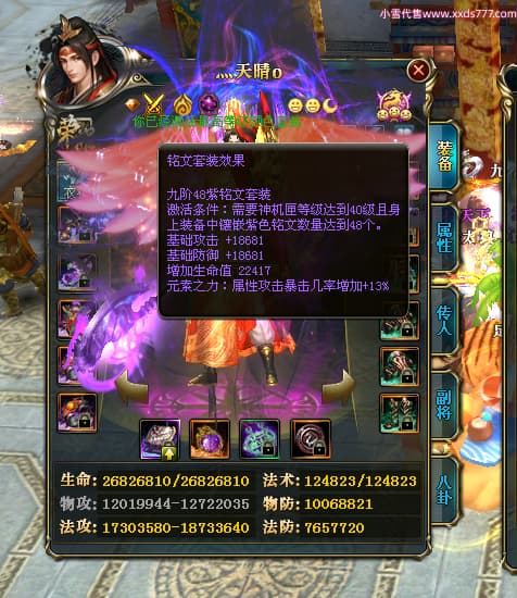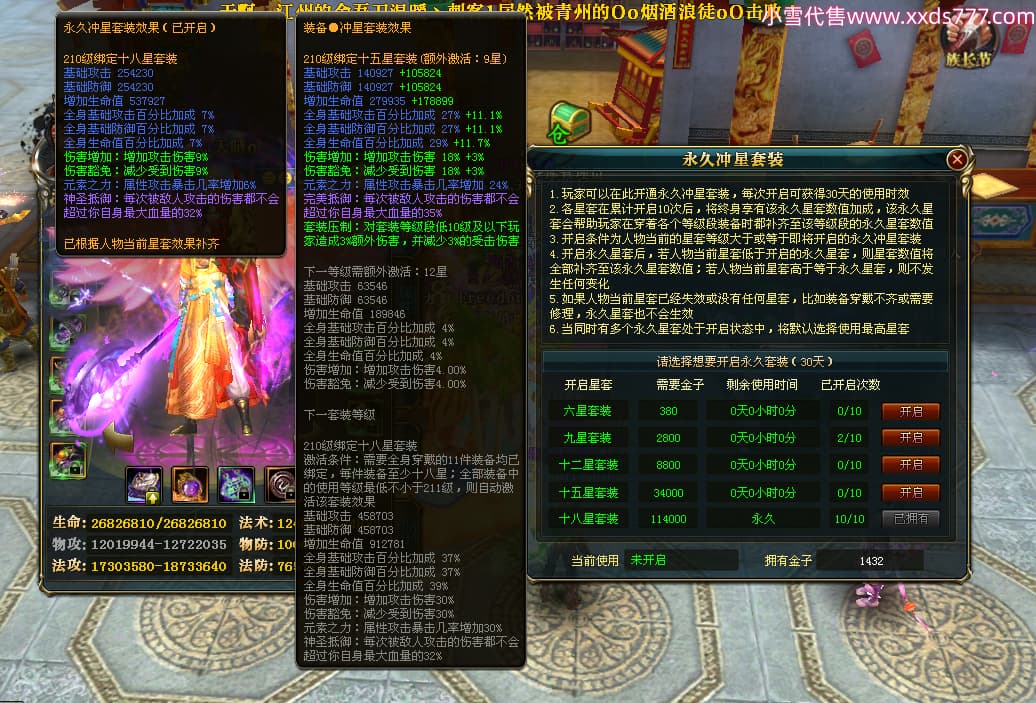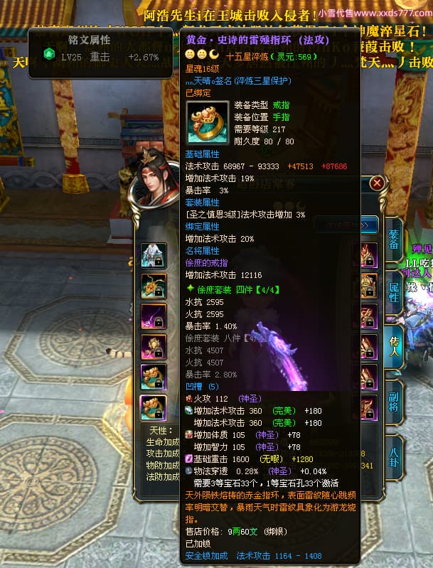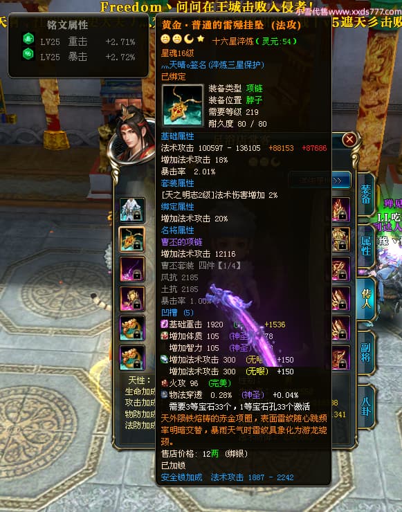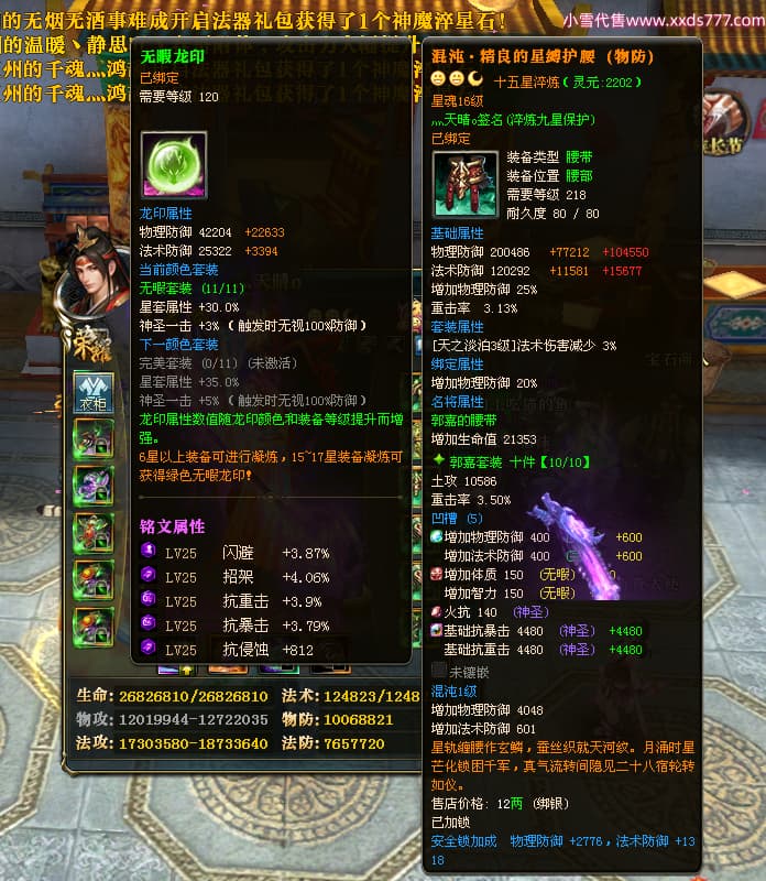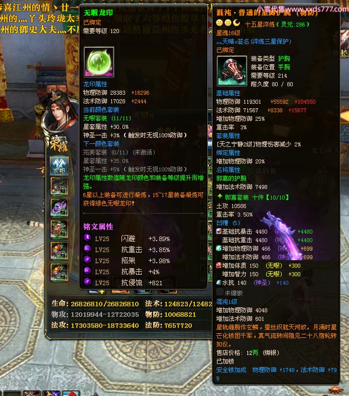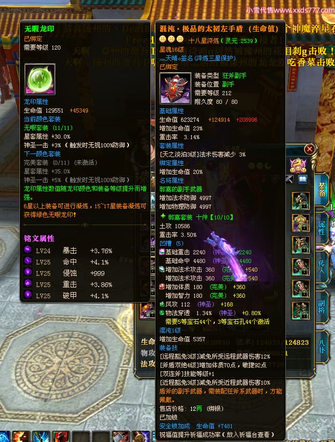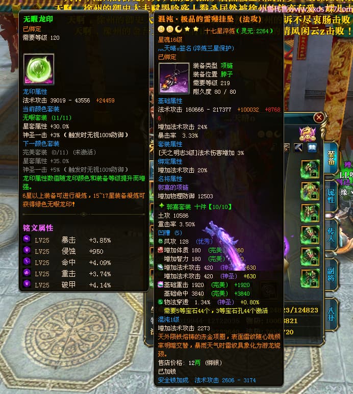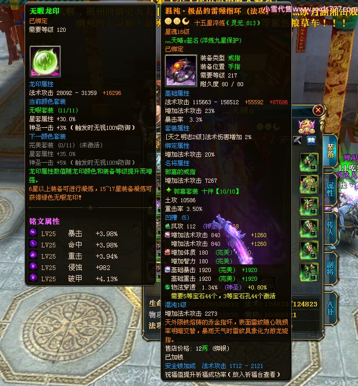 编号X23775 灬天晴o 龙啸风云 青州 世界排名42名 27118W战力 人物黄金普通橙15X(3件18X1件17X9件混沌) 传人史诗紫15X 副将精良紫12X 马黄金精良橙13X 极品紫16披风 人物星魂16级 传人星魂12级 副将星魂6级 马星魂16级 人物铭刻1件18级4件16级其余15级 差一件护腕点亮16星 马铭刻4件14级其余13级 点亮4件14星其余12星 人物绿龙印 马绿龙印 六等单双属性神圣完美无暇石头 黄绿孔 已开启永久18星套