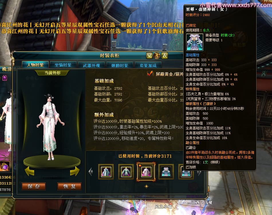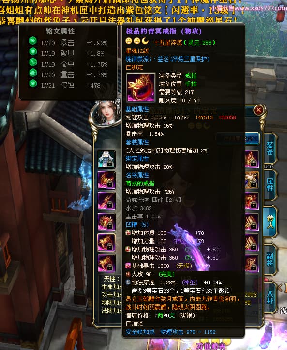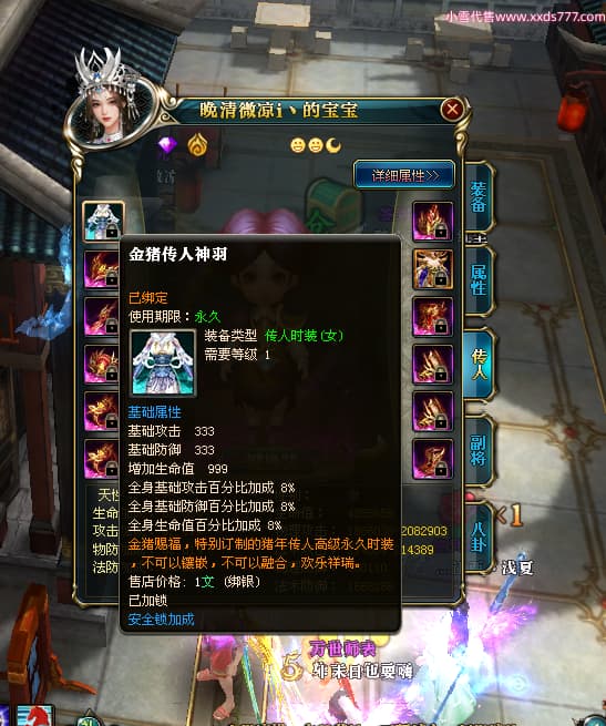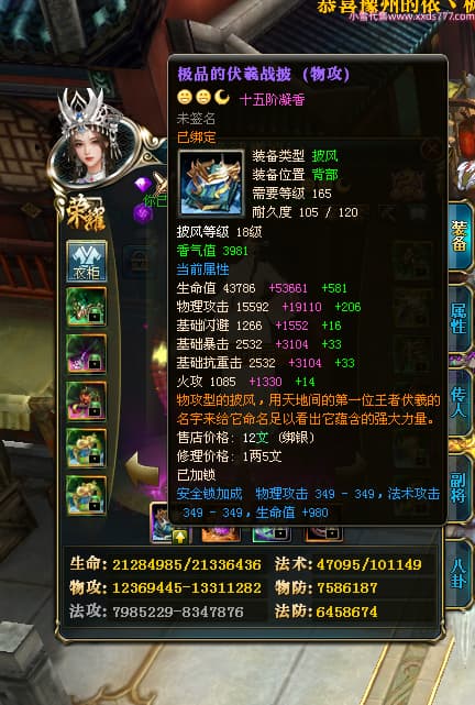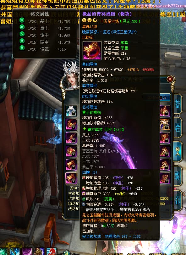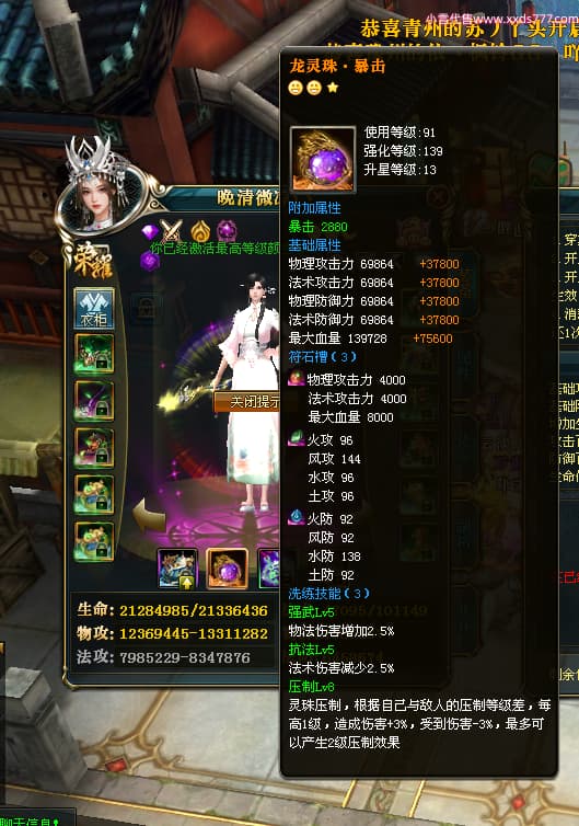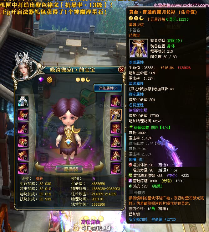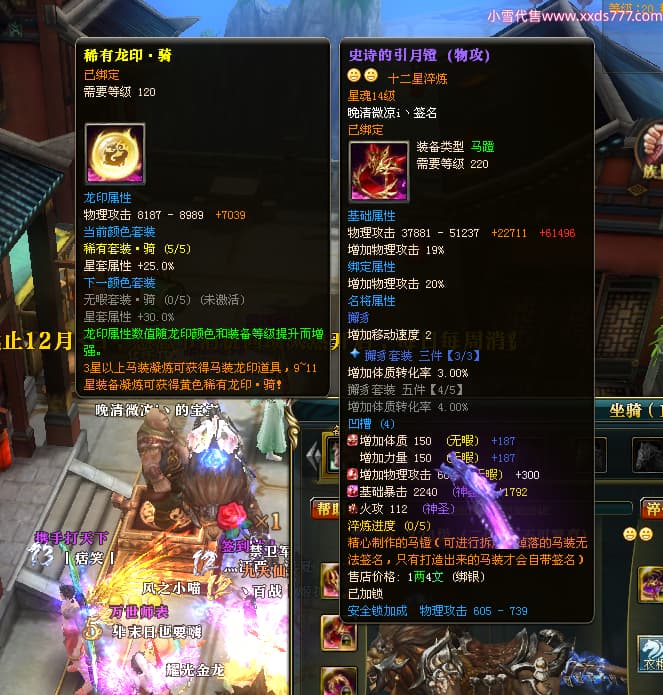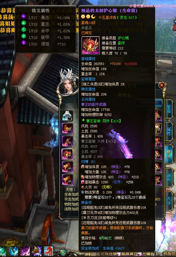 编号W23778 晚清微凉i丶 龙舞九州 荆州 本国排名31名 18328W战力 人物黄金史诗紫15X(2件18X5件混沌) 传人精良紫15X 副将极品紫12X 马史诗紫12X 极品紫15披风 人物星魂16级 传人星魂10级 副将星魂6级 马星魂13级 人物铭刻15级 人物点亮16星 马铭刻12级 点亮12星 人物绿龙印 马黄龙印 六等单双属性完美无暇神圣石头 蓝黄孔 已开启永久15星套