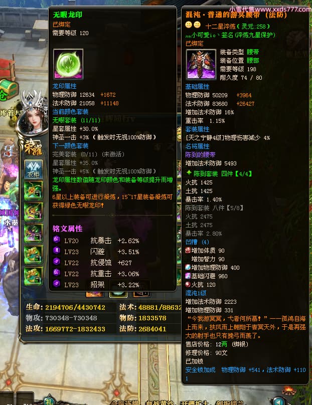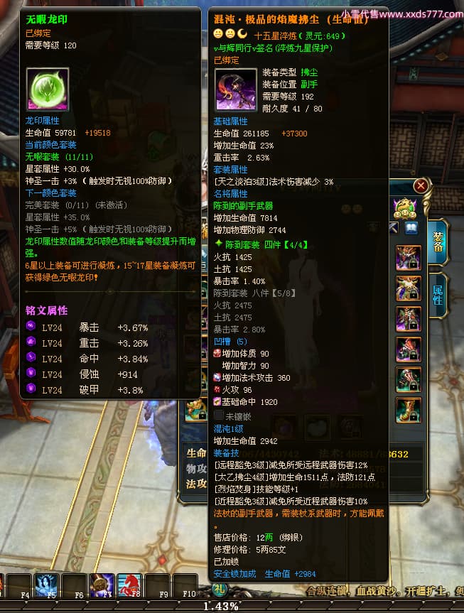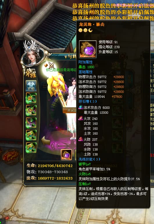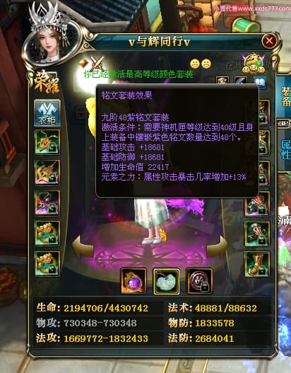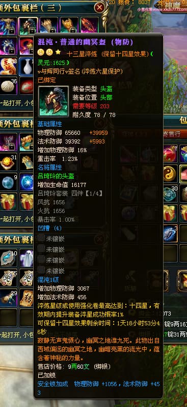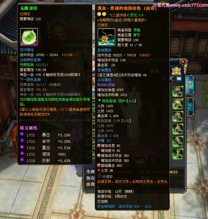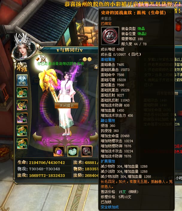 编号Q23786 v与辉同行v 群龙纵横 荆州 本国排名34名 4015W战力 人物黄金普通橙12X(3件15X5件混沌) 马史诗紫9X 人物绿龙印 马黄龙印(1件绿龙印) 六等单双属性石头