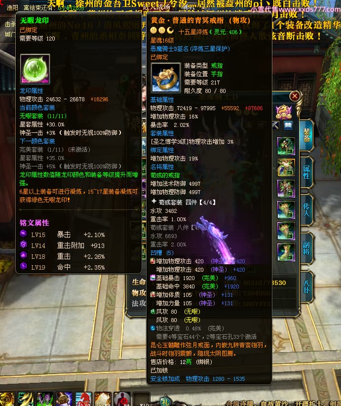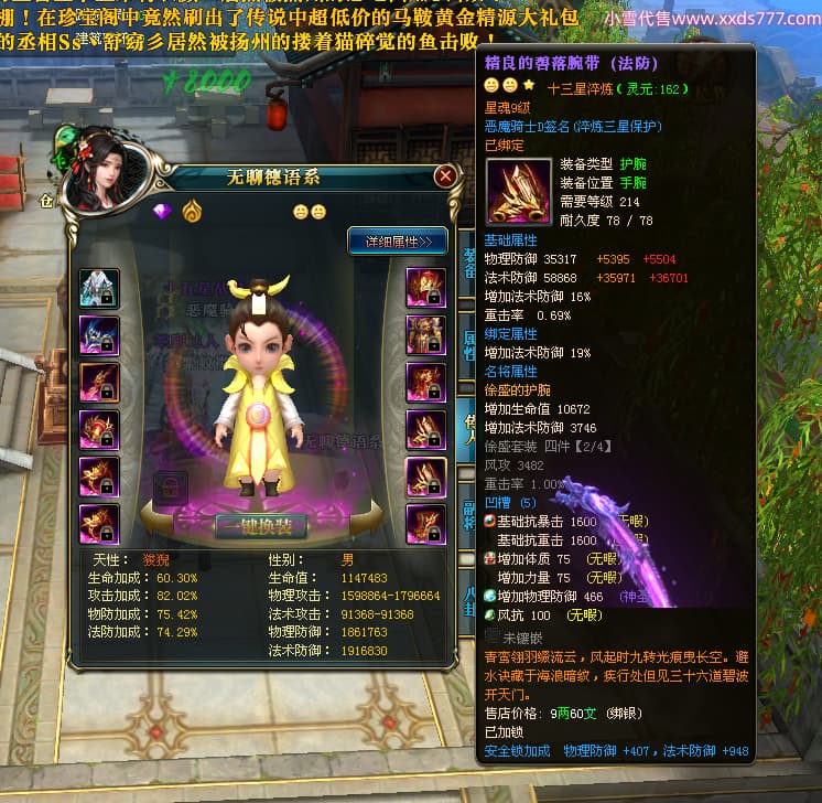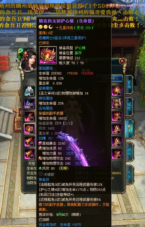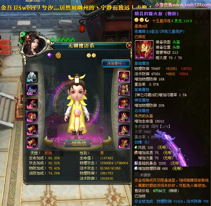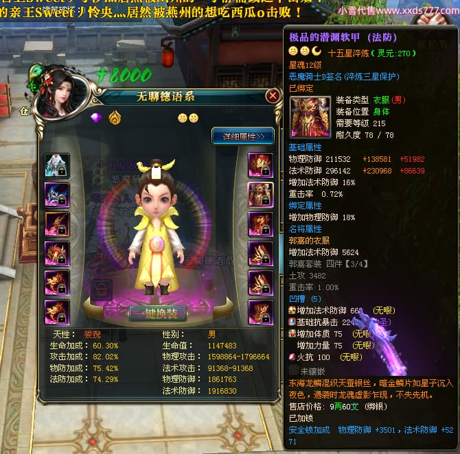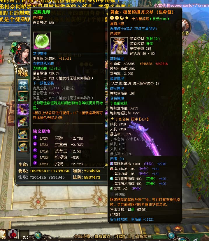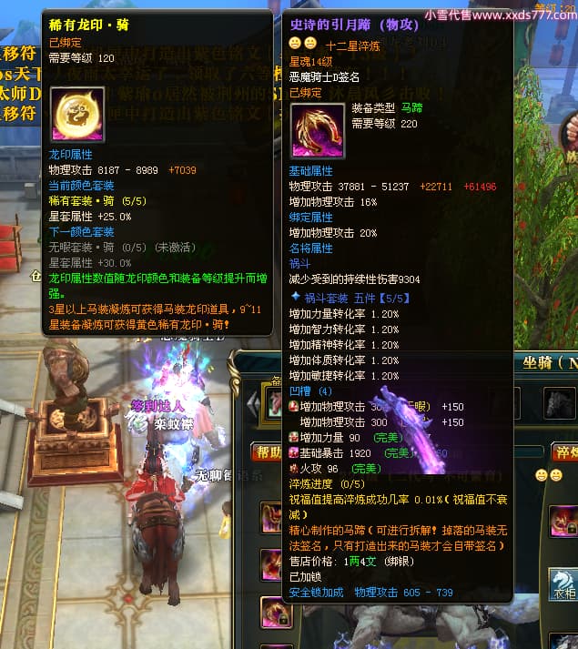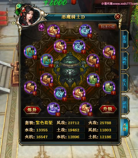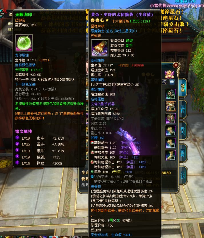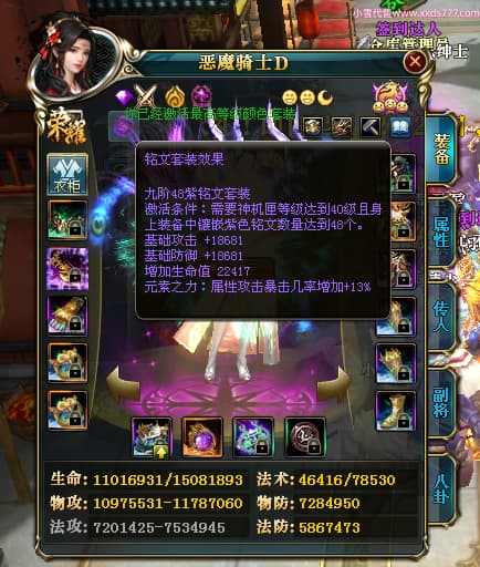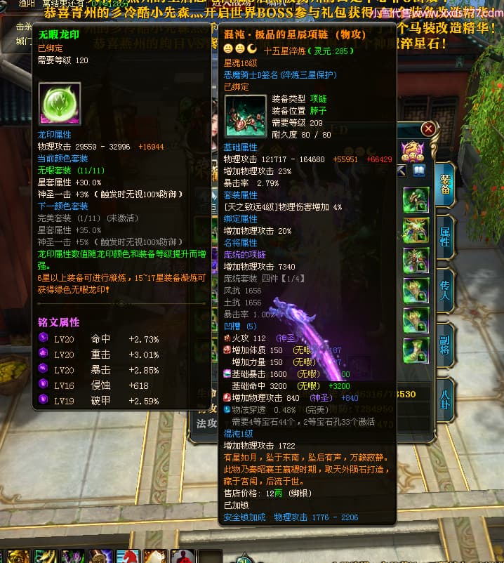 编号X23790 恶魔骑士D 龙啸风云 江州 本国排名60名 14896W战力 人物黄金精良紫15X(3件混沌) 传人精良紫12X 副将精良紫12X 马史诗紫12X 精良紫15披风 人物星魂16级 传人星魂9级 副将星魂6级 马星魂14级 人物铭刻3件16级其余15级 人物点亮4件16星其余14星 马铭刻15级 点亮12星 人物绿龙印(1件紫龙印) 马黄龙印 五等单双属性神圣完美优秀石头 蓝孔