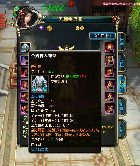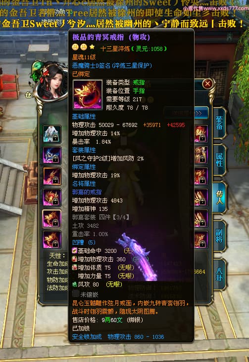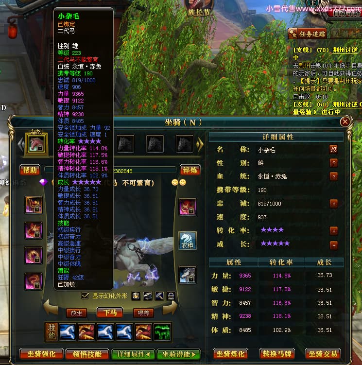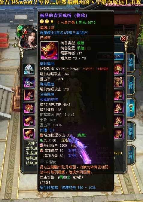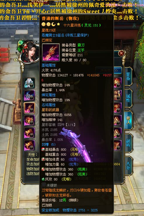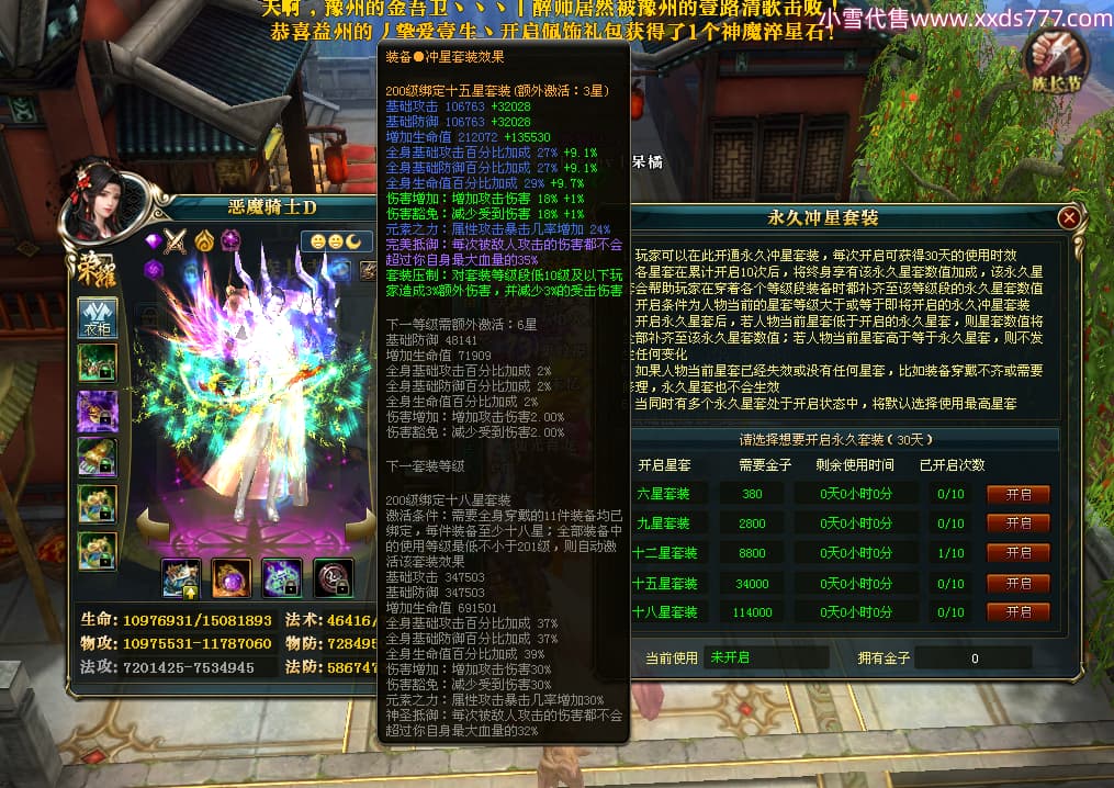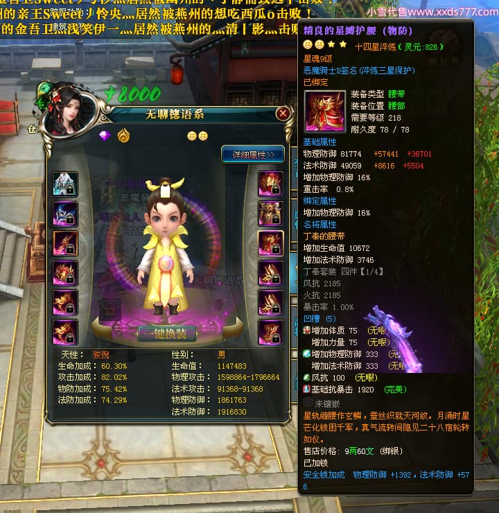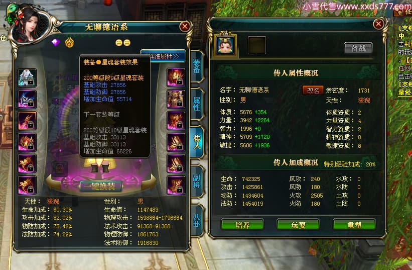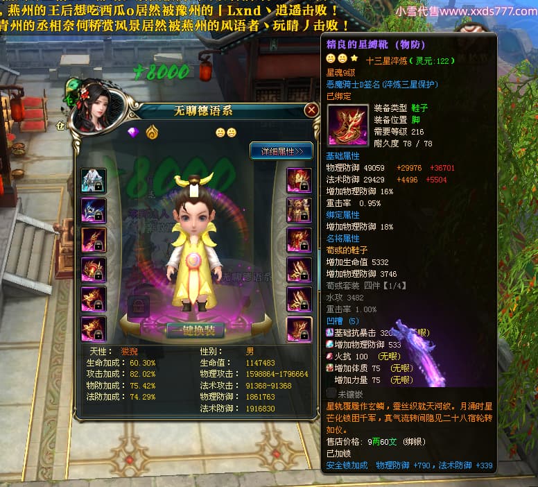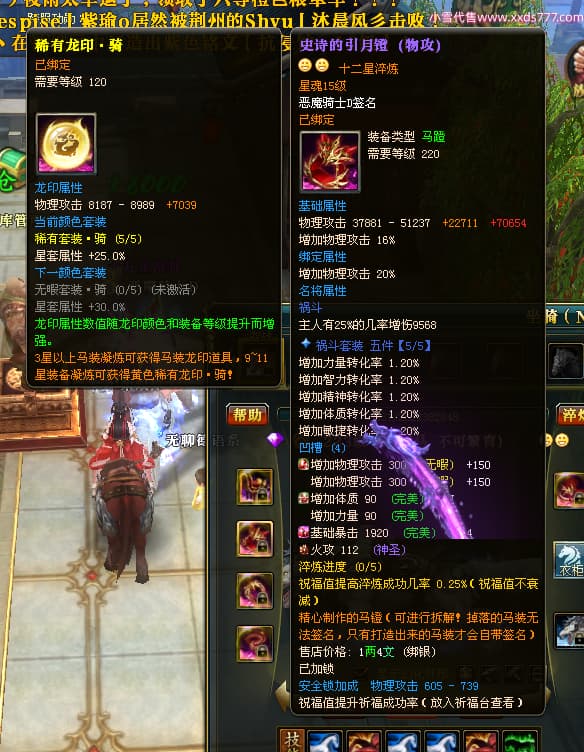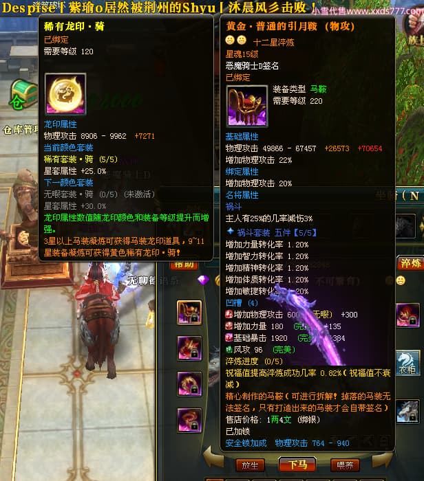 编号X23790 恶魔骑士D 龙啸风云 江州 本国排名60名 14896W战力 人物黄金精良紫15X(3件混沌) 传人精良紫12X 副将精良紫12X 马史诗紫12X 精良紫15披风 人物星魂16级 传人星魂9级 副将星魂6级 马星魂14级 人物铭刻3件16级其余15级 人物点亮4件16星其余14星 马铭刻15级 点亮12星 人物绿龙印(1件紫龙印) 马黄龙印 五等单双属性神圣完美优秀石头 蓝孔