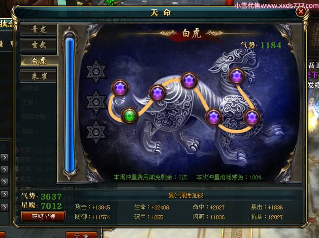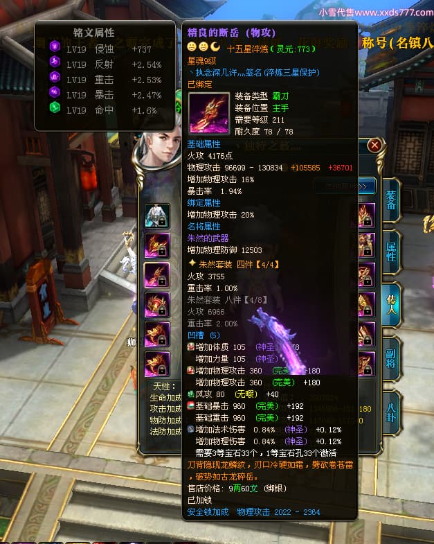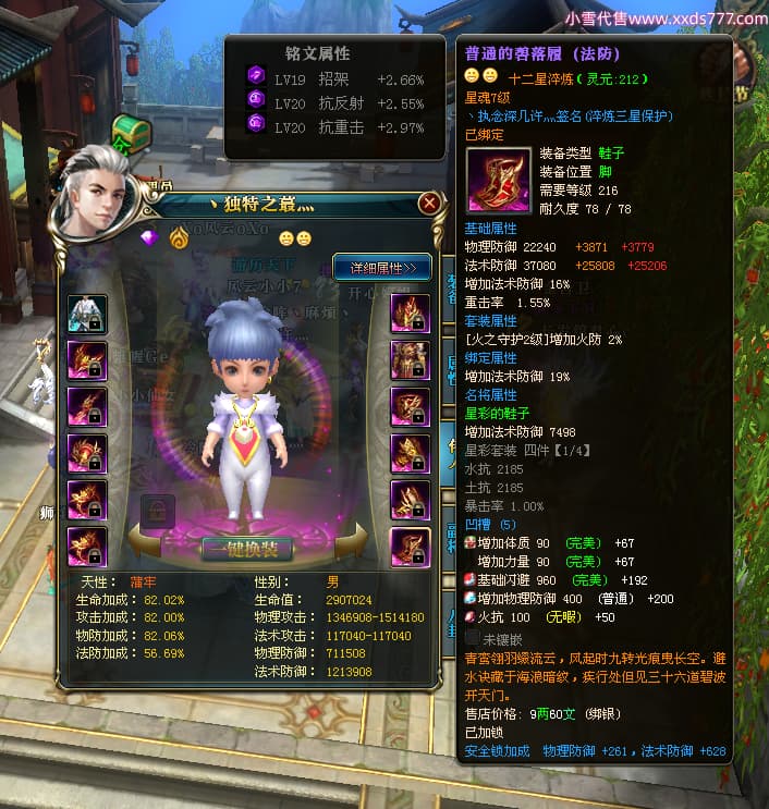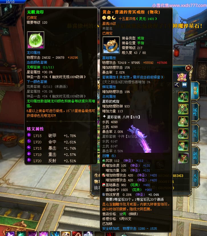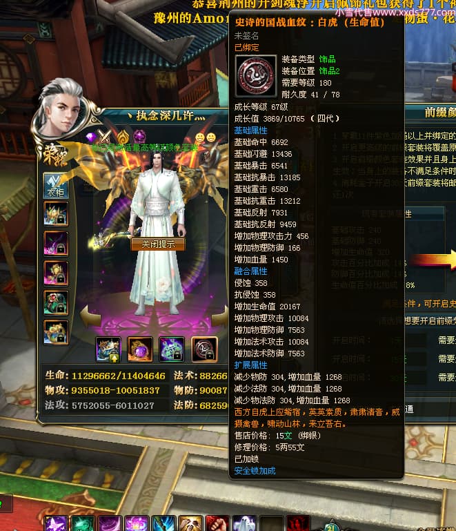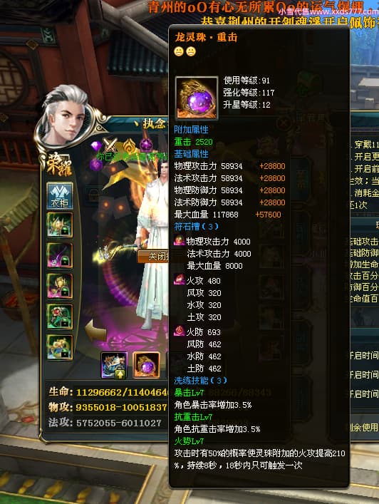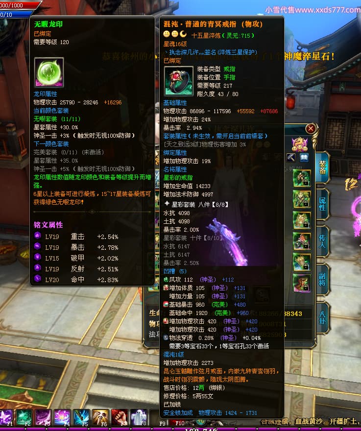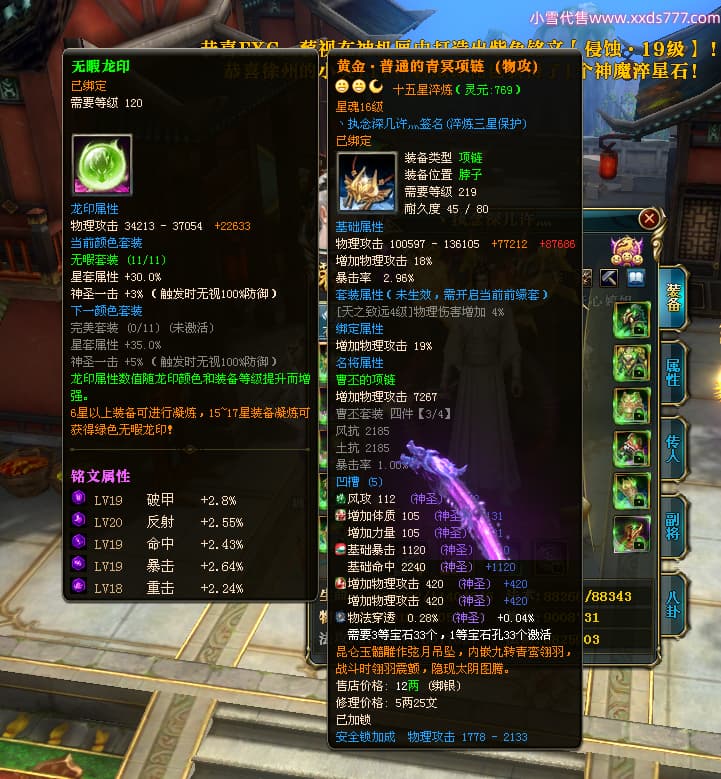 编号W23826 丶执念深几许灬 龙舞九州 幽州 本国排名57名 13366W战力 人物黄金普通橙12X(10件15X3件混沌) 传人精良紫12X 副将精良紫12X 马史诗紫12X 精良紫14披风 人物星魂16级 传人星魂7级 副将星魂6级 马星魂12级 人物铭刻15级 点亮5件16星其余14星 马铭刻12级 点亮12星 人物绿龙印 马黄龙印 五六等单双属性神圣完美无瑕石头 蓝黄孔 已开完永久15星套