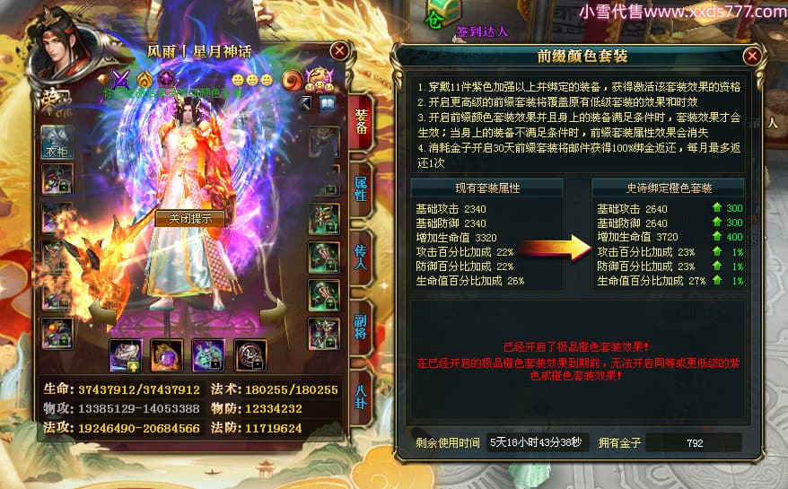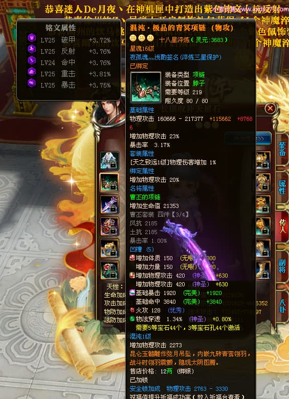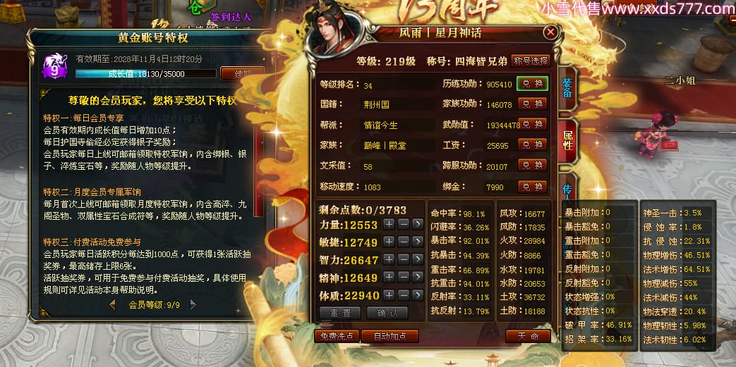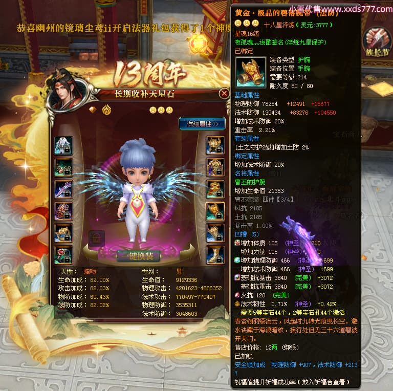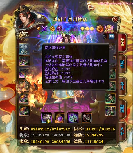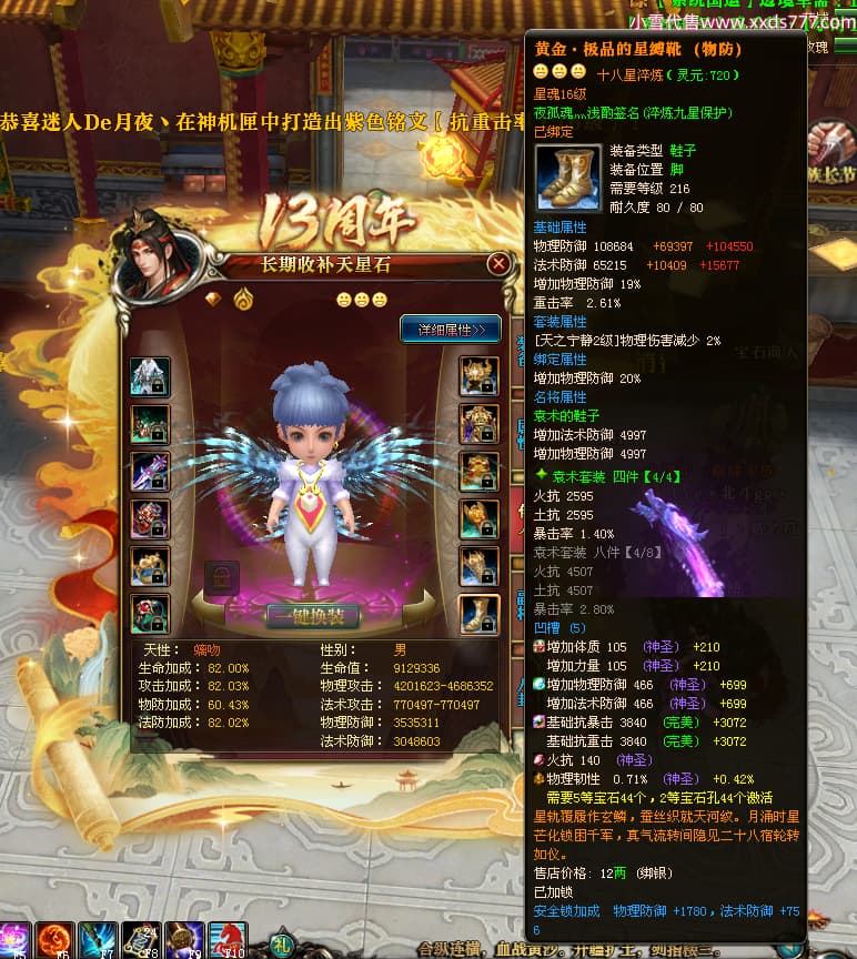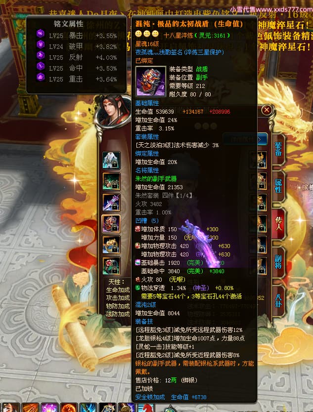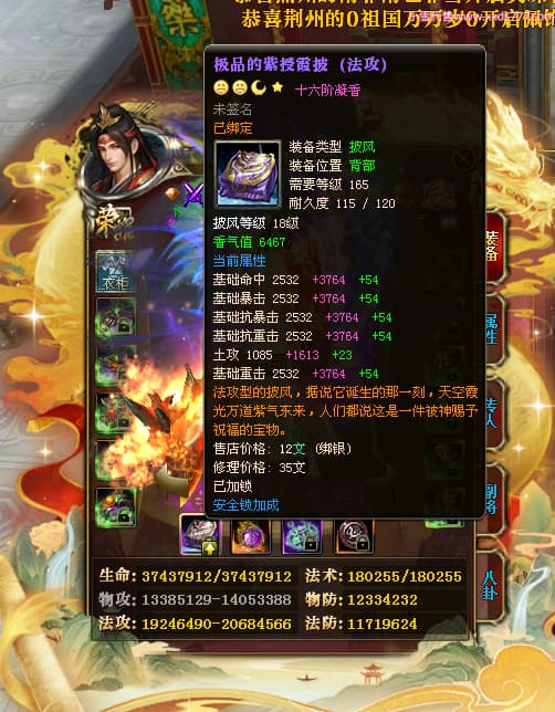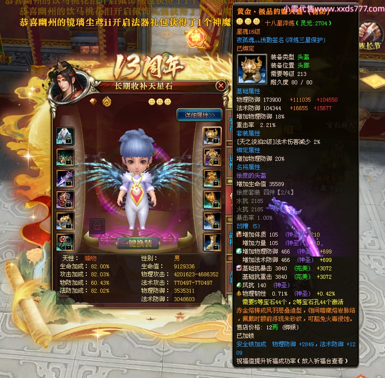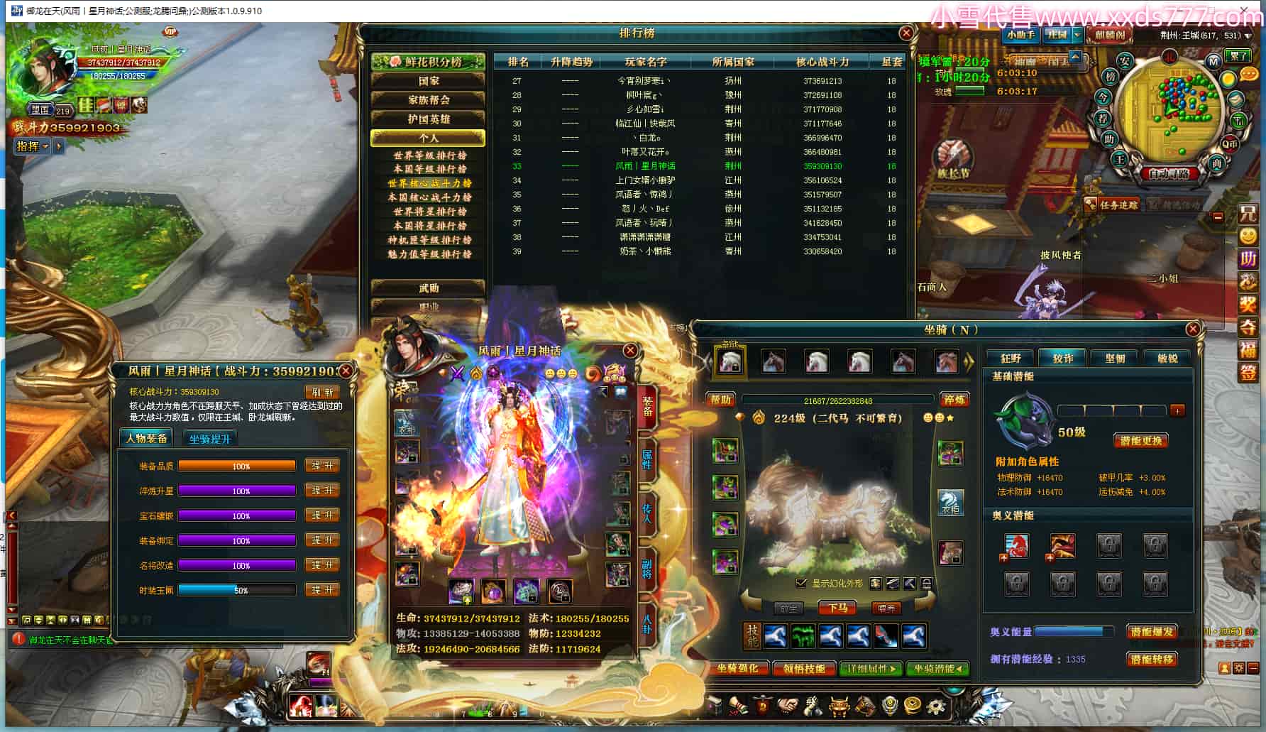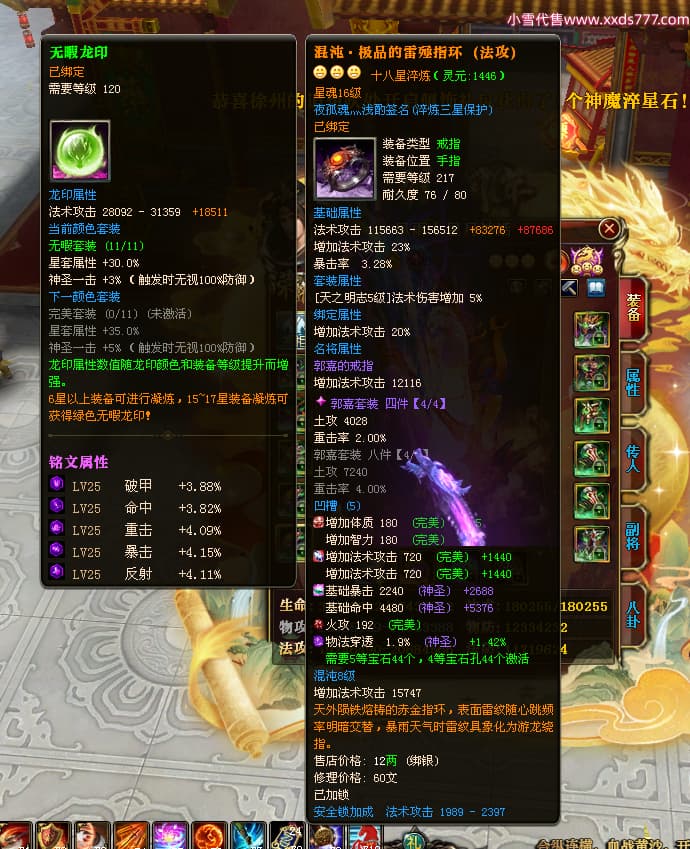 编号T23832 风雨丨星月神话 龙腾问鼎 荆州 世界排名33名 35992W战力 人物混沌极品橙18X 传人黄金极品橙18X(3件混沌) 马黄金极品橙13X(双潜能50级47级) 极品紫16披风 人物星魂16X 传人星魂16级 副将星魂7级 马星魂16级 人物铭刻18级 点亮5件18星其余16星 马铭刻15级 点亮14星 人物绿龙印 马绿龙印 六等单双属性神圣石头 绿紫孔 可以转移百分百安全