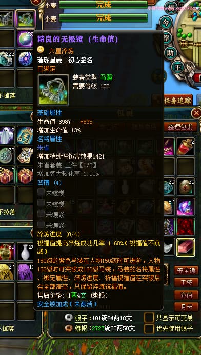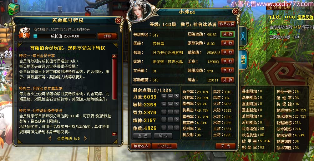 编号S23839 小沫oi 金蛇揽月 豫州 世界排名18名 140级 729W战力 人物黄金史诗紫15X(3件混沌) 马黄金史诗紫9X 人物黄龙印(4件绿龙印) 马黄龙印 六等单双属性石头
