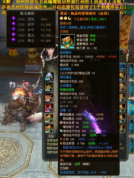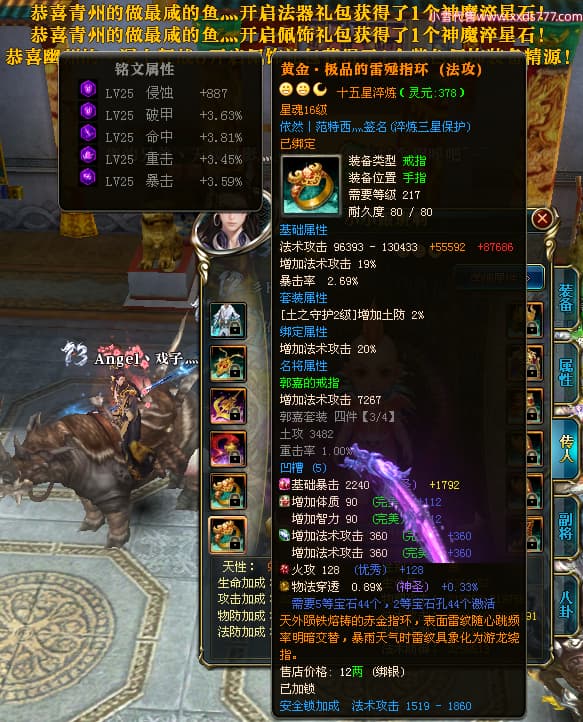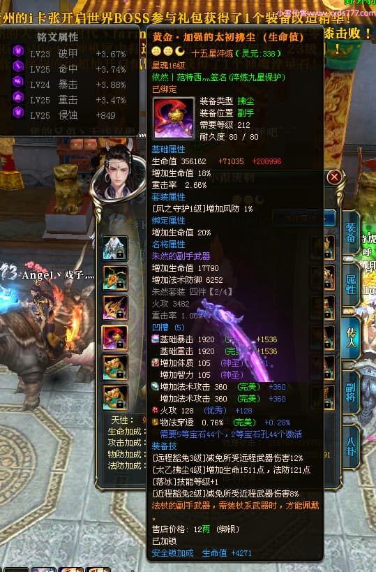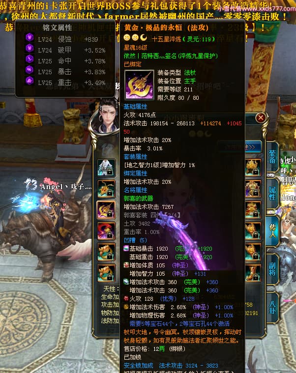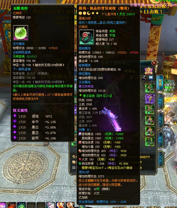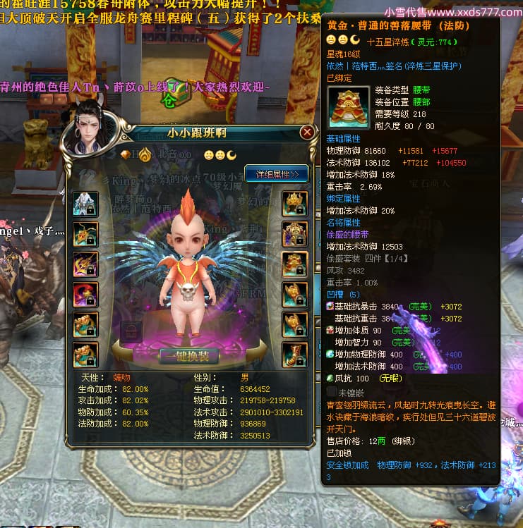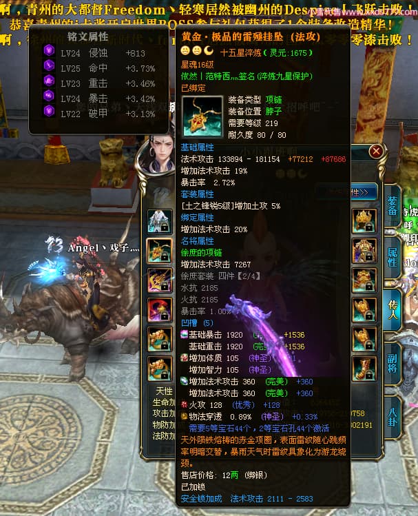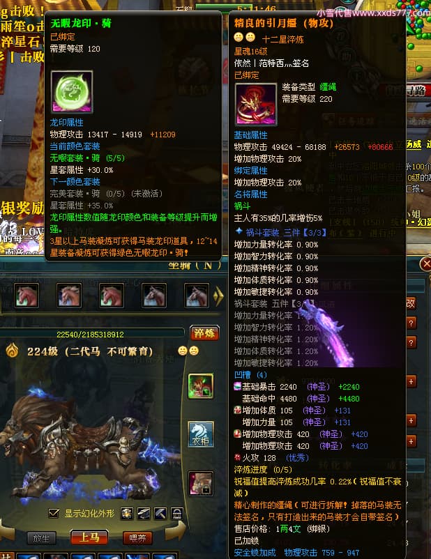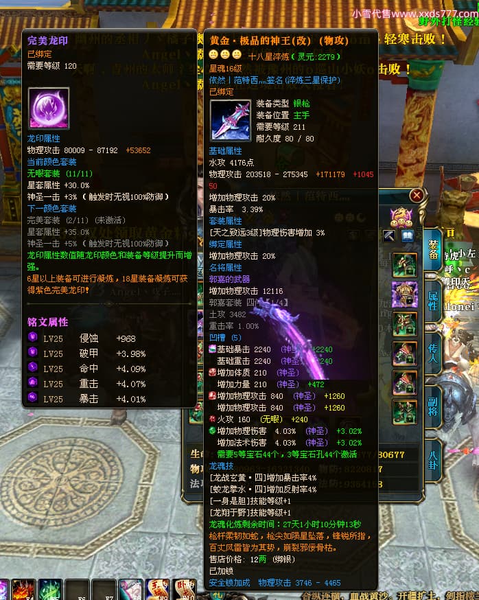 编号X23847 依然丨范特西灬 龙啸风云 益州 世界排名56名 25712W战力 人物黄金加强橙15X(2件18X9件混沌) 传人黄金普通橙15X 副将史诗紫15X 马加强橙12X 极品紫16披风 人物星魂16级 传人星魂16级 副将星魂9级 马星魂16级 人物铭刻7件16级其余15级 点亮16星 马铭刻12级 点亮12星 人物绿龙印(2件紫龙印) 马绿龙印 六等单双属性神圣完美无暇石头 黄绿孔