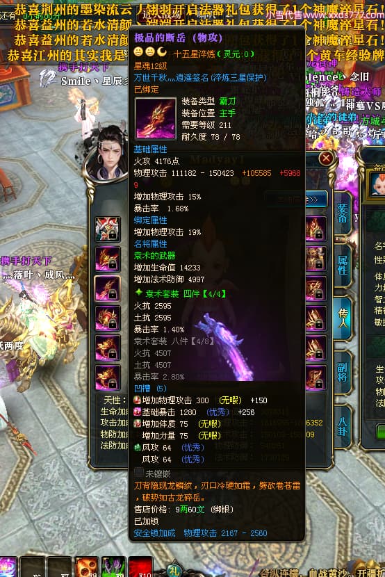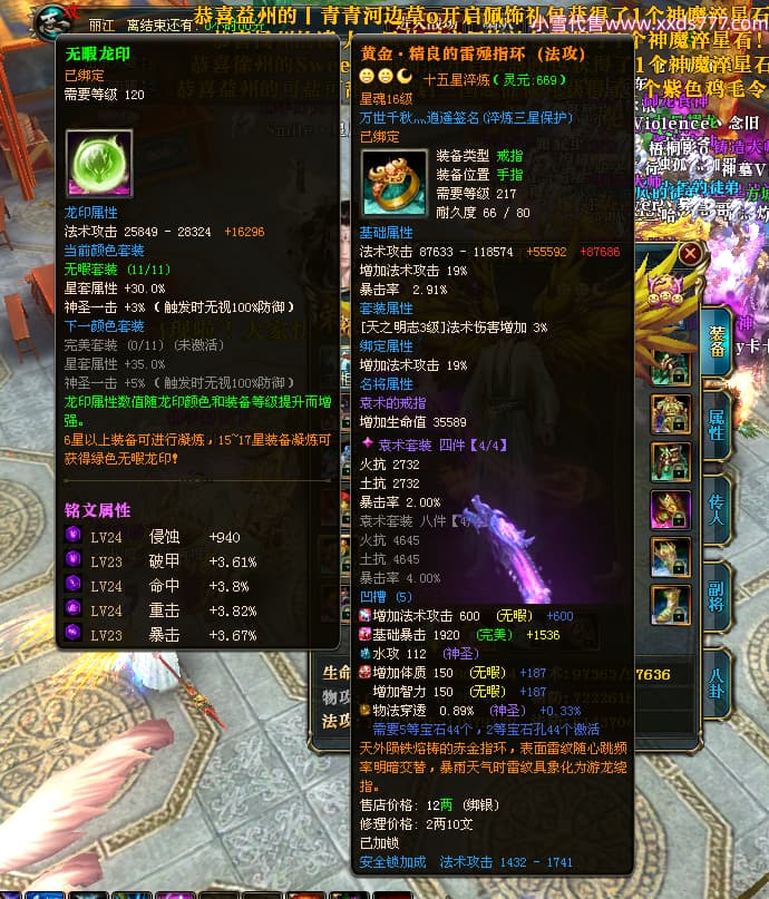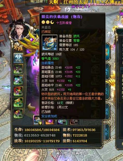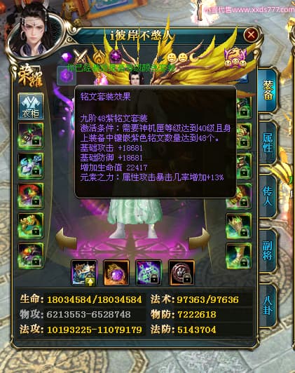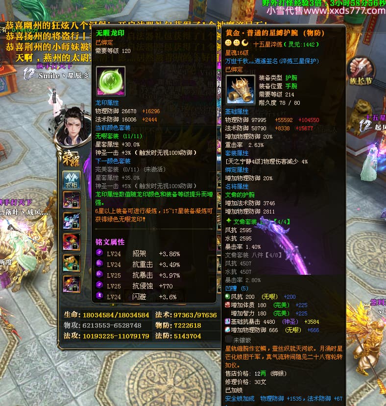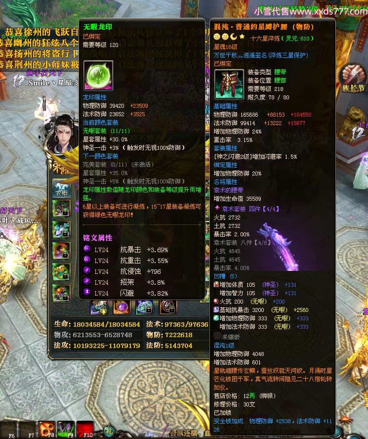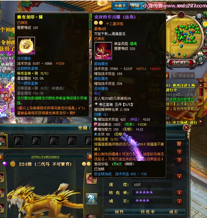 编号X23856 i彼岸不憨人 龙啸风云 青州 本国排名36名 15581W战力 人物黄金普通橙15X(4件混沌) 传人精良紫12X(9件15X) 副将极品紫12X 马史诗紫12X 精良紫15披风 人物星魂16级 传人星魂10级 副将星魂6级 马星魂9级 人物铭刻15级 人物点亮4件16星其余14星 马铭刻12级 点亮12星 人物绿龙印 马黄龙印 五六等单双属性神圣完美优秀石头 黄蓝孔