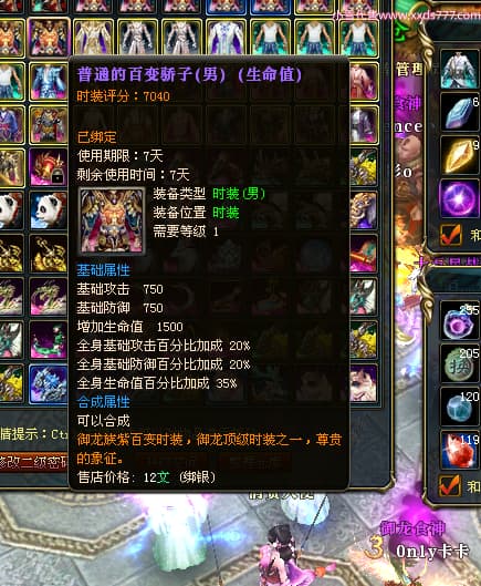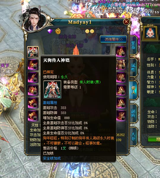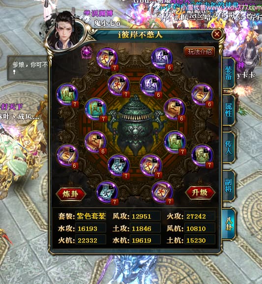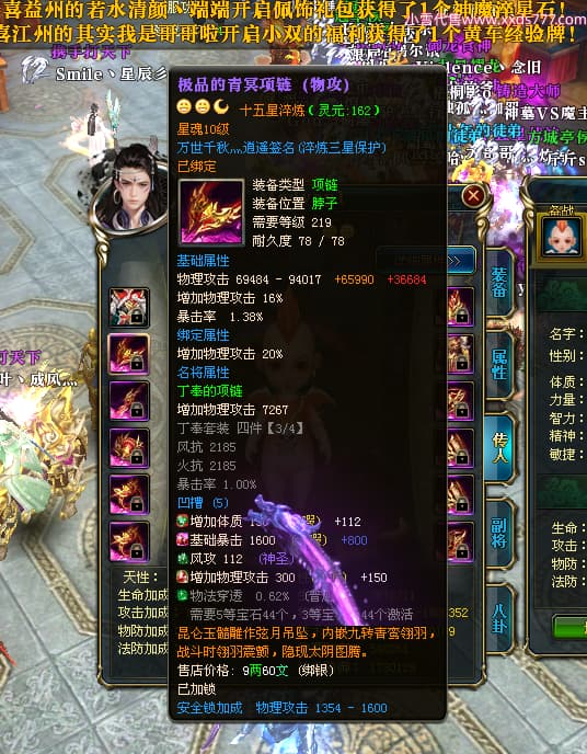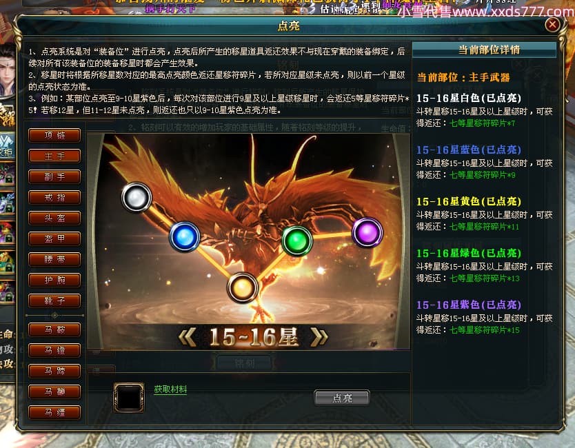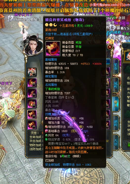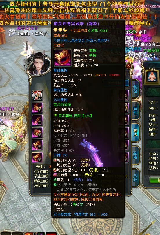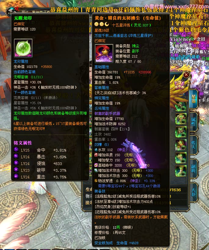 编号X23856 i彼岸不憨人 龙啸风云 青州 本国排名36名 15581W战力 人物黄金普通橙15X(4件混沌) 传人精良紫12X(9件15X) 副将极品紫12X 马史诗紫12X 精良紫15披风 人物星魂16级 传人星魂10级 副将星魂6级 马星魂9级 人物铭刻15级 人物点亮4件16星其余14星 马铭刻12级 点亮12星 人物绿龙印 马黄龙印 五六等单双属性神圣完美优秀石头 黄蓝孔