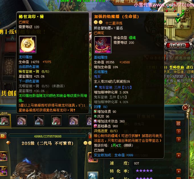 编号L23866 所念皆如愿o丶 龙战王者 燕州 本国排名22名 4930W战力 人物黄金精良橙15X(6件混沌) 马加强橙12X 人物绿龙印(1件紫龙印) 马黄龙印 六等单双属性石头