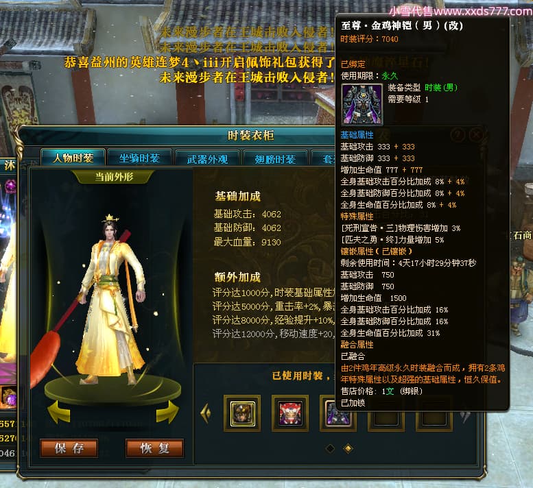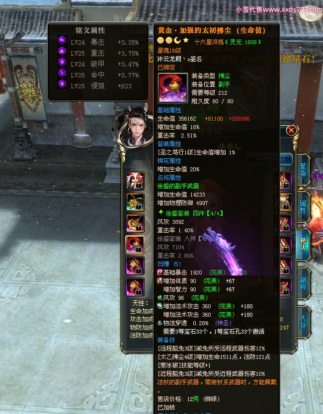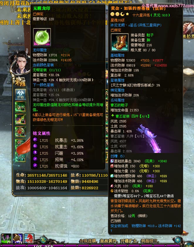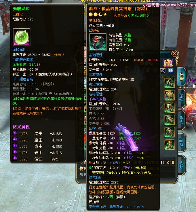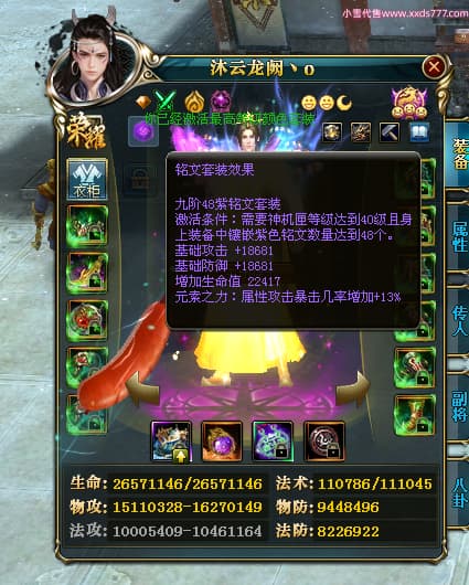 编号T23893 沐云龙阙丶o 龙腾问鼎 燕州 世界排名87名 24686W战力 人物黄金加强橙16X(1件17X8件混沌) 传人史诗紫15X 副将史诗紫15X 马加强橙12X 极品紫16披风 人物星魂16级 传人星魂16级 副将星魂9级 马星魂16级 人物铭刻2件16级其余15级 人物点亮16星 马铭刻1件15级其余14级 点亮12星 人物绿龙印 马黄龙印 六等单双属性神圣完美石头 黄绿孔 已开启永久15星套
