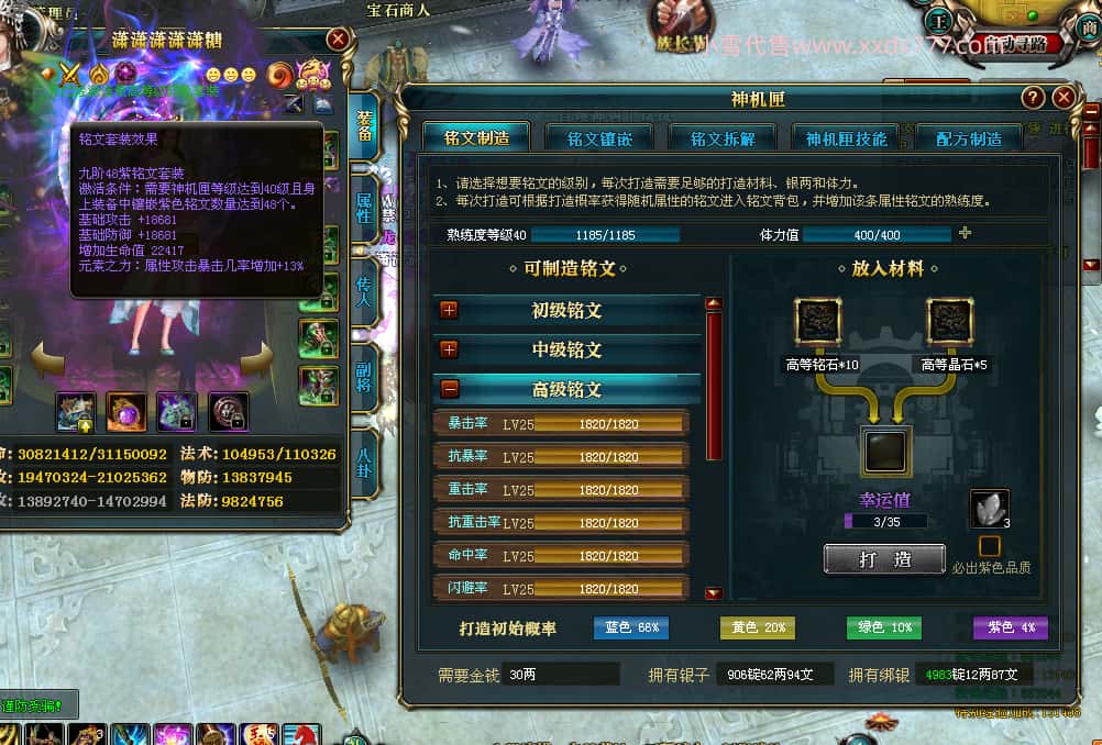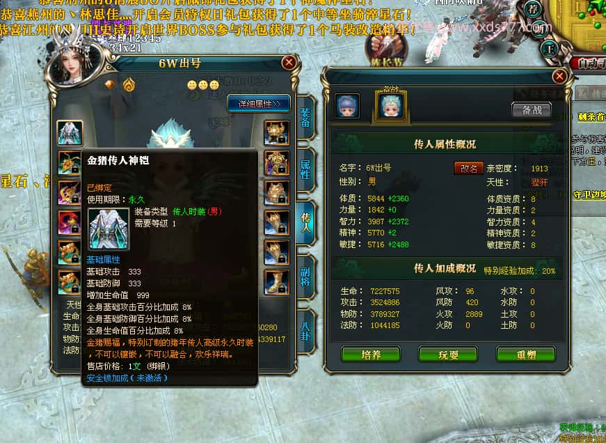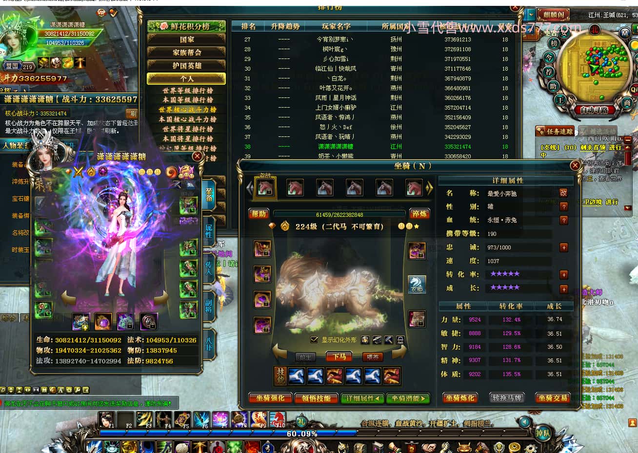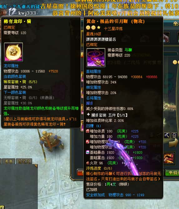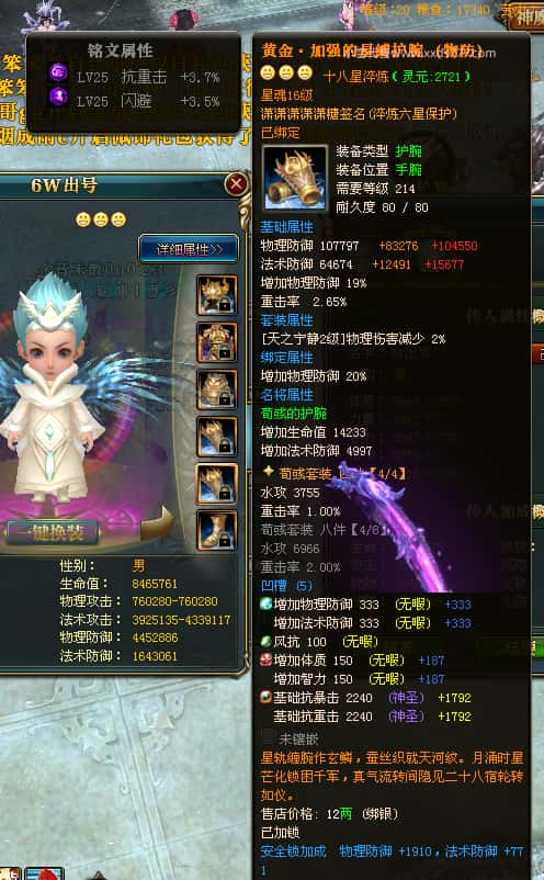 编号T23903 潇潇潇潇潇糖 龙腾问鼎 江州 世界排名38名 33532W战力 人物混沌极品橙18X 传人黄金加强橙18X 副将极品橙12X 马黄金极品橙13X 极品紫16披风 人物星魂16级 传人星魂16级 副将星魂6级 马星魂16级 人物铭刻18级 人物点亮18星 马铭刻14级 点亮14星 人绿龙印(1件紫龙印) 马黄龙印 六等单双属性神圣石头 黄绿孔 可以转移百分百安全