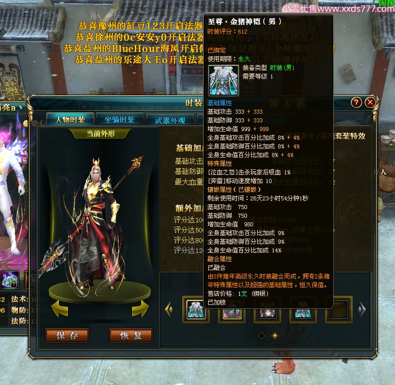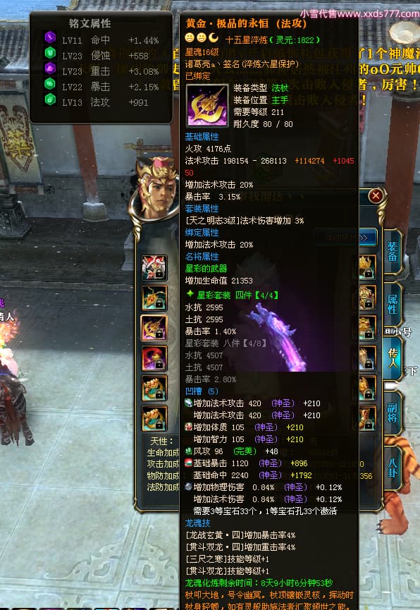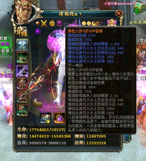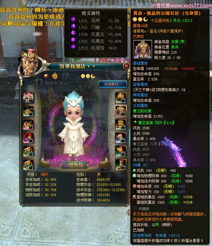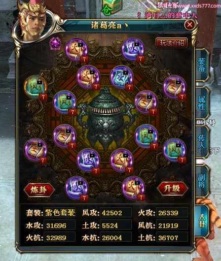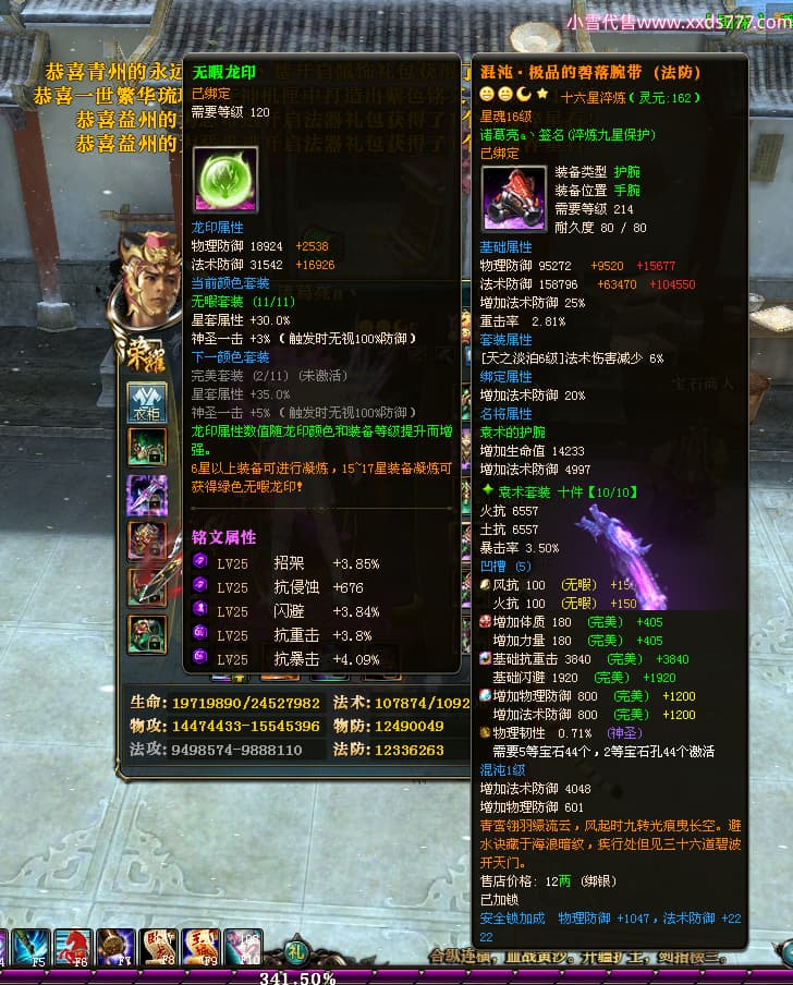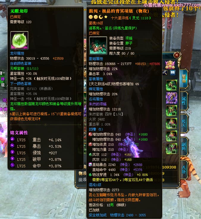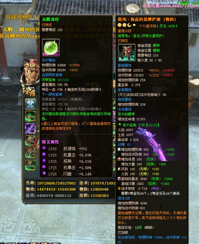 编号W23907 诸葛亮a丶 龙舞九州 青州 世界排名65名 26085W战力 人物黄金极品橙15X(9件混沌) 传人黄金加强橙15X 副将普通橙15X 马黄金加强橙13X 极品紫16披风 人物星魂16级 传人星魂16级 副将星魂16级 马星魂16级 人物铭刻15级 点亮16星 马铭刻4件14级1件13级 点亮14星 人物绿龙印(2件紫龙印) 马黄龙印(2件绿龙印) 六等单双属性神圣完美无暇石头 黄绿孔