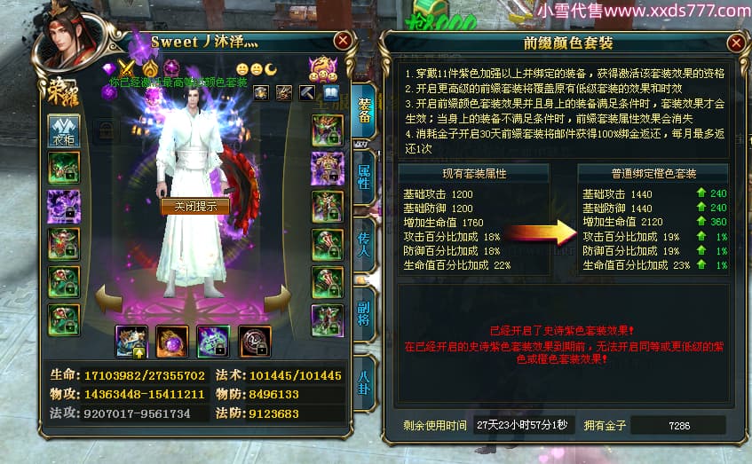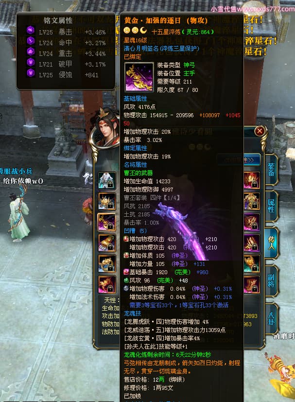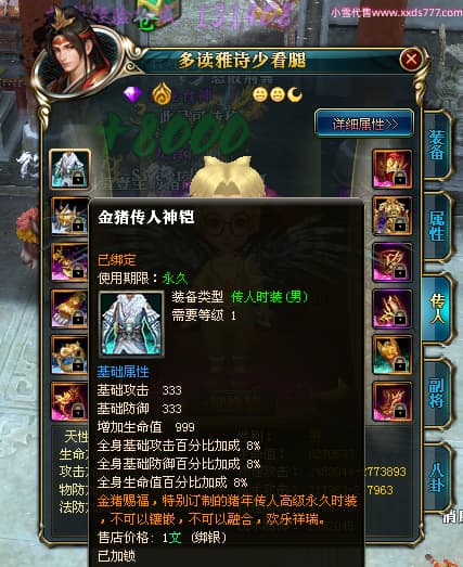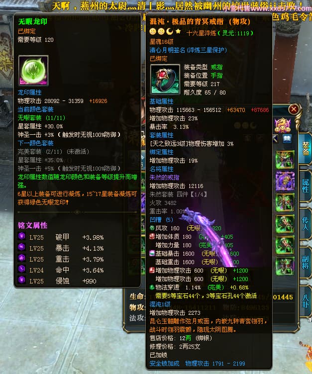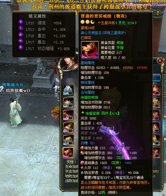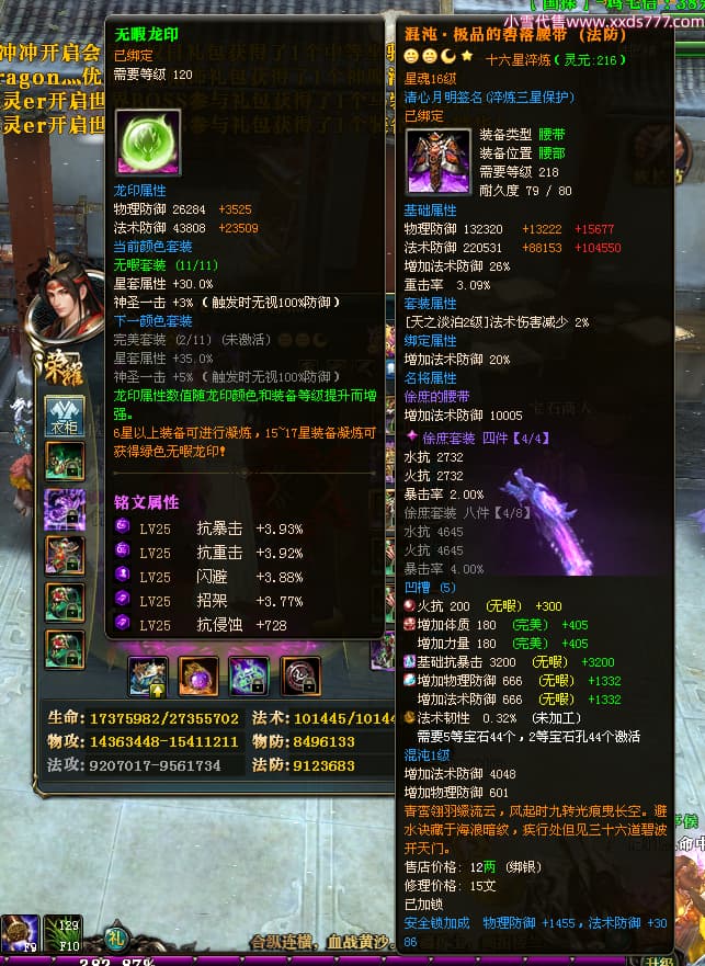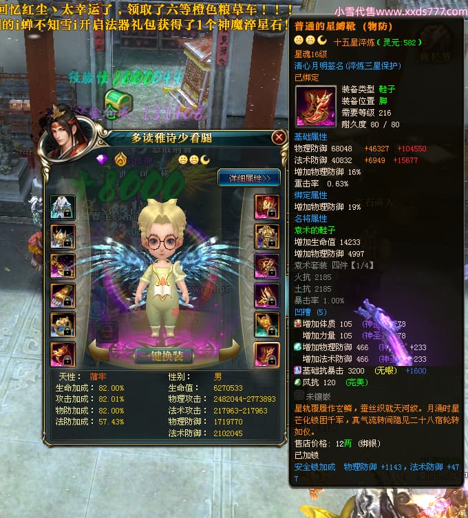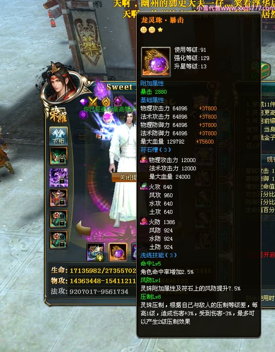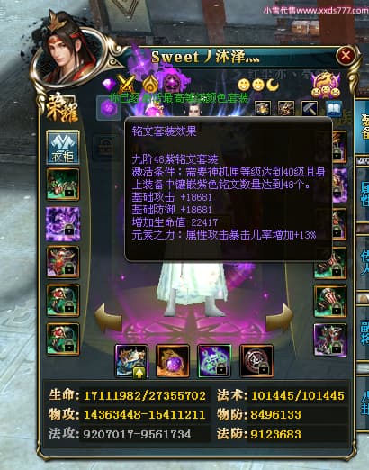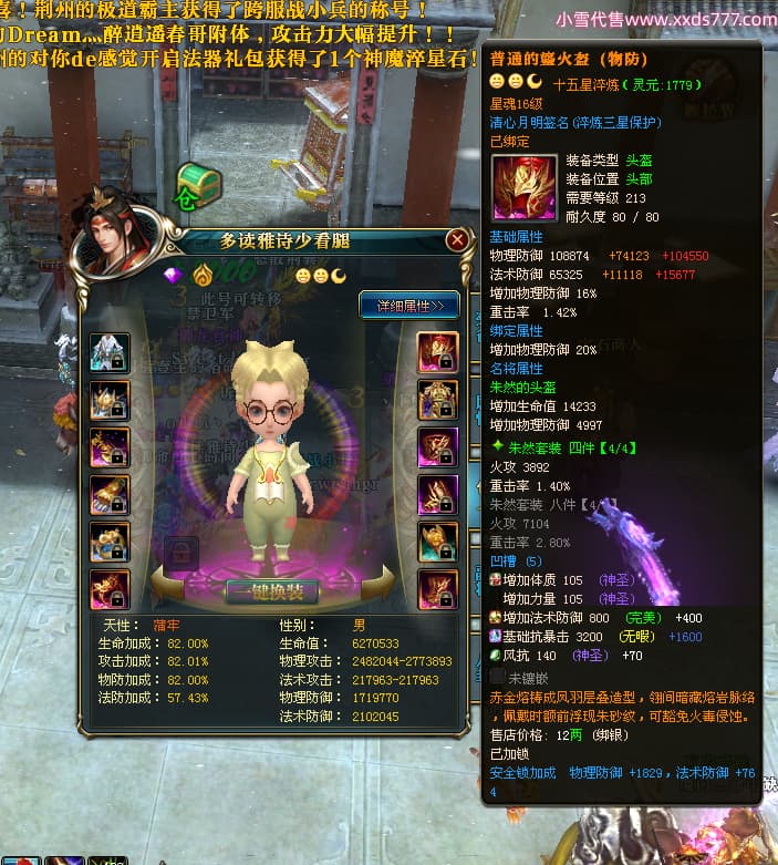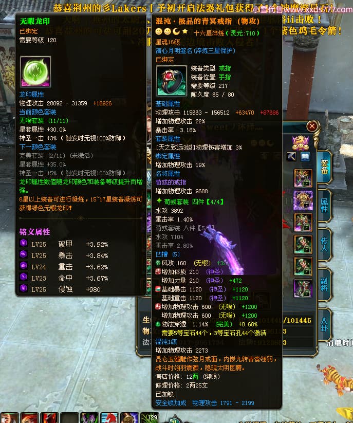 编号X23922 Sweet丿沐泽灬 龙啸风云 徐州 世界排名84名 23222W战力 人物黄金极品橙16X(1件18X9件混沌) 传人普通橙15X 副将普通橙15X 马普通橙13X 极品紫17披风 人物星魂16级 传人星魂16级 副将星魂10级 马星魂16级 人物铭刻16级 点亮16星 马铭刻13级 点亮14星 人物绿龙印(2件紫龙印) 马黄龙印(2件绿龙印) 六等单双属性神圣完美无暇石头 黄绿孔