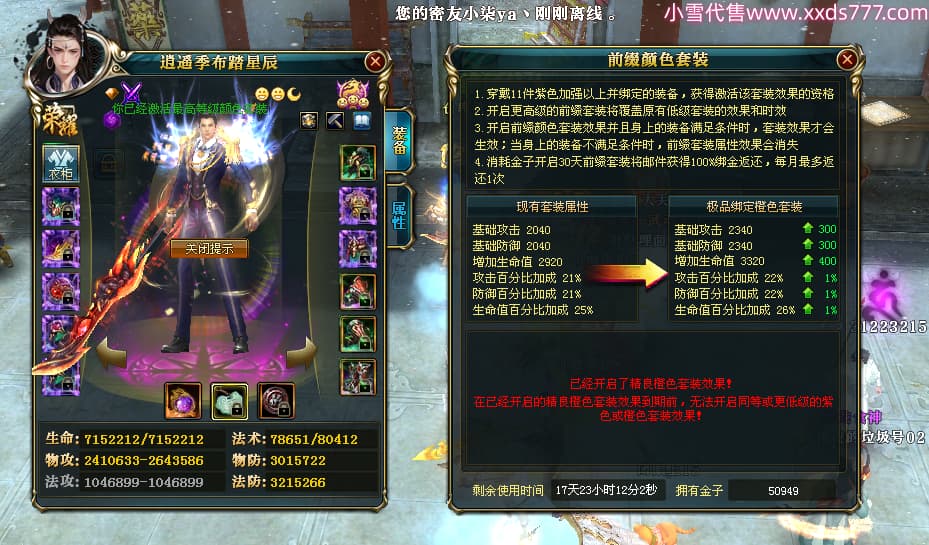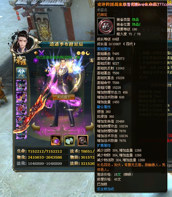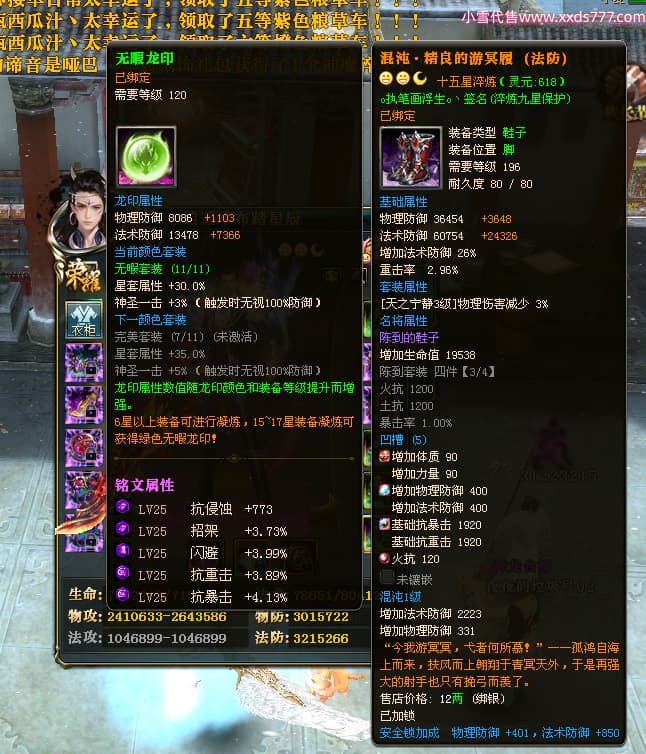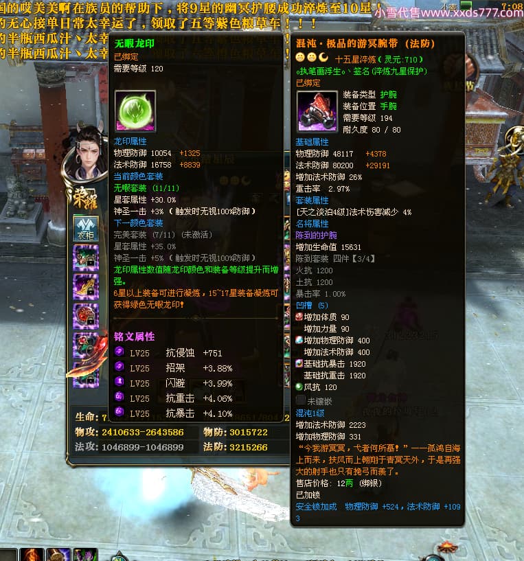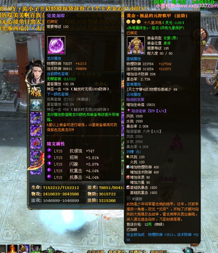编号Q23925 逍遥季布踏星辰 群龙纵横 徐州 世界排名32名 6339W战力 人物黄金极品橙15X(1件18X9件混沌) 马黄金加强橙12X 人物绿龙印(7件紫龙印) 马绿龙印 六等单双属性石头 已开完永久15星套