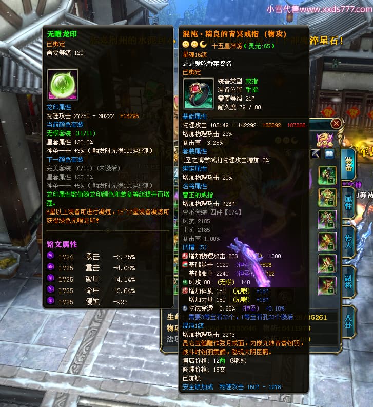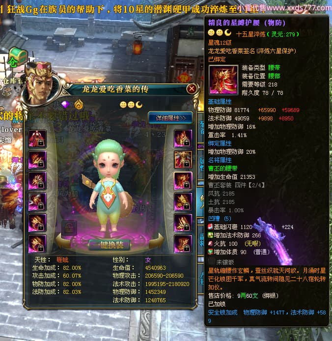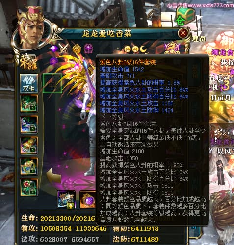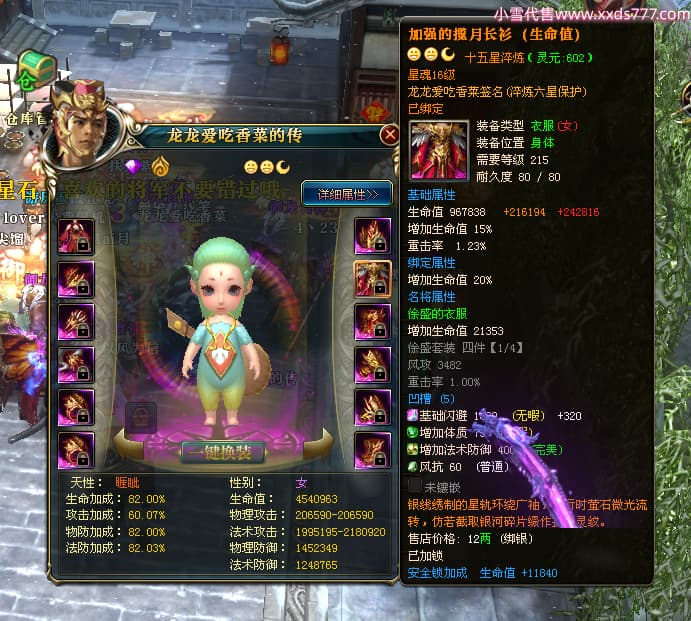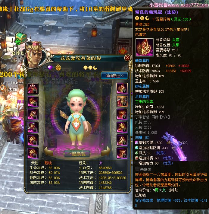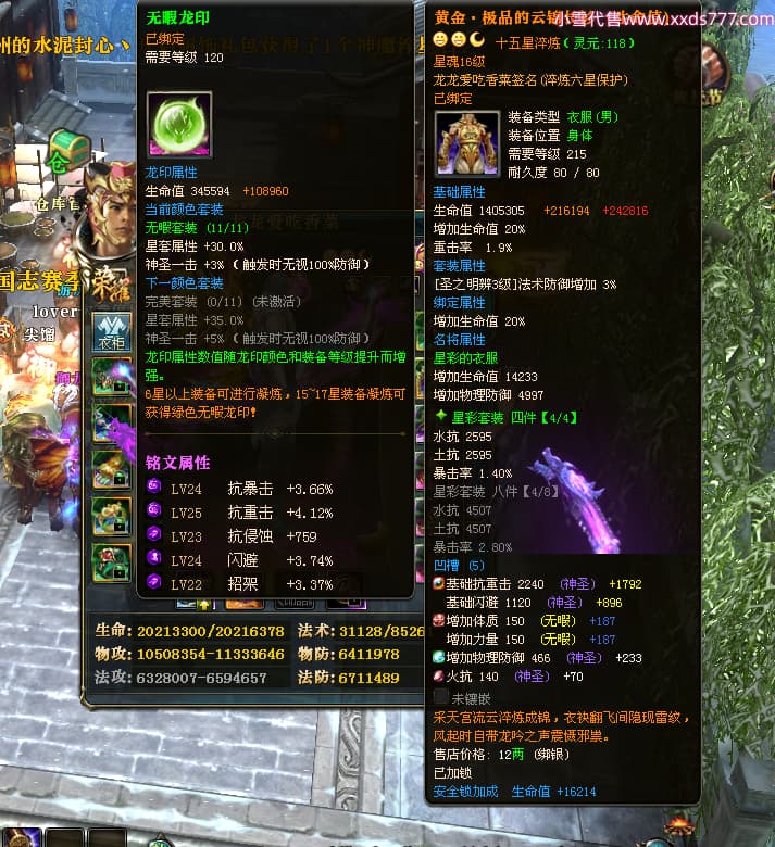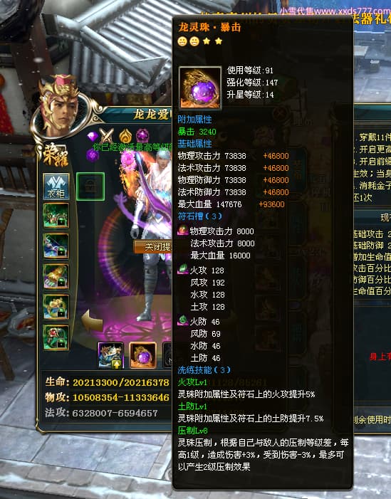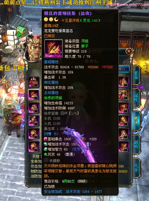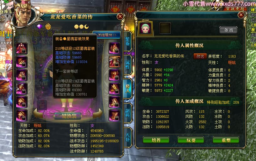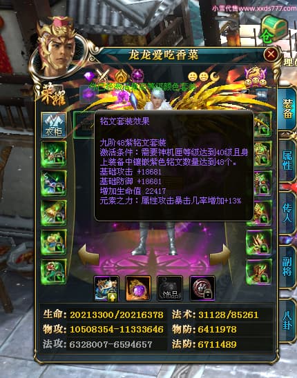 编号W23940 龙龙爱吃香菜 龙舞九州 徐州 本国排名15名 16505W战力 人物精良紫15X(4件混沌) 传人精良紫15X 副将精良紫12X 马普通橙12X 精良紫15披风 人物星魂16级 传人12级 副将6级 马星魂13级 人物铭刻15级 点亮7件16星其余14星 马铭刻15级 点亮12星 人物绿龙印 马黄龙印 五六等单双属性神圣完美无瑕石头 蓝黄白孔