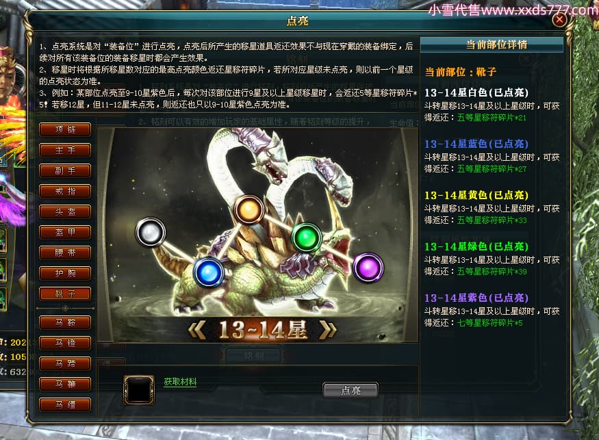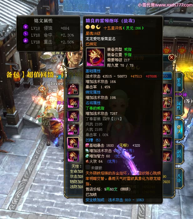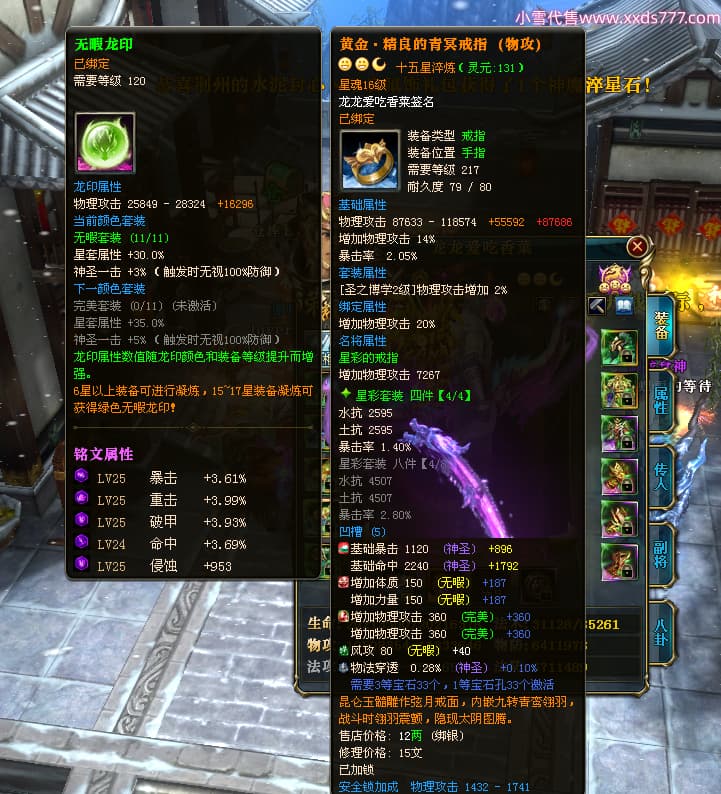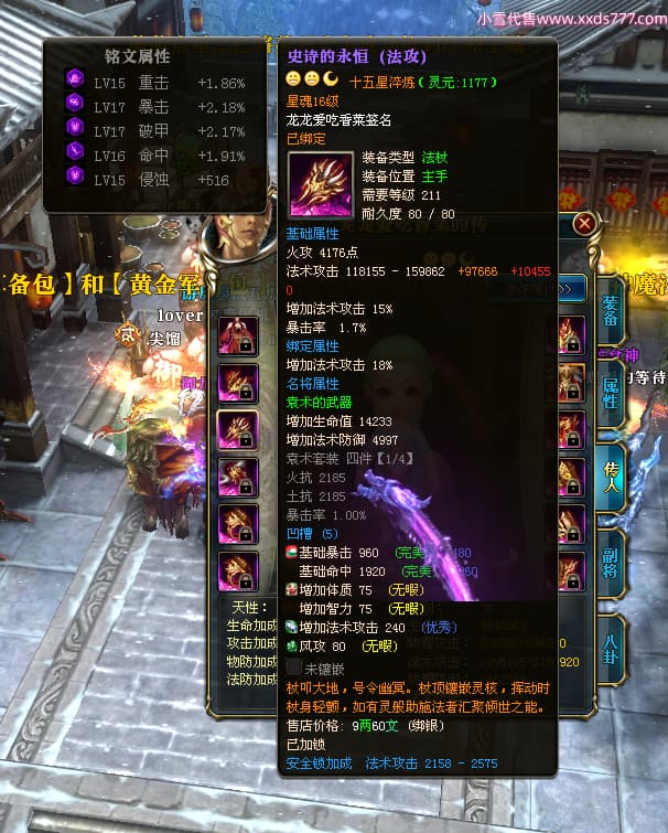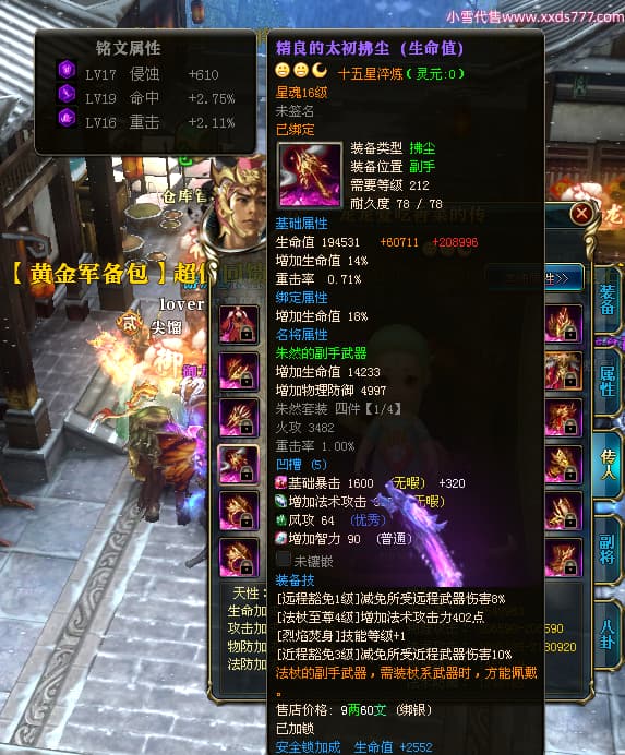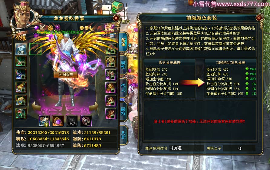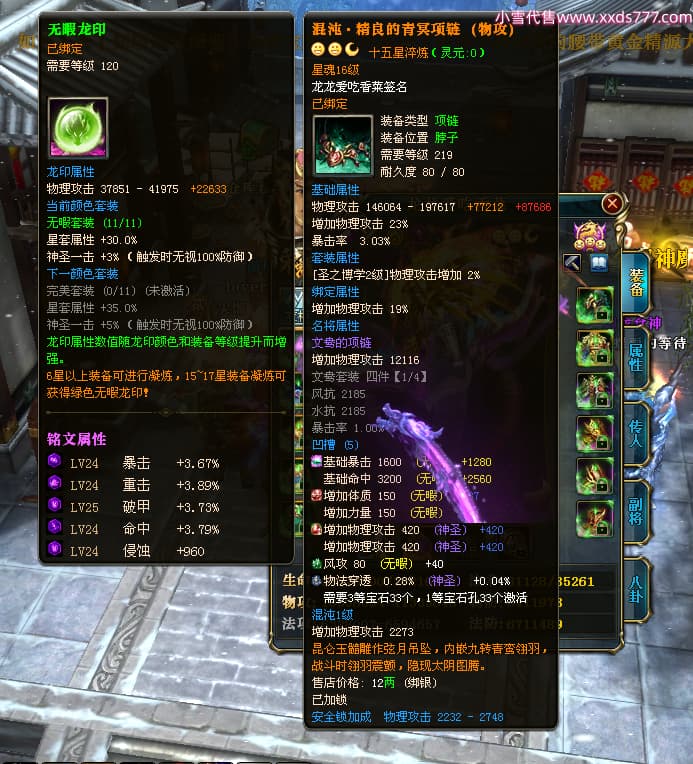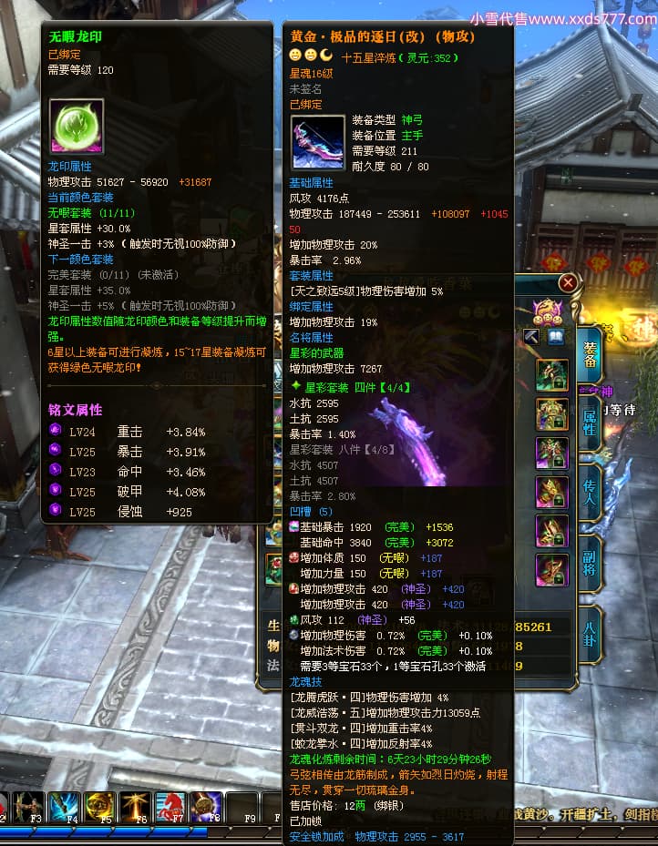 编号W23940 龙龙爱吃香菜 龙舞九州 徐州 本国排名15名 16505W战力 人物精良紫15X(4件混沌) 传人精良紫15X 副将精良紫12X 马普通橙12X 精良紫15披风 人物星魂16级 传人12级 副将6级 马星魂13级 人物铭刻15级 点亮7件16星其余14星 马铭刻15级 点亮12星 人物绿龙印 马黄龙印 五六等单双属性神圣完美无瑕石头 蓝黄白孔