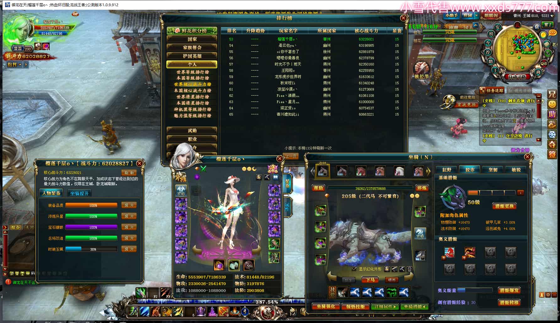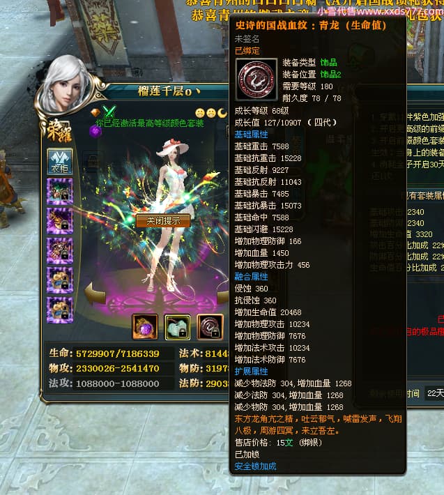 编号L23944 榴莲千层o丶 龙战王者 青州 世界排名53名 6202W战力 人物黄金极品橙15X(7件混沌) 马黄金精良橙12X 人物绿龙印(9件紫龙印) 马绿龙印 六等单双属性石头 已开完永久15星套 可以转移百分百安全