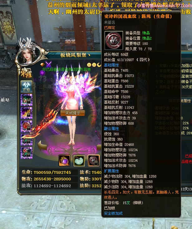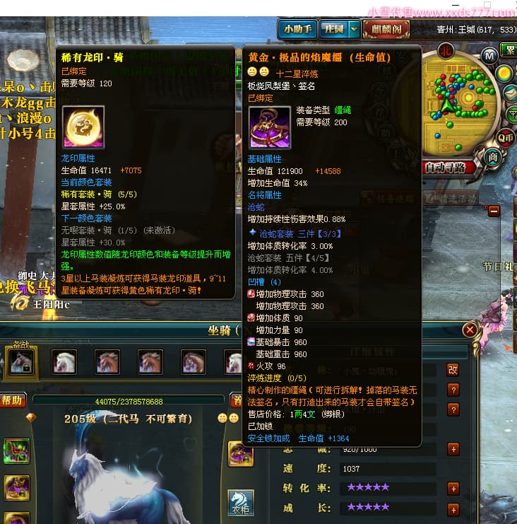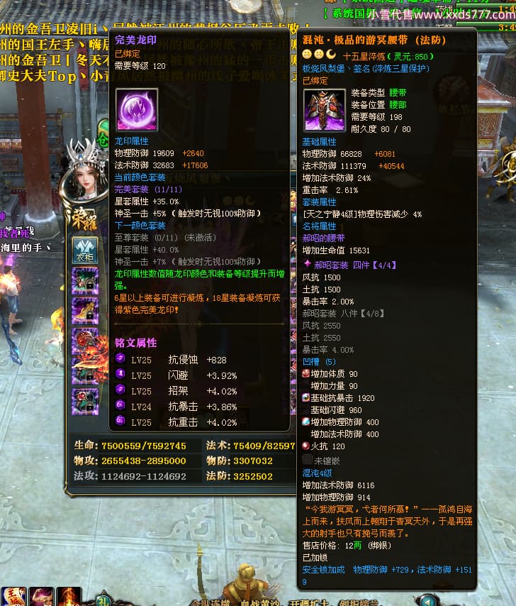 编号L23954 板烧凤梨堡丶 龙战王者 请州 世界排名38名 6836W战力 人物黄金极品橙15X(3件18X9件混沌) 马黄金极品橙12X 人物紫龙印 马黄龙印 六等单双属性石头 已开完永久15星套 可以转移百分百安全