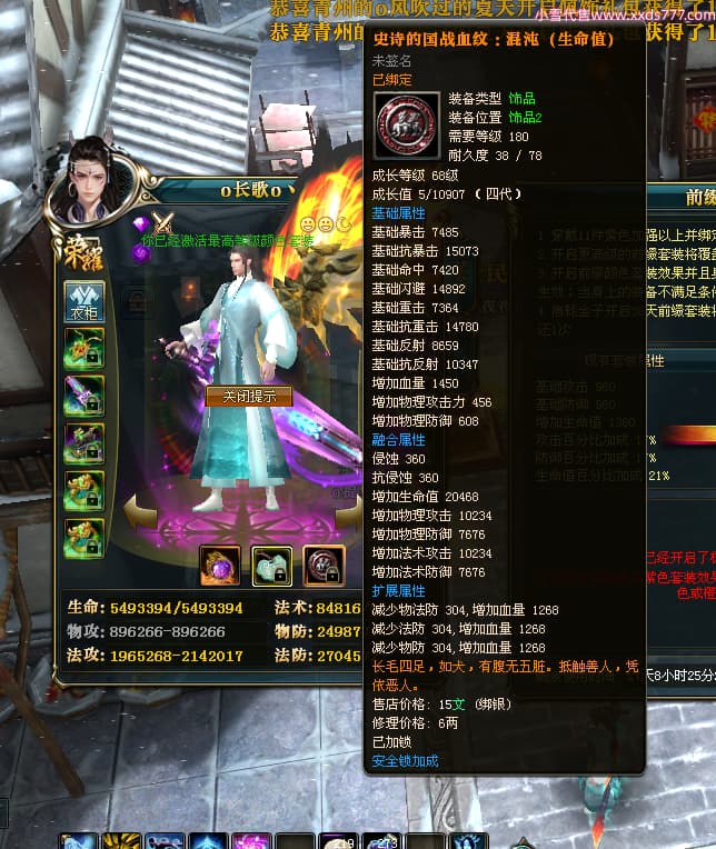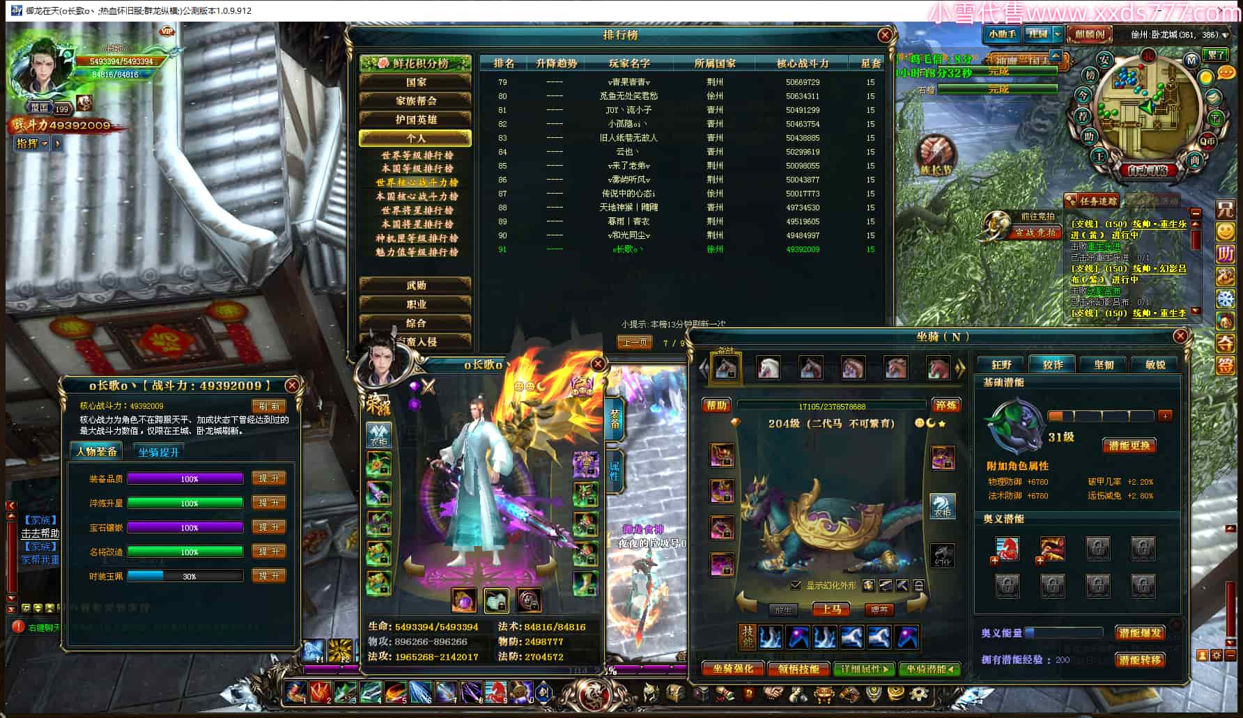 编号Q23956 o长歌o丶 群龙纵横 许州 世界排名91名 4939W战力 人物黄金普通橙15X(5件混沌) 马黄金普通橙10X 人物绿龙印(1件紫龙印) 马黄龙印 六等单双属性石头 已开完永久15星套 可以转移百分百安全