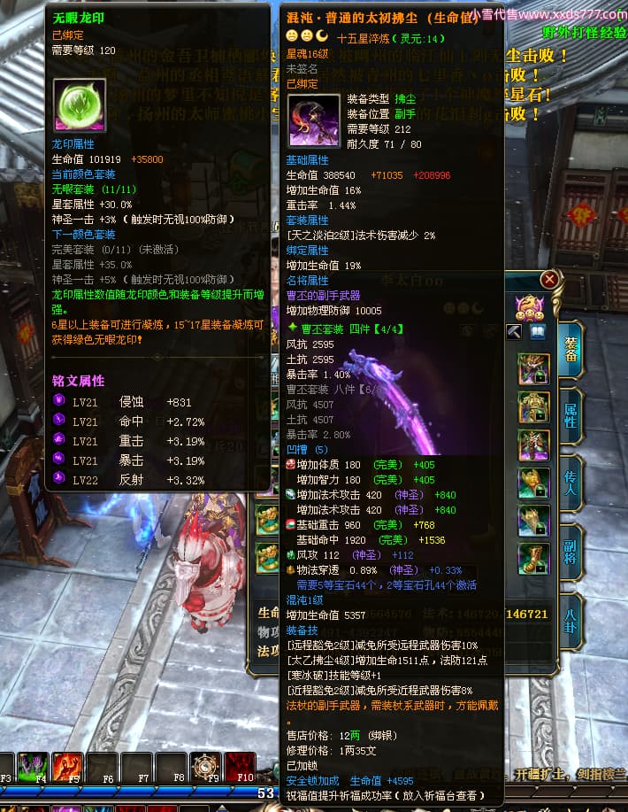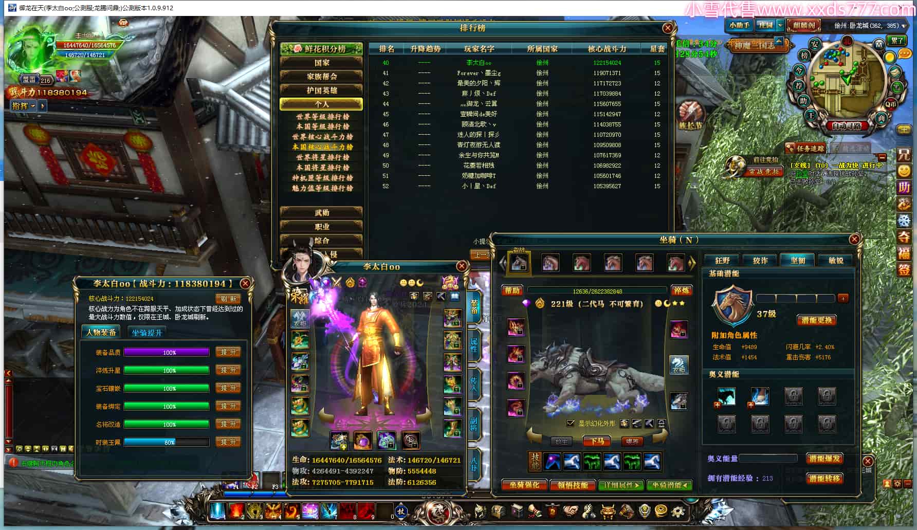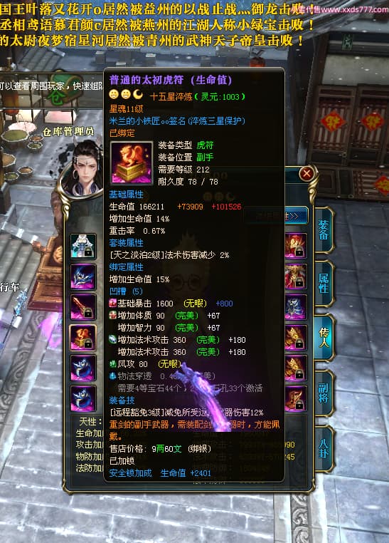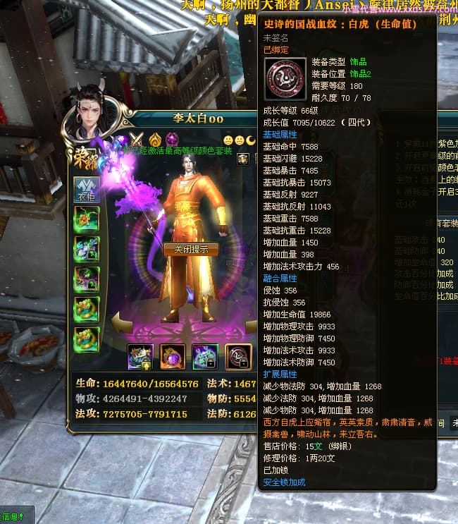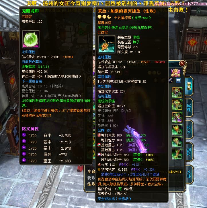 编号T23964 李太白oo 龙腾问鼎 徐州 本国排名40名 11838W战力 物黄金史诗紫15X(3件混沌) 传人普通紫15X 副将精良紫12X 马精良紫11X 精良紫15披风 人物星魂16级 传人星魂10级 副将星魂6级 马星魂13级 人物铭刻15级 点亮16星 马铭刻13级 点亮12星 人物绿龙印 马黄龙印 五六等单双属性完美神圣石头 黄孔 已开启永久15星套 可以转移百分百安全