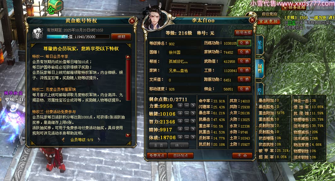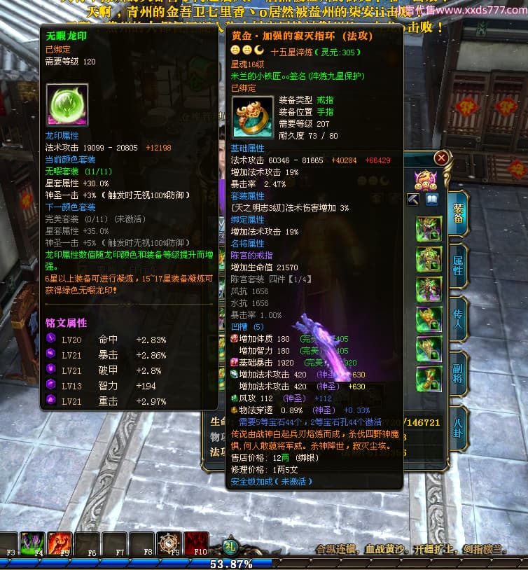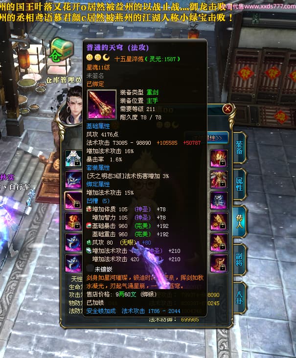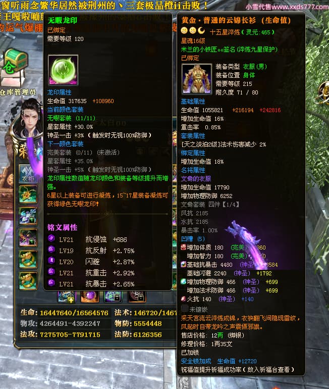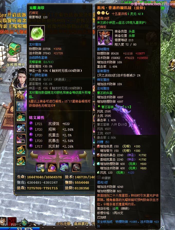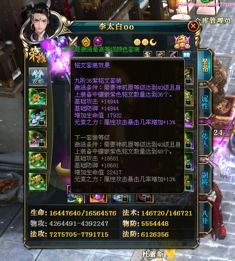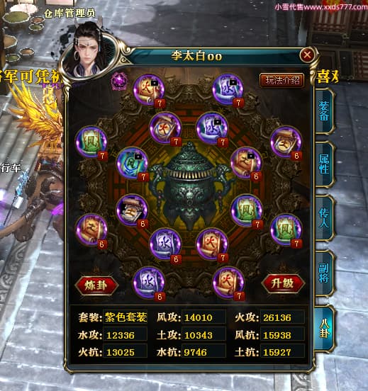 编号T23964 李太白oo 龙腾问鼎 徐州 本国排名40名 11838W战力 物黄金史诗紫15X(3件混沌) 传人普通紫15X 副将精良紫12X 马精良紫11X 精良紫15披风 人物星魂16级 传人星魂10级 副将星魂6级 马星魂13级 人物铭刻15级 点亮16星 马铭刻13级 点亮12星 人物绿龙印 马黄龙印 五六等单双属性完美神圣石头 黄孔 已开启永久15星套 可以转移百分百安全