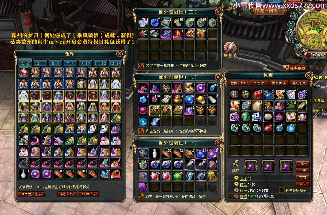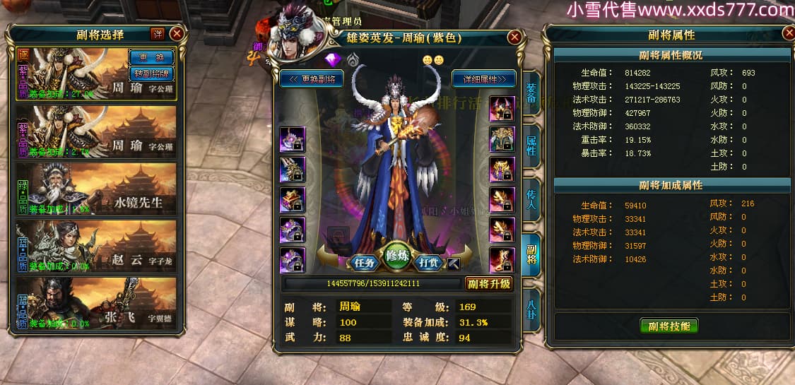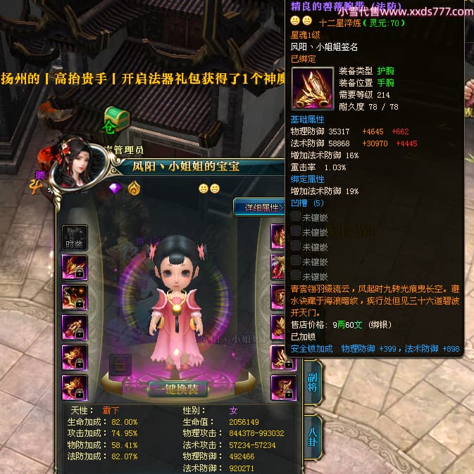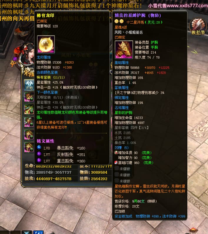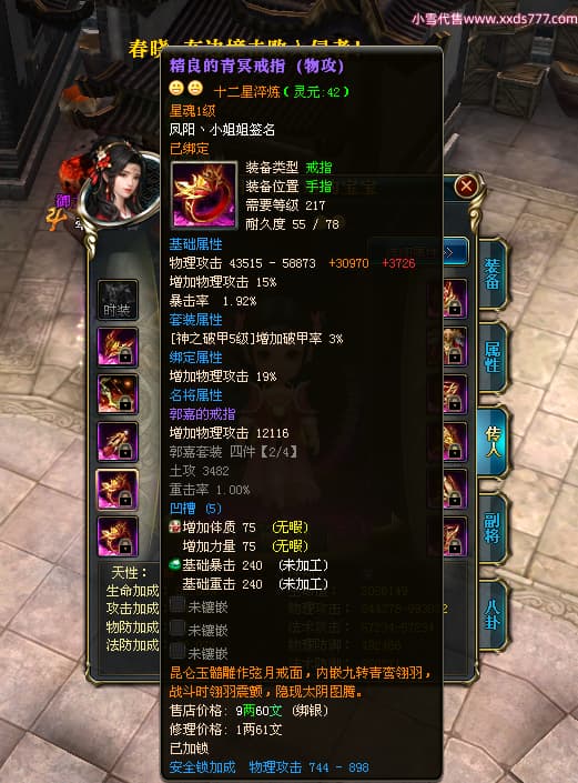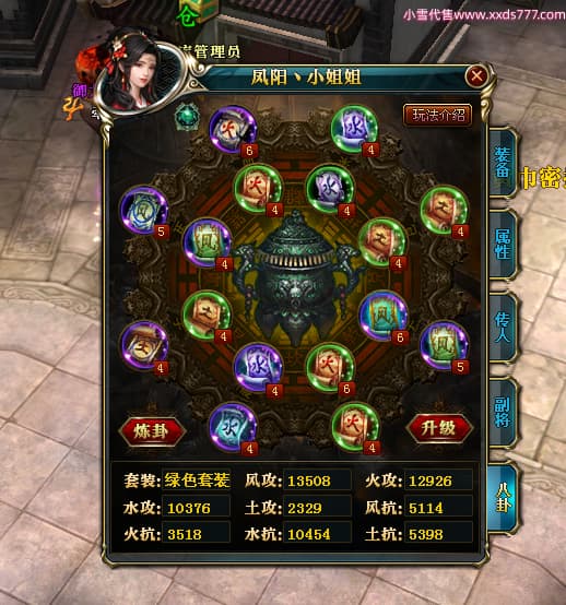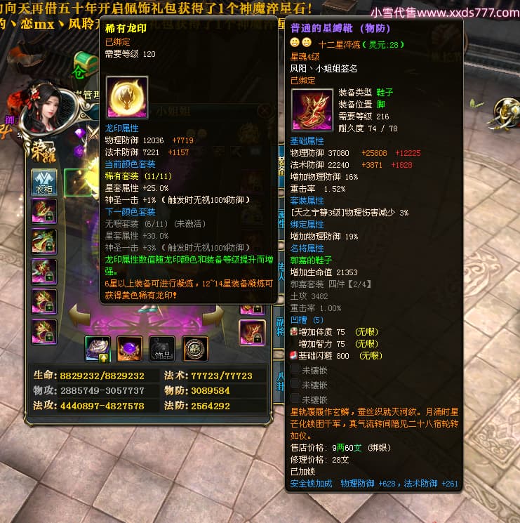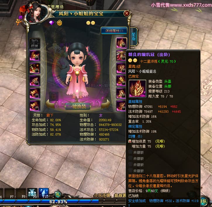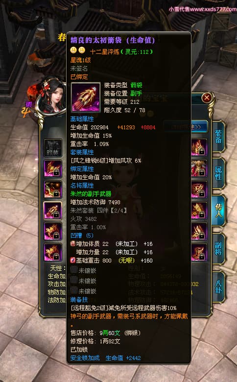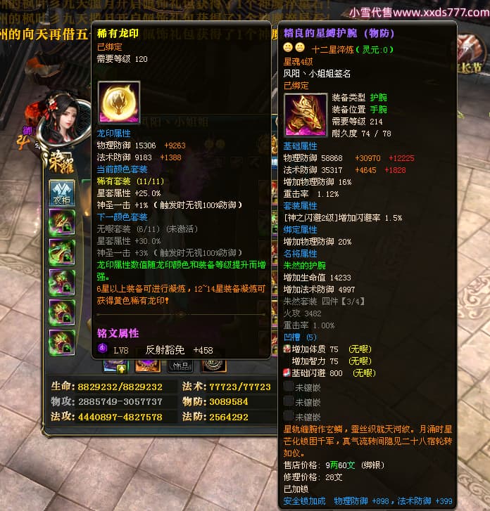 编号W23982 凤阳丶小姐姐 龙舞九州 幽州 5016W战力 人物精良紫12X(1件15X) 传人精良紫12X 副将加强紫12X 马加强紫9X 人物星魂4级 马星魂4级 人物铭刻12级 点亮12星 马铭刻9级 点亮10星 人物黄龙印(6件绿龙印) 马蓝龙印 五等单双属性神圣完美无瑕石头