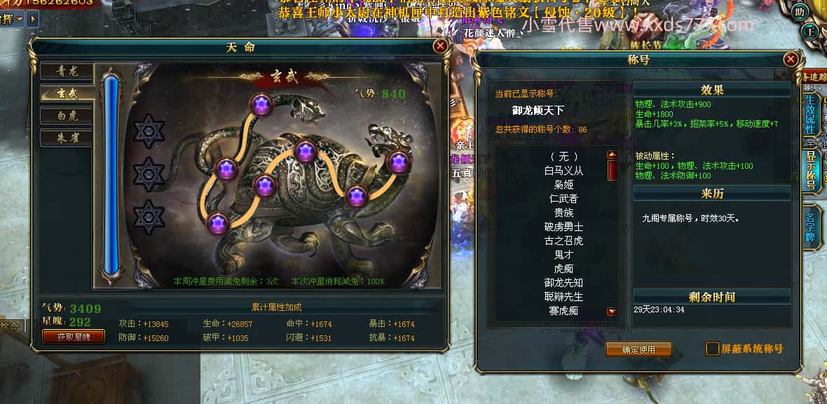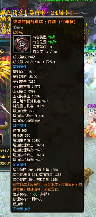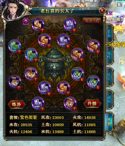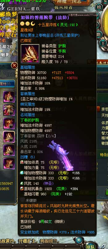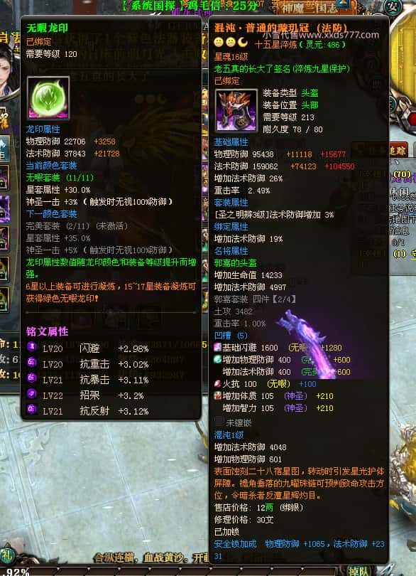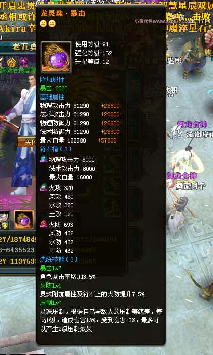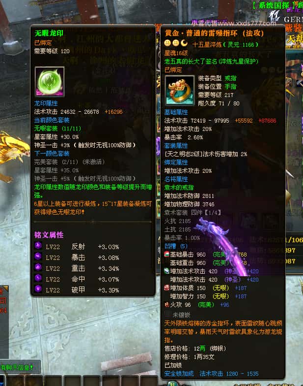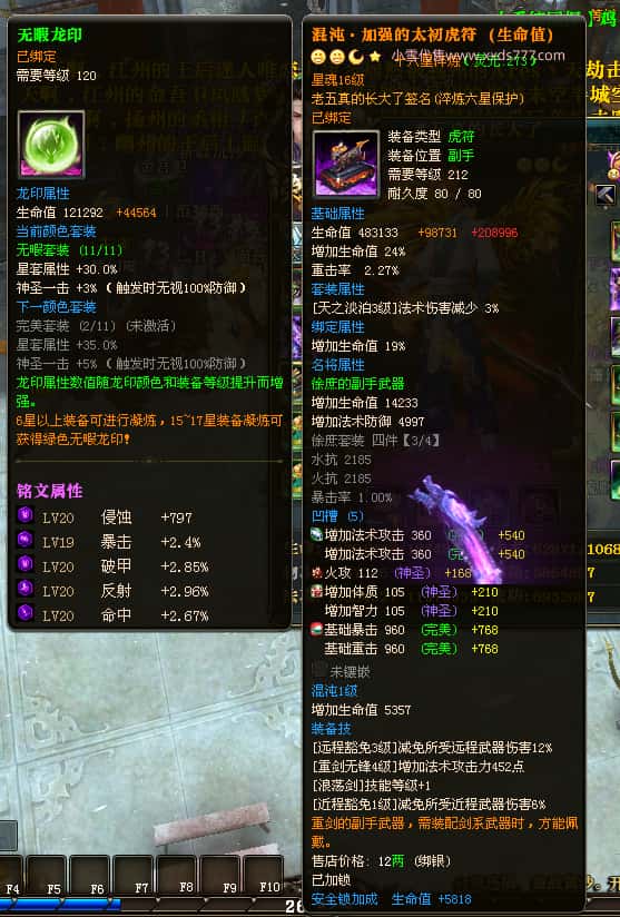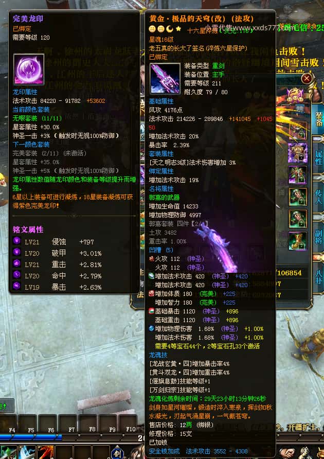 编号X23990 老五真的长大了 龙啸风云 益达 本国排名63名 15324W战力 人物普通15X(6件混沌) 传人加强紫15X 副将精良紫12X 马精良紫10X 精良紫15披风 人物星魂16级 传人星魂9级 副将星魂6级 马星魂12级 人物铭刻15级 点亮16星 马铭刻12级 点亮10星 人物绿龙印(武器衣服紫) 马黄龙印 五六等单双属性神圣完美无暇石头 蓝黄孔 已开完了永久15星套装