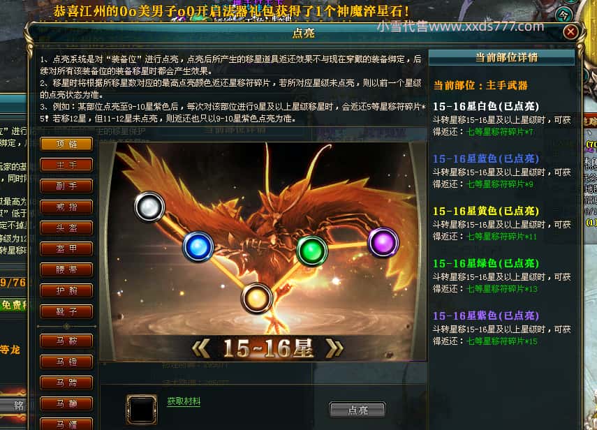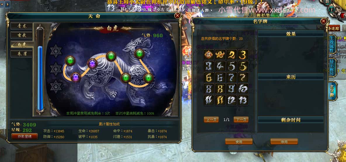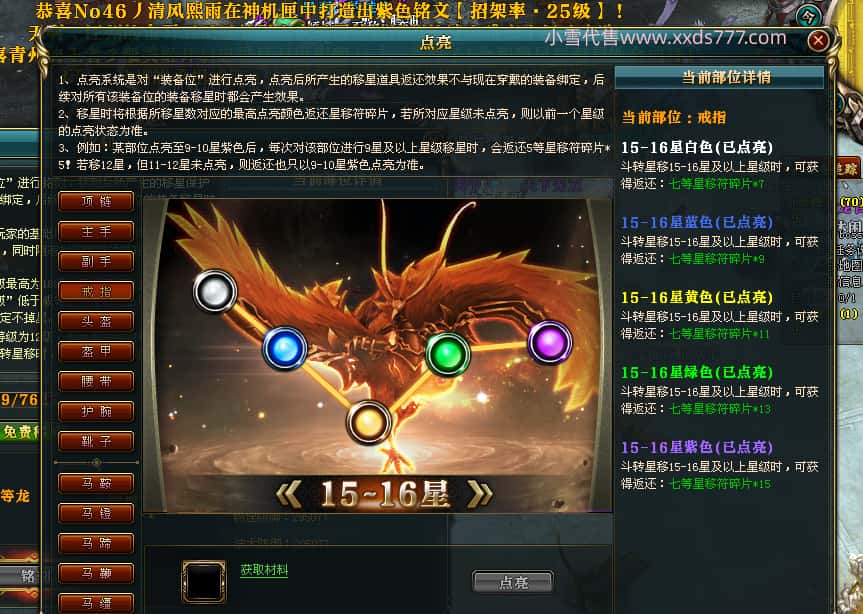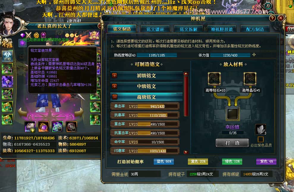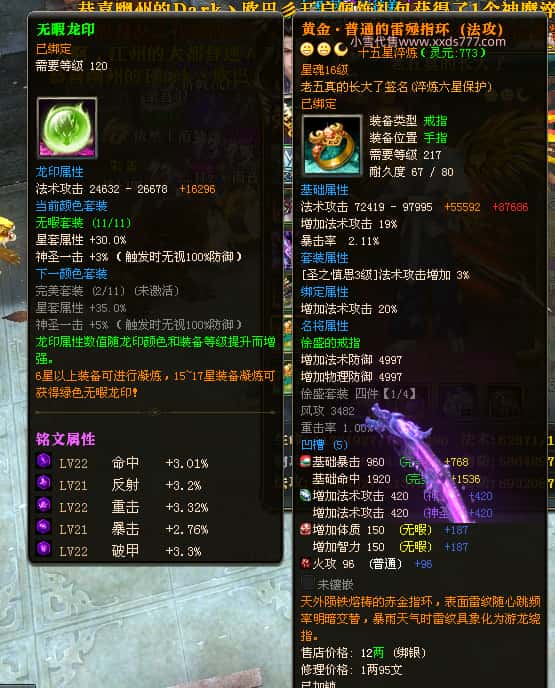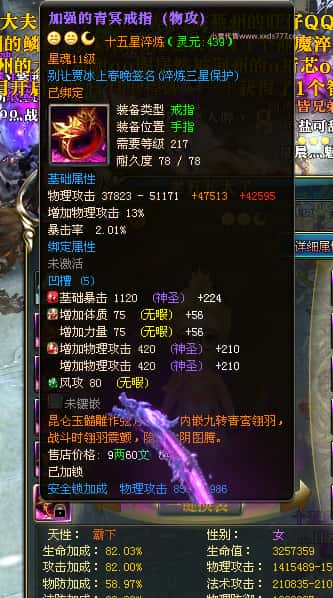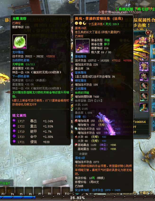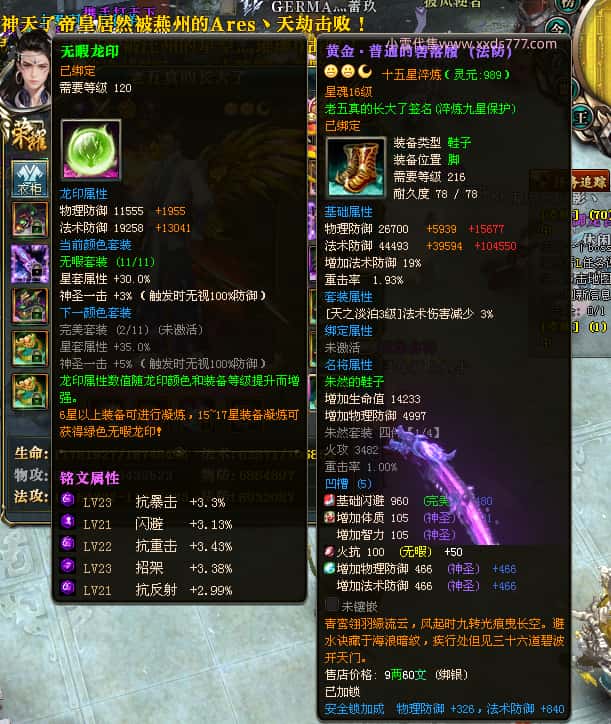 编号X23990 老五真的长大了 龙啸风云 益达 本国排名63名 15324W战力 人物普通15X(6件混沌) 传人加强紫15X 副将精良紫12X 马精良紫10X 精良紫15披风 人物星魂16级 传人星魂9级 副将星魂6级 马星魂12级 人物铭刻15级 点亮16星 马铭刻12级 点亮10星 人物绿龙印(武器衣服紫) 马黄龙印 五六等单双属性神圣完美无暇石头 蓝黄孔 已开完了永久15星套装