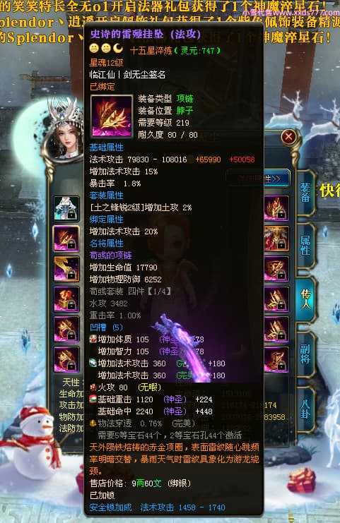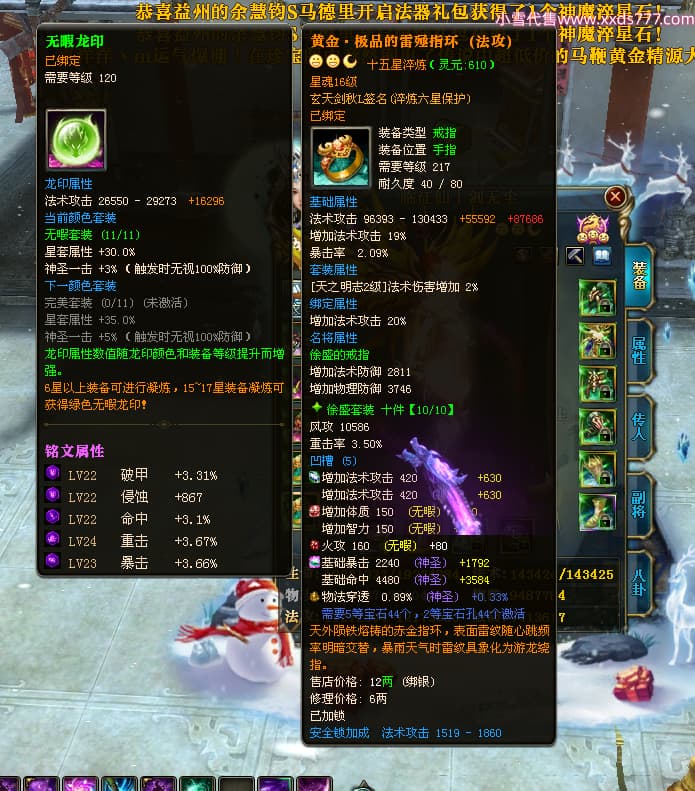 编号T23994 临江仙丨剑无尘 龙腾问鼎 幽州 本国排名14名 18204W战力 人物黄金精良橙15X(5件混沌) 传人史诗紫15X 副将精良紫12X 马普通橙12X 极品紫15披风 人物星魂16级 传人星魂9级 副将星魂6级 马星魂11级 人物铭刻15级 人物点亮16星 马铭刻2件15级其余14级 点亮12星 人绿龙印 马黄龙印 六等单双属性神圣完美石头 蓝黄孔 可以转移百分百安全