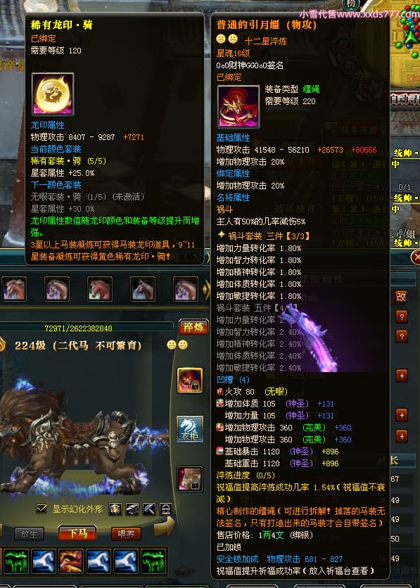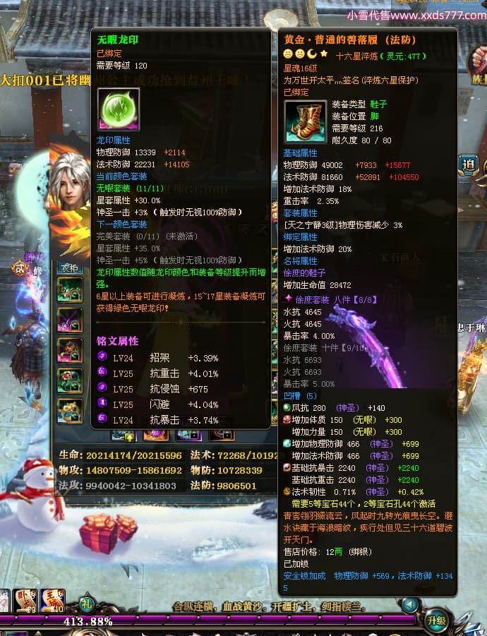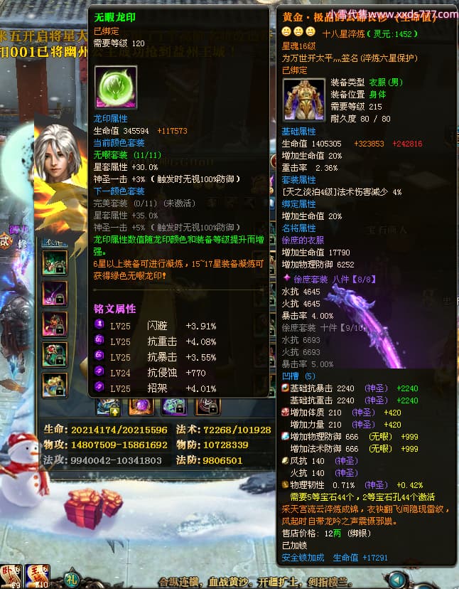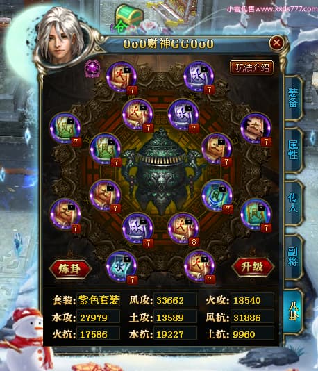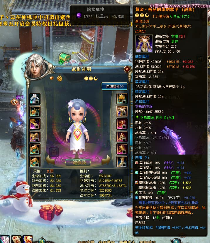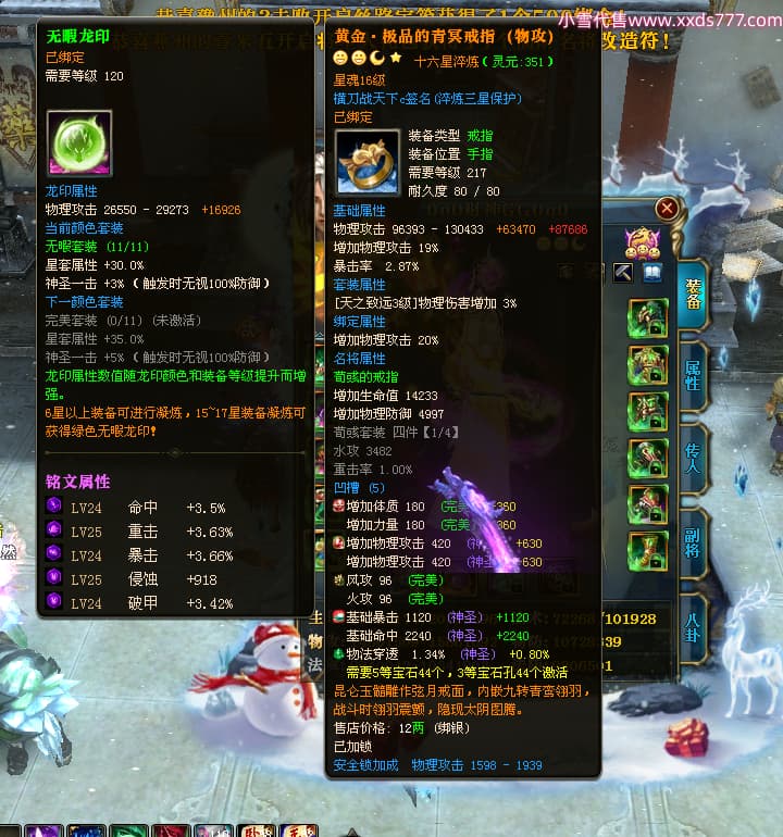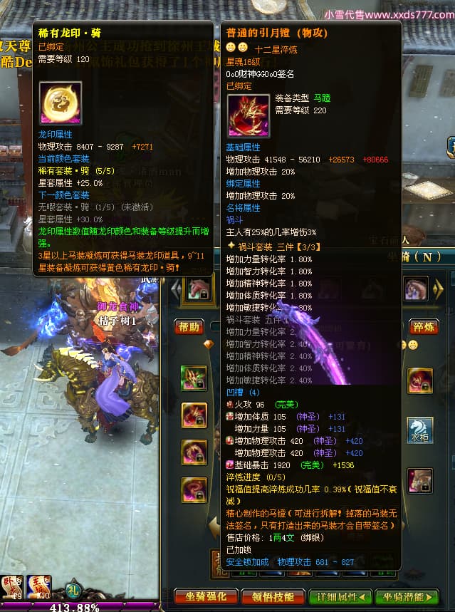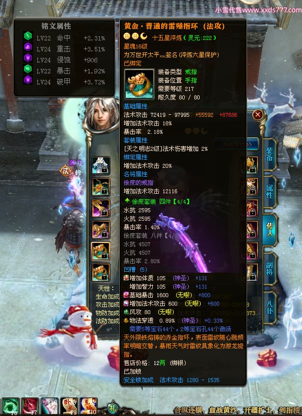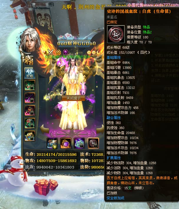 编号W23997 0o0财神GG0o0 龙舞九州 幽州 世界排名100名 23072W战力 人物黄金极品橙15X(2件18X7件混沌) 传人普通橙15X 副将极品紫15X 马普通橙12X 极品紫15披风 人物星魂16级 传人星魂16级 副将星魂8级 马星魂16级 人物铭刻15级 点亮16星 马铭刻1件13级其余12级 点亮1件14星其余12星 人物绿龙印 马黄龙印(1件绿龙印) 六等单双属性神圣完美无暇石头 黄绿孔