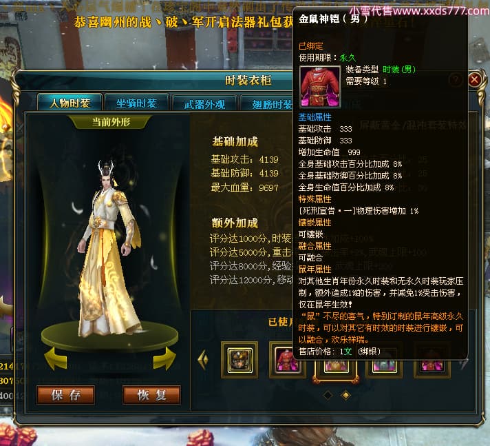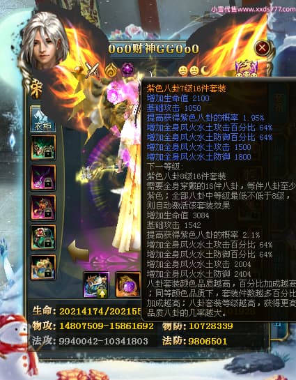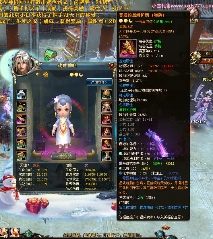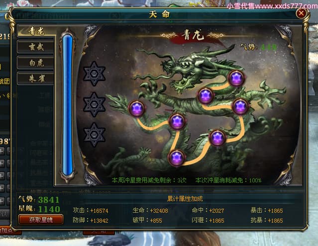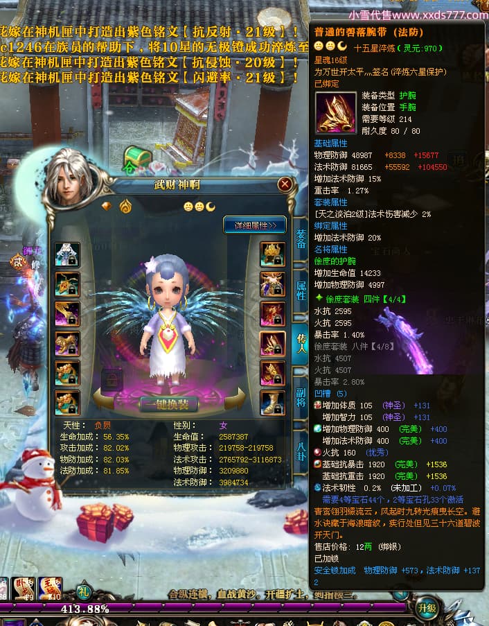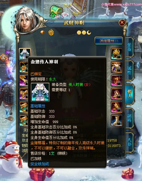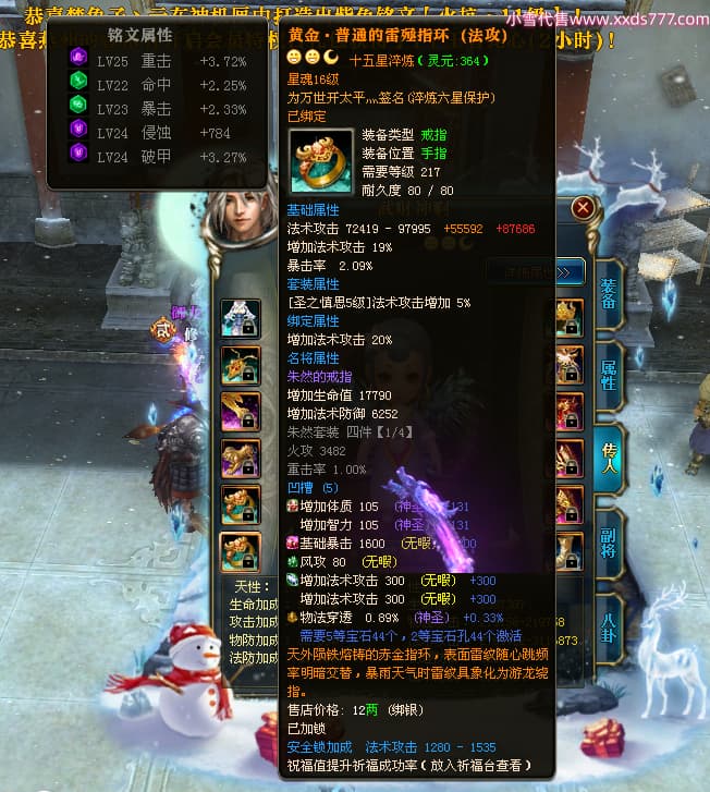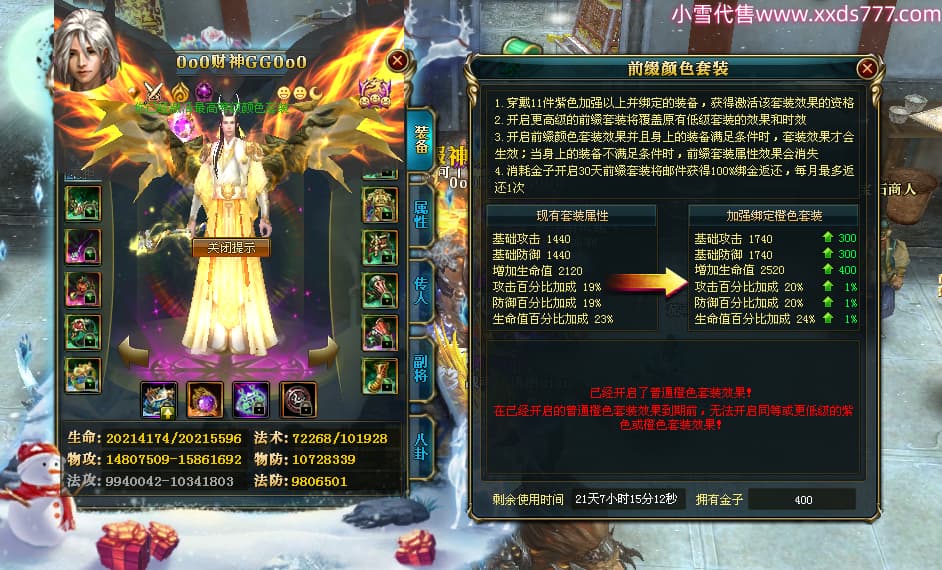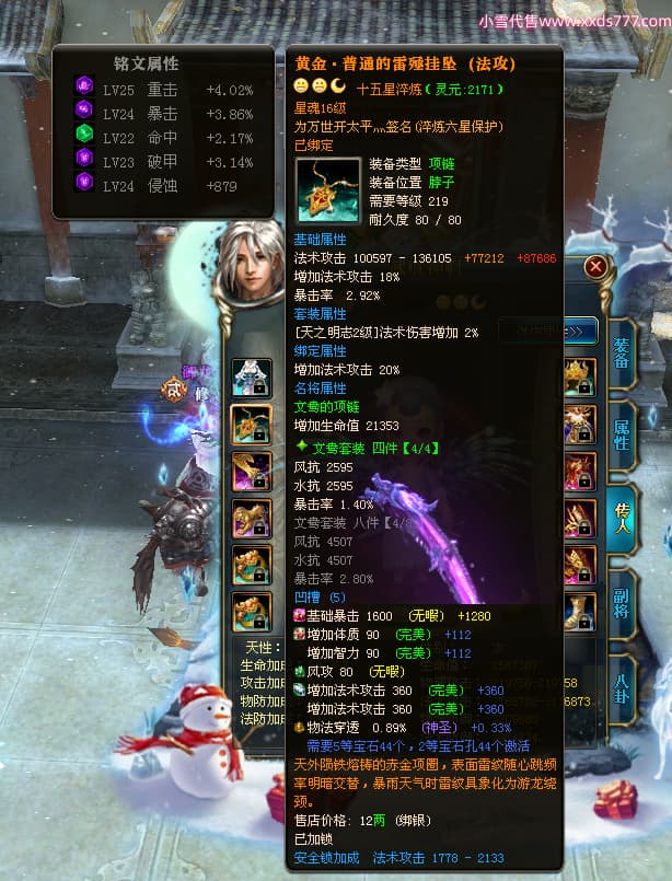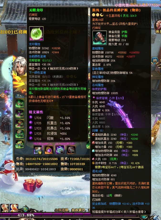 编号W23997 0o0财神GG0o0 龙舞九州 幽州 世界排名100名 23072W战力 人物黄金极品橙15X(2件18X7件混沌) 传人普通橙15X 副将极品紫15X 马普通橙12X 极品紫15披风 人物星魂16级 传人星魂16级 副将星魂8级 马星魂16级 人物铭刻15级 点亮16星 马铭刻1件13级其余12级 点亮1件14星其余12星 人物绿龙印 马黄龙印(1件绿龙印) 六等单双属性神圣完美无暇石头 黄绿孔