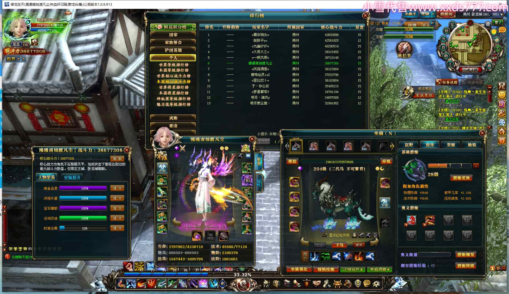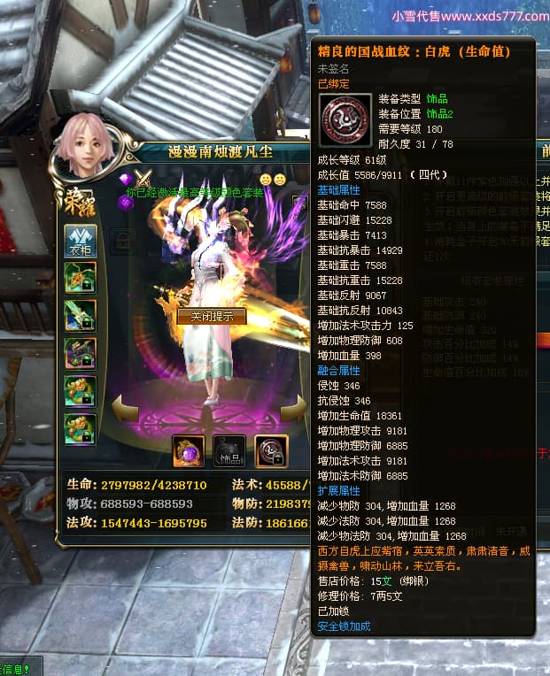 编号Q23999 漫漫南烛渡凡尘 群龙纵横 燕州 本国排名6名 3867W战力 人物黄金普通橙12X(1件15X5件混沌) 马史诗紫9X 人物绿龙印(1件紫龙印) 马黄龙印 六等单双属性石头 已开9次永久15星套 可以转移百分百安全