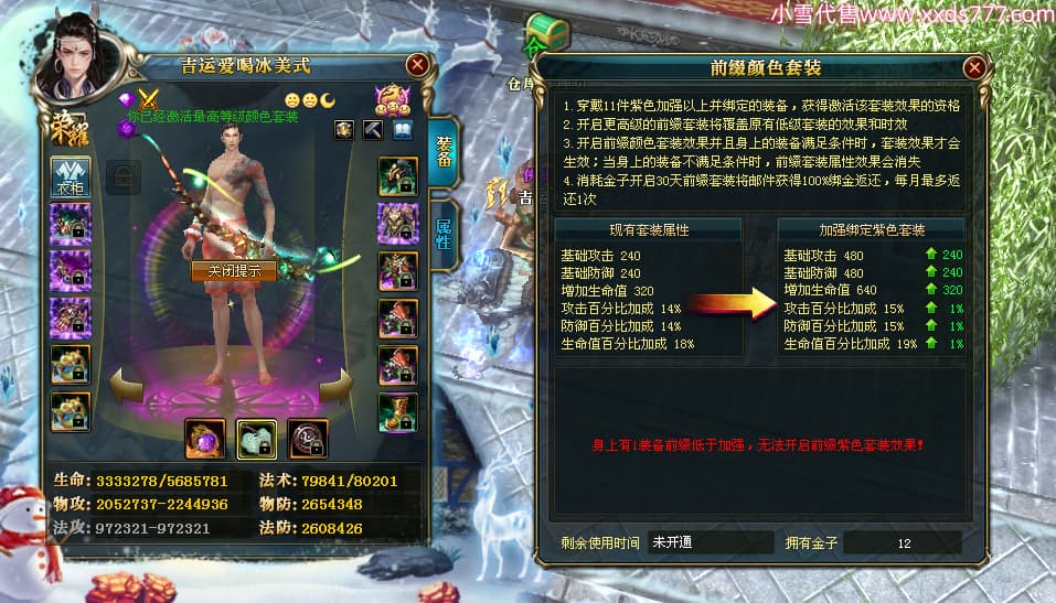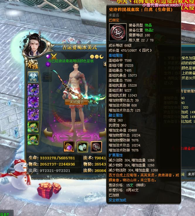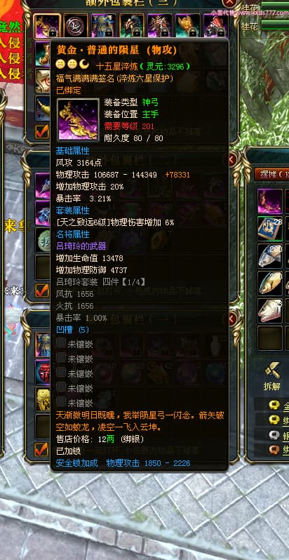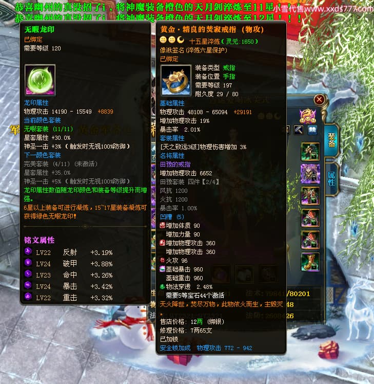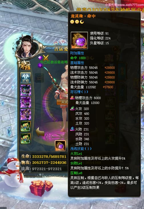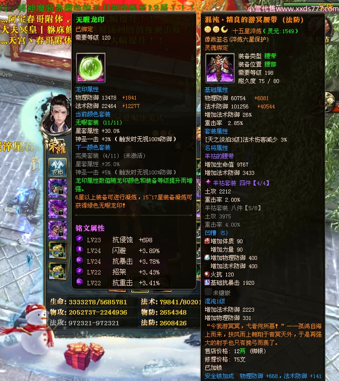 编号L24016 吉运爱喝冰美式 龙战王者 幽州 本国排名32名 5084W战力 人物黄金精良橙15X(6件混沌) 马普通橙12X(双潜能51级50级) 人物绿龙印(4件紫龙印) 马黄龙印 六等单双属性石头 有金戈铁马,下阶段套装属性5 6