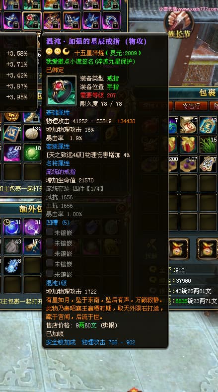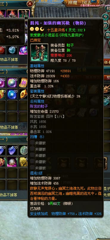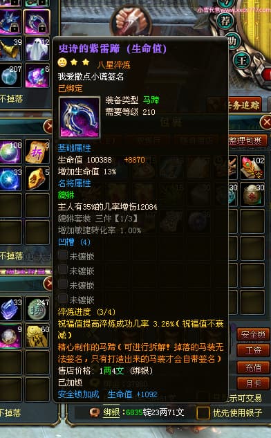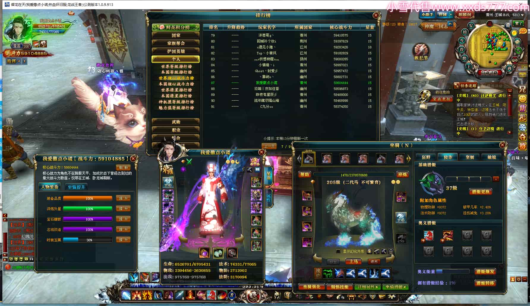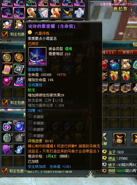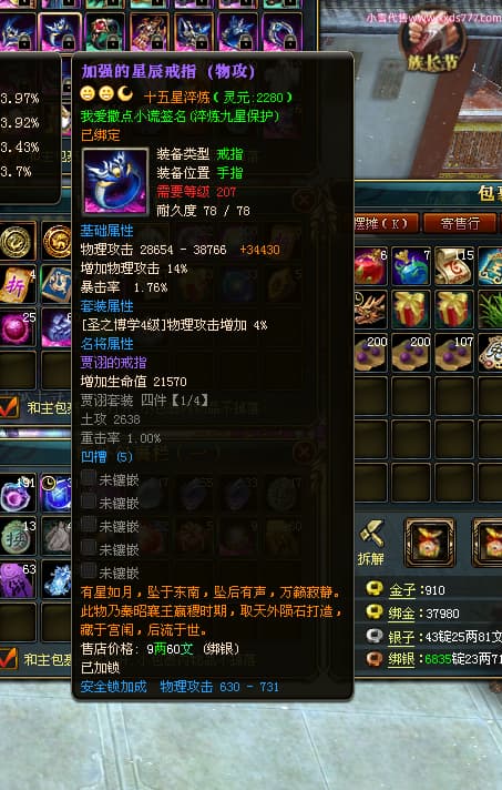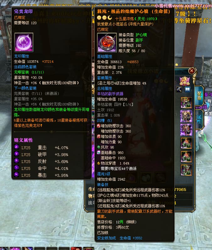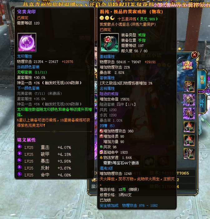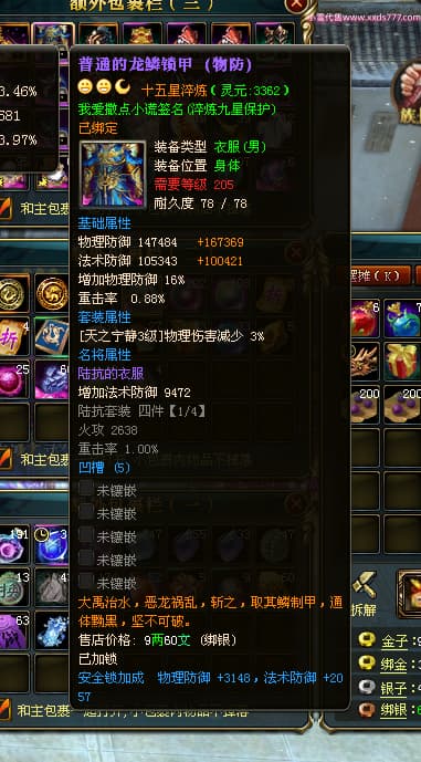 编号L24018 我爱撒点小谎 龙战王者 青州 世界排名87名 5910W战力 人物黄金极品橙15X(9件混沌) 马黄金加强橙12X 人物绿龙印(7件紫龙印) 马黄龙印 六等单双属性石头 已开完永久15星套 可以转移百分百安全