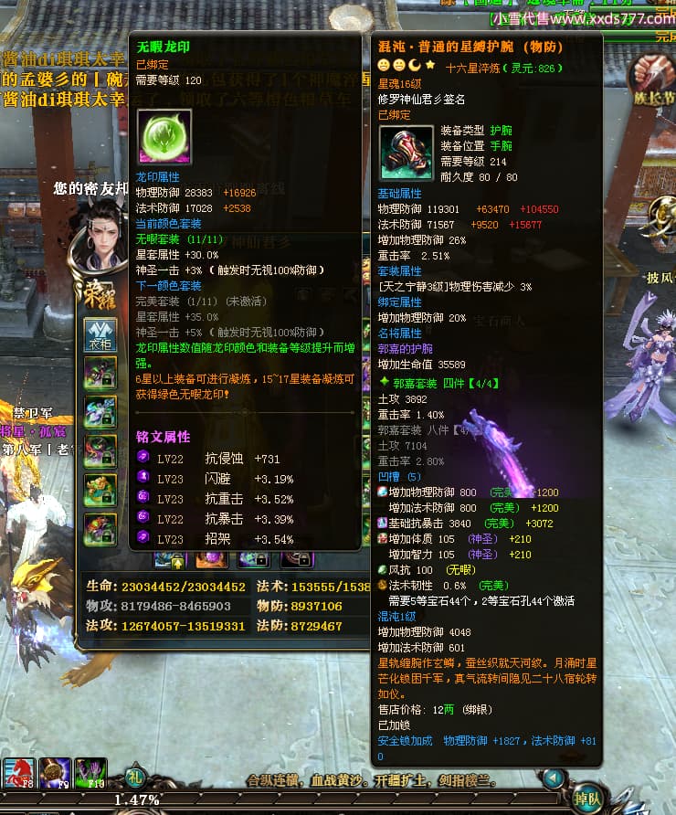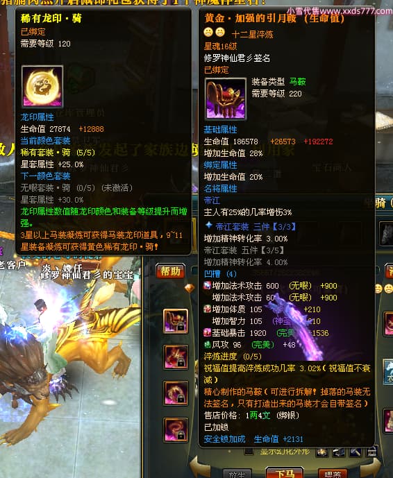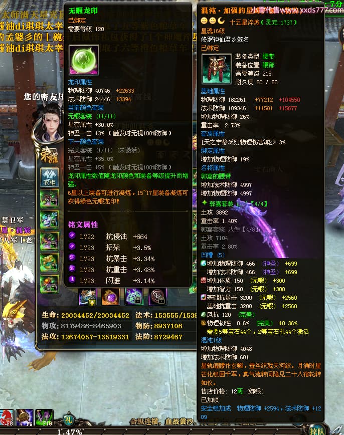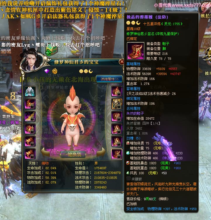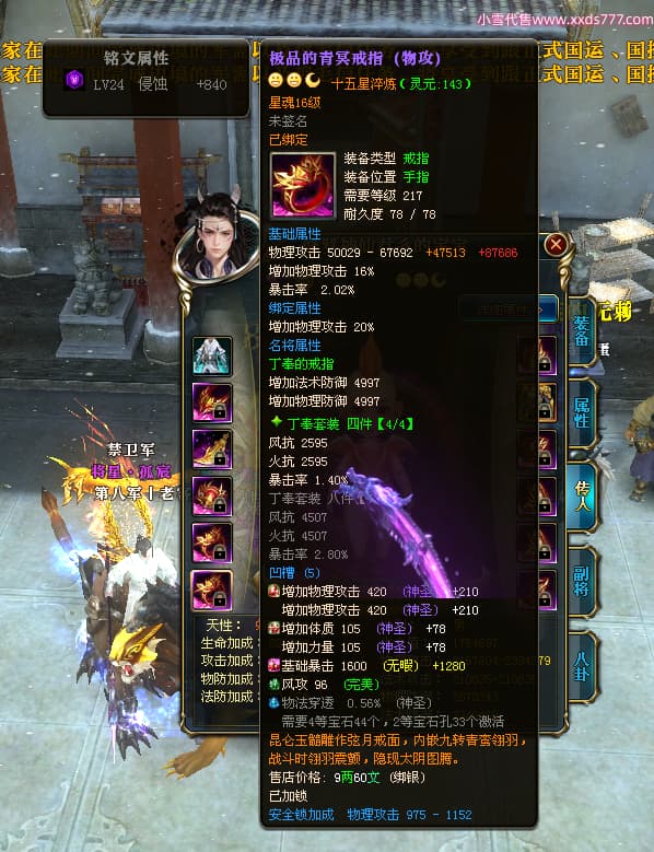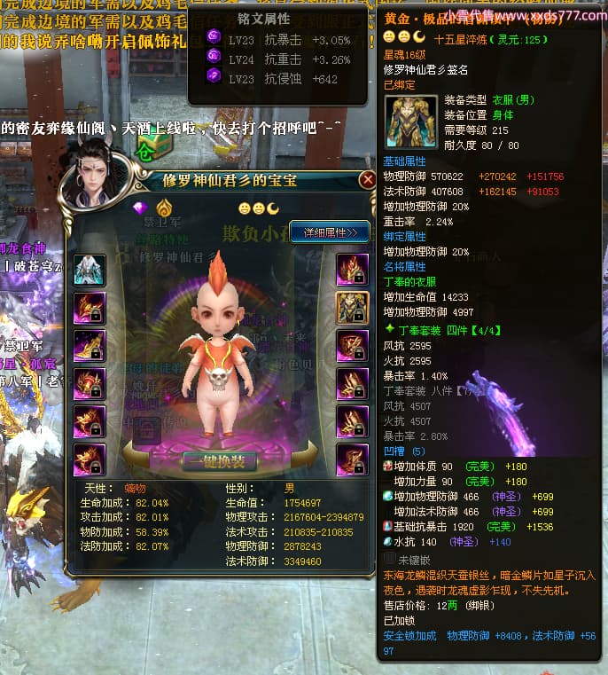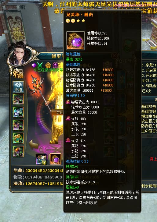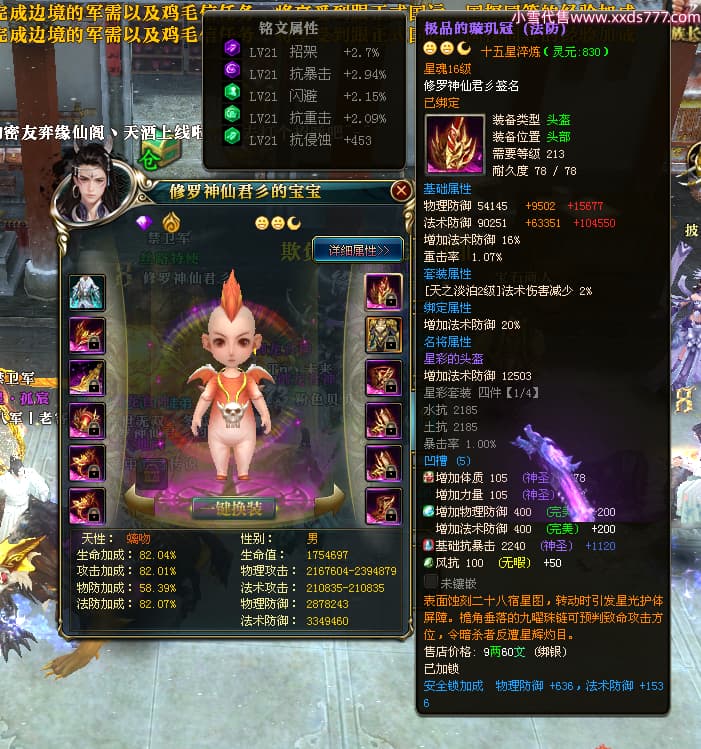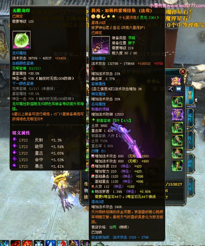 编号Z24021 修罗神仙君彡 逐鹿天下 益州 本国排名第12名 20247W战力 人物黄金普通橙15X(2件18X7件混沌) 传人极品紫15X 副将极品紫15X 马普通橙12X 极品紫15披风 人物星魂16级 传人10级 副将6级 马星魂16级 人物铭刻3件16级其余15级 点亮6件16星其余14星 马铭刻1件14级1件13级3件12级 点亮1件14星其余12星 人物绿龙印(1件紫龙印) 马黄龙印 六等单双属性神圣完美无暇石头 黄孔
