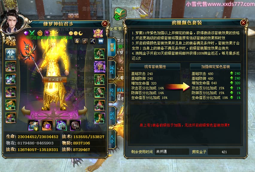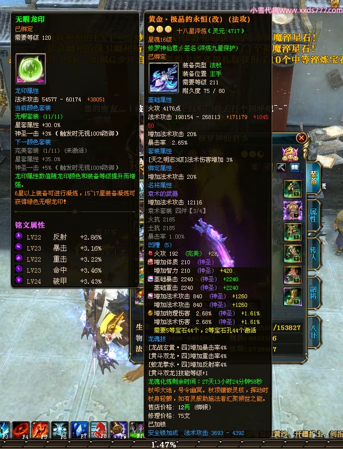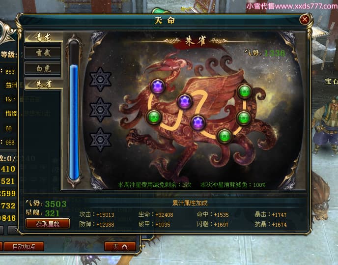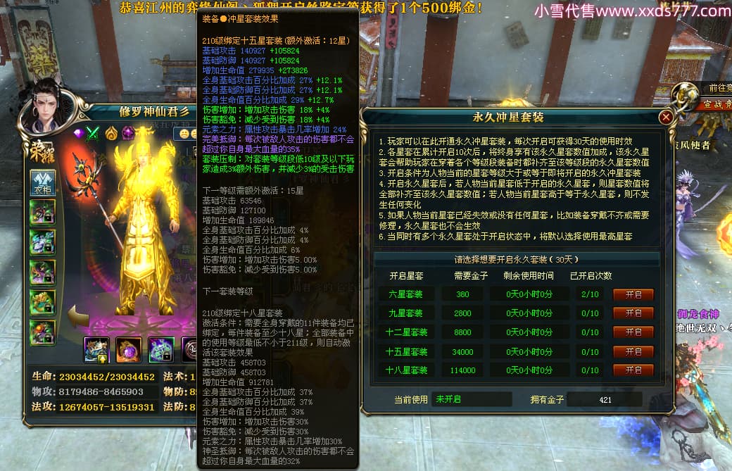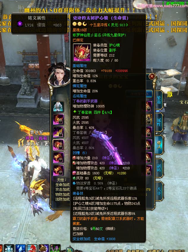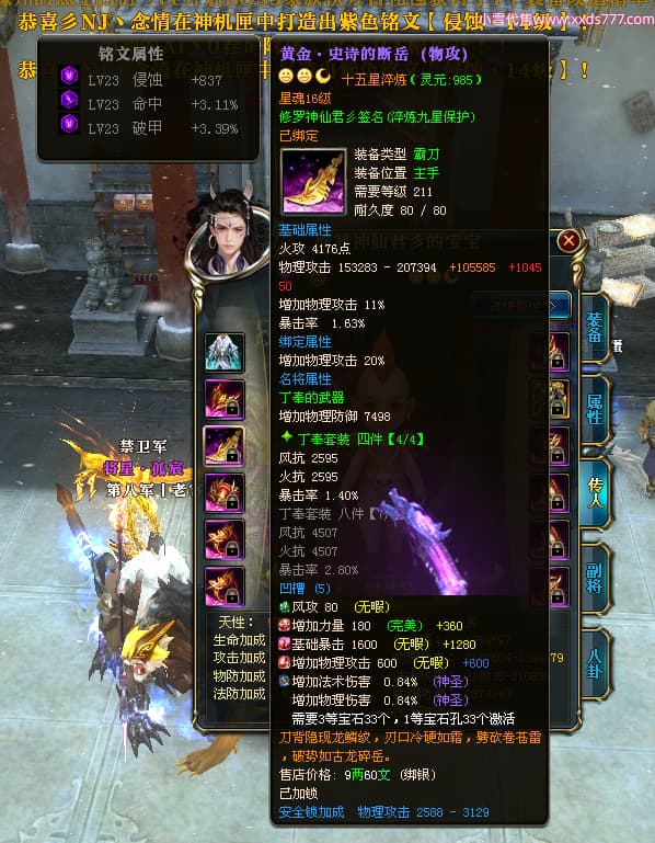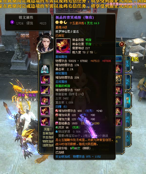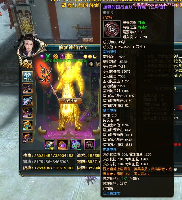 编号Z24021 修罗神仙君彡 逐鹿天下 益州 本国排名第12名 20247W战力 人物黄金普通橙15X(2件18X7件混沌) 传人极品紫15X 副将极品紫15X 马普通橙12X 极品紫15披风 人物星魂16级 传人10级 副将6级 马星魂16级 人物铭刻3件16级其余15级 点亮6件16星其余14星 马铭刻1件14级1件13级3件12级 点亮1件14星其余12星 人物绿龙印(1件紫龙印) 马黄龙印 六等单双属性神圣完美无暇石头 黄孔