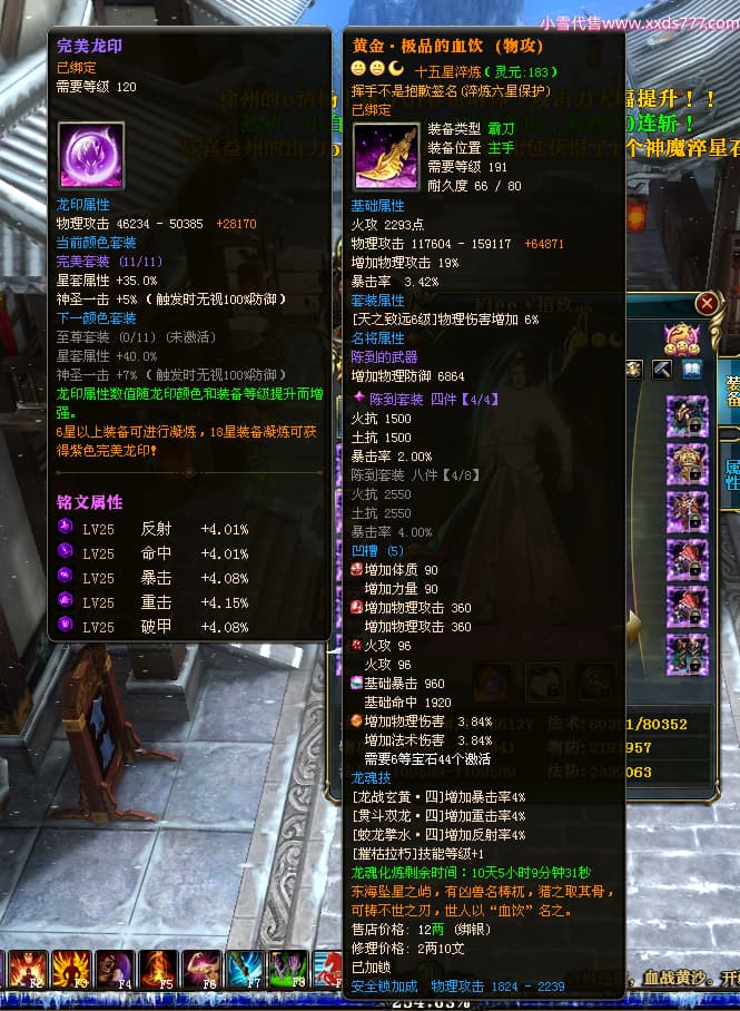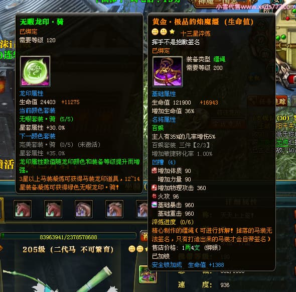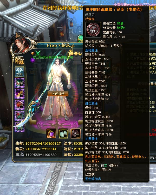编号L24036 Fiee丶拾玖灬 龙战王者 燕州 世界排名36名 7062W战力 人物黄金极品橙15X(9件混沌) 马黄金极品橙13X 人物紫龙印 马绿龙印 六等单双属性石头 已开完永久15星套