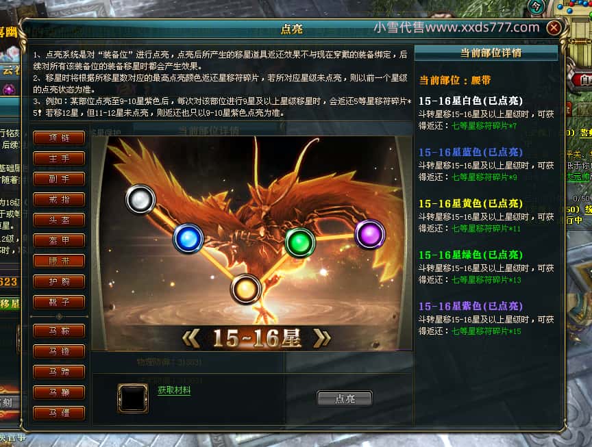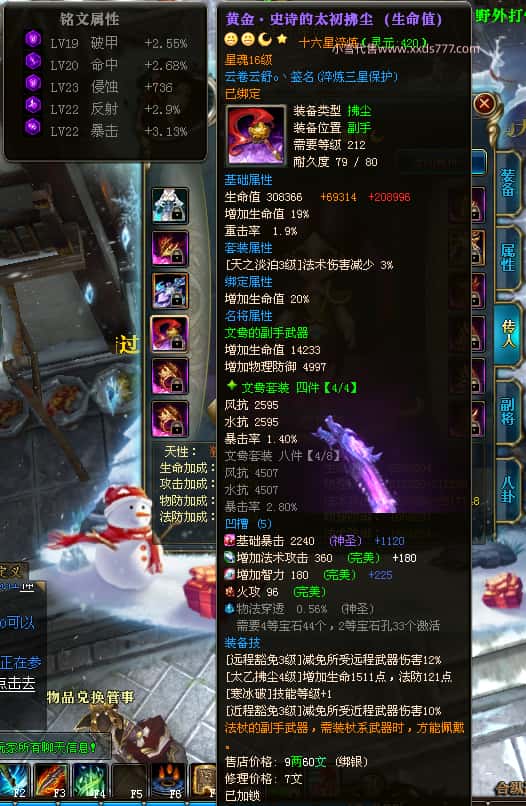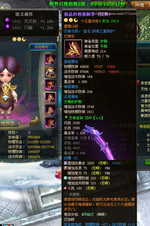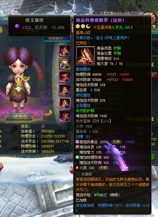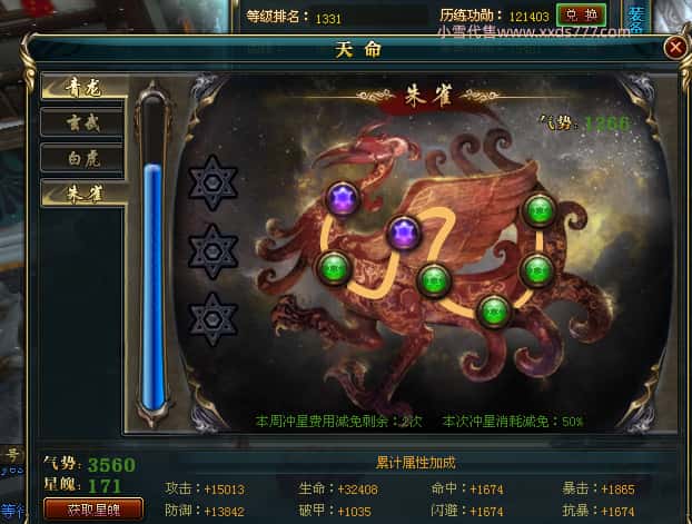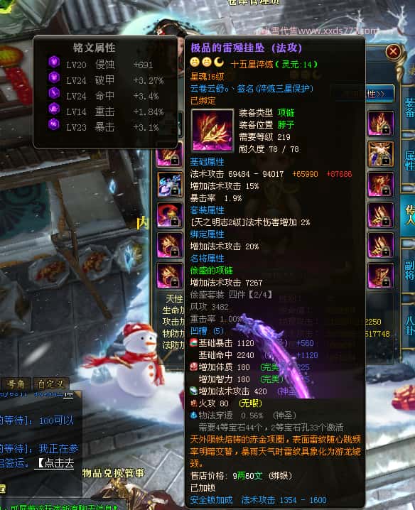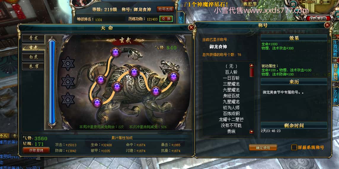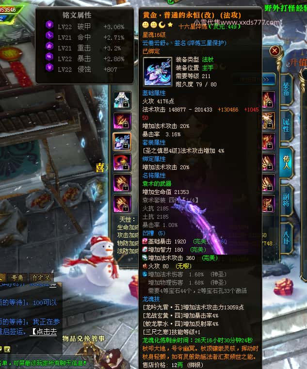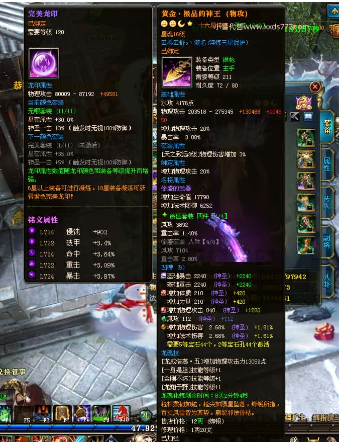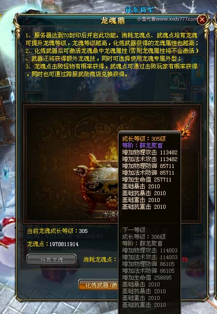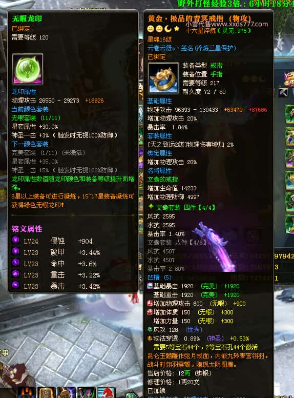 编号W24050 云卷云舒o丶 龙舞九州 徐州 本国排名6名 20142W战力 人物黄金普通紫15X(5件混沌) 传人极品紫15X 副将精良紫15X 马普通橙13X 极品紫15披风 人物星魂16级 传人星魂12级 副将星魂6级 马星魂16级 人物铭刻15级 点亮16星 马铭刻13级 马鞍马镫马蒂点亮14马鞭14星点亮绿色马缰12星 人物绿龙印(1件紫龙印) 马黄龙印 五六等单双属性神圣完美无暇石头 黄蓝孔 已开5次永久15星套
