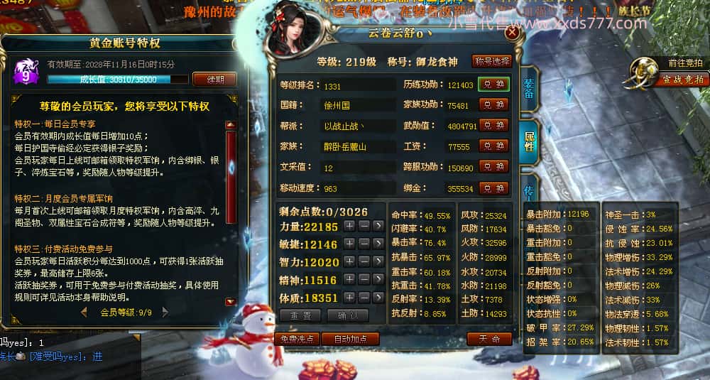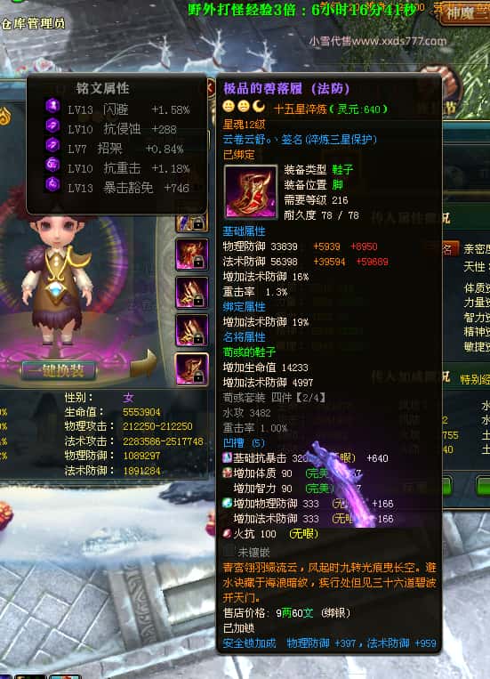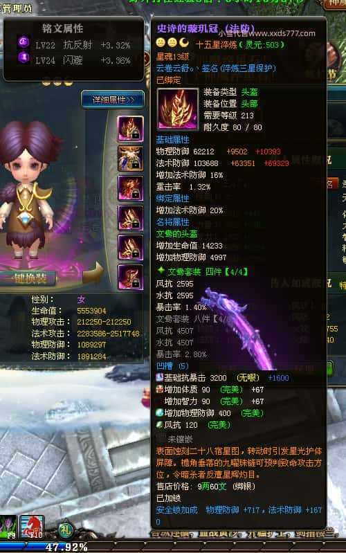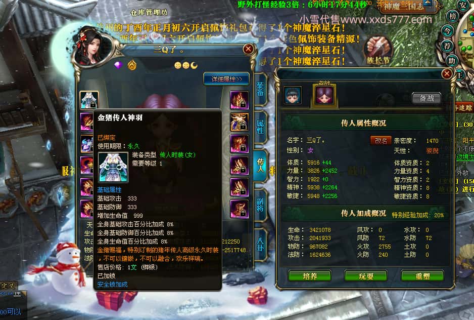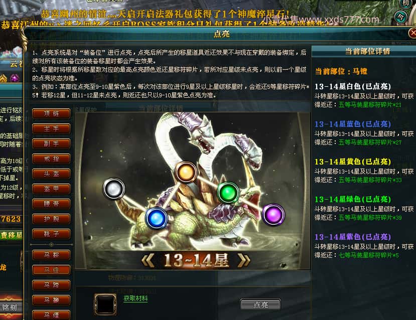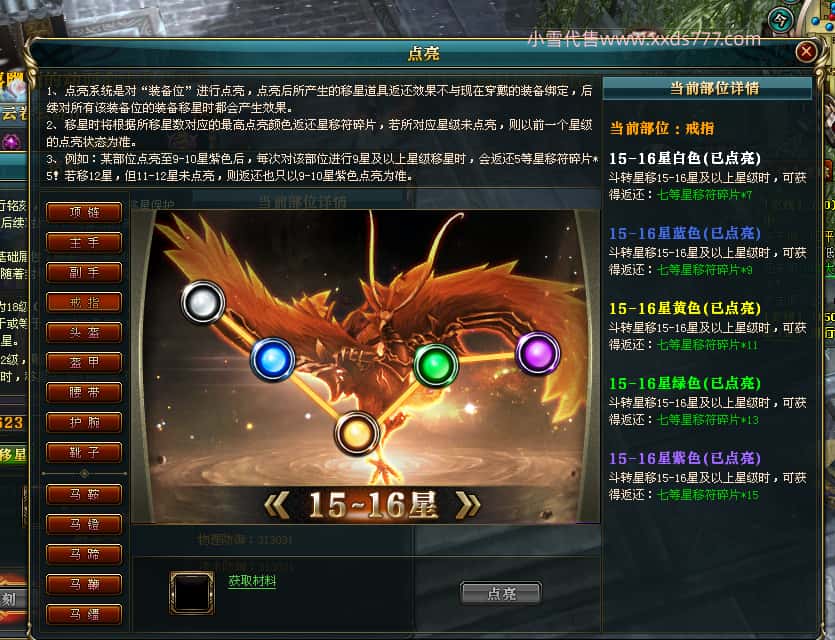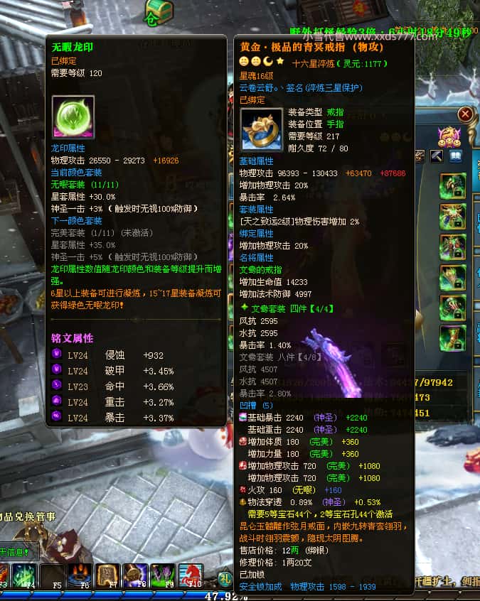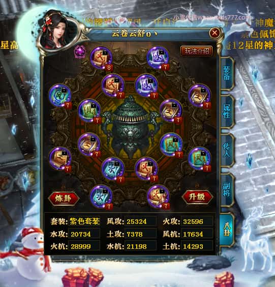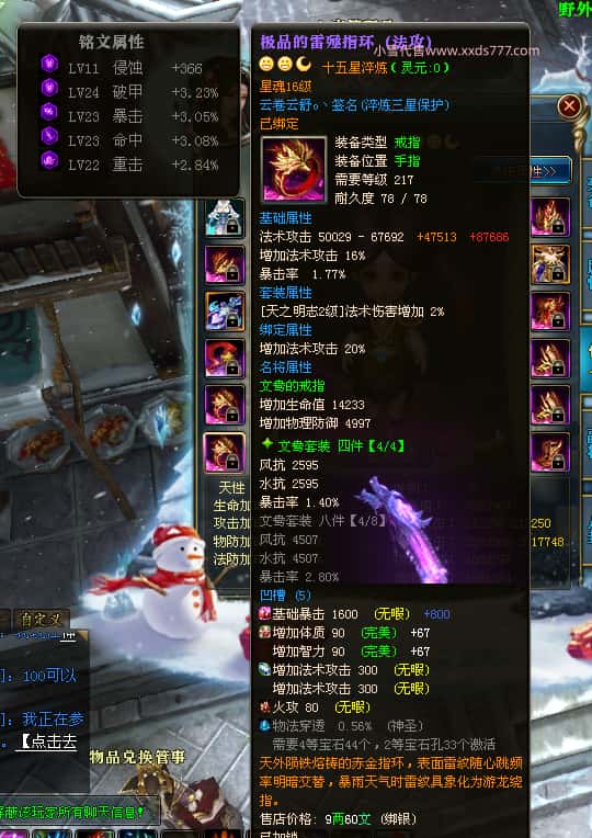 编号W24050 云卷云舒o丶 龙舞九州 徐州 本国排名6名 20142W战力 人物黄金普通紫15X(5件混沌) 传人极品紫15X 副将精良紫15X 马普通橙13X 极品紫15披风 人物星魂16级 传人星魂12级 副将星魂6级 马星魂16级 人物铭刻15级 点亮16星 马铭刻13级 马鞍马镫马蒂点亮14马鞭14星点亮绿色马缰12星 人物绿龙印(1件紫龙印) 马黄龙印 五六等单双属性神圣完美无暇石头 黄蓝孔 已开5次永久15星套