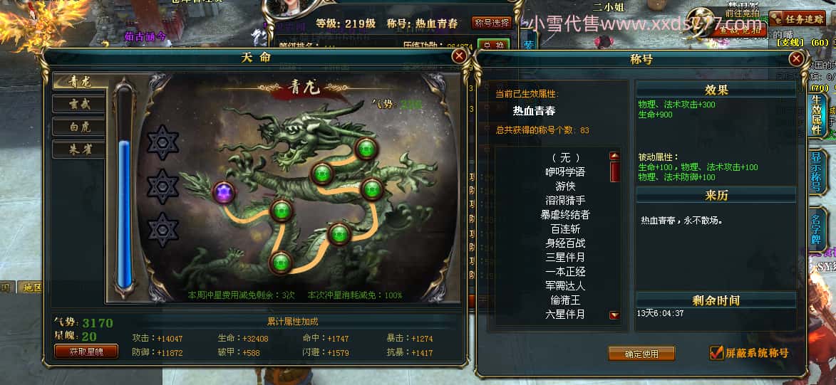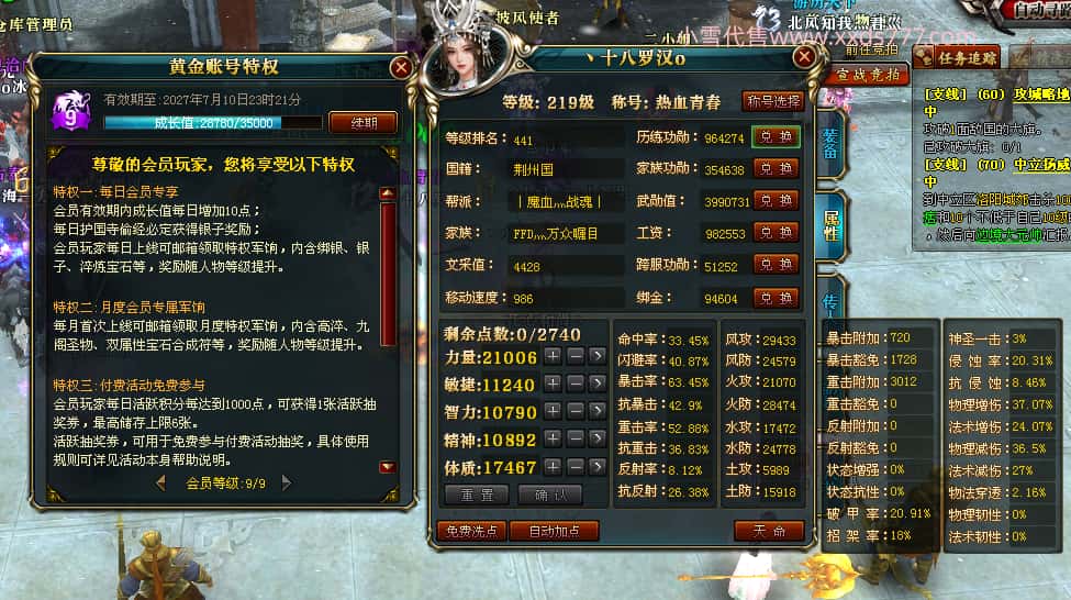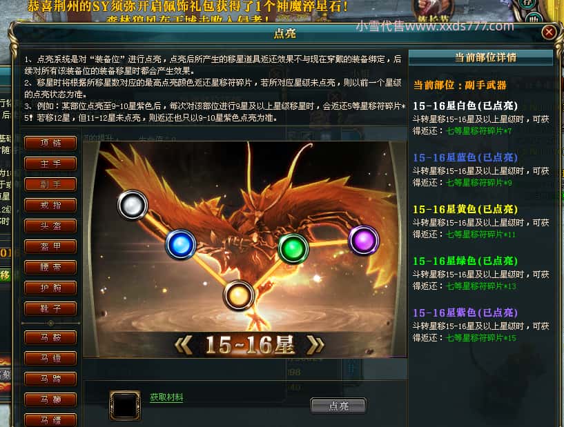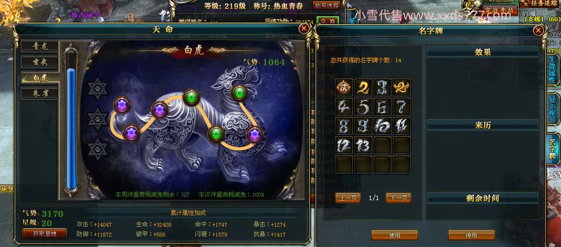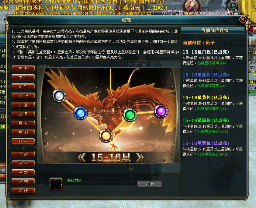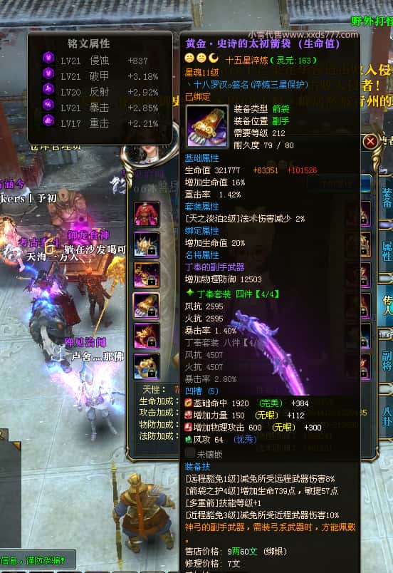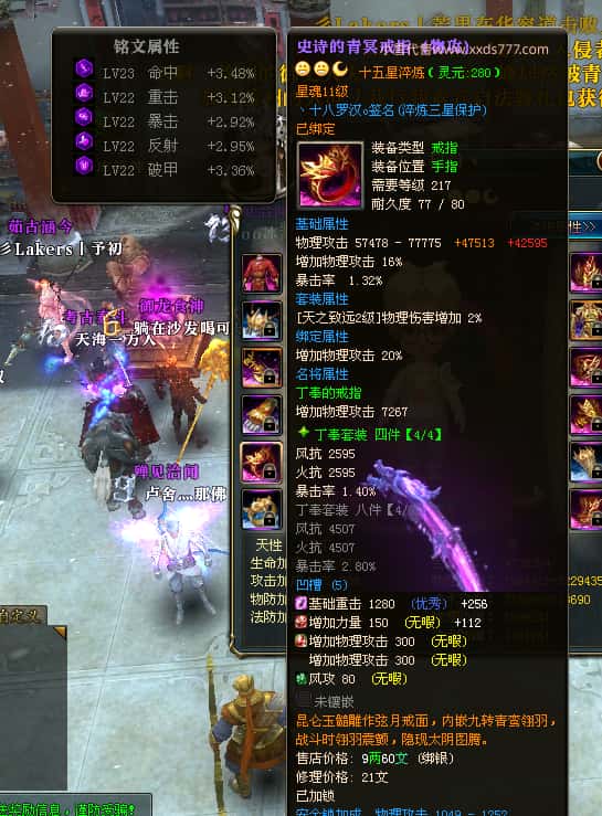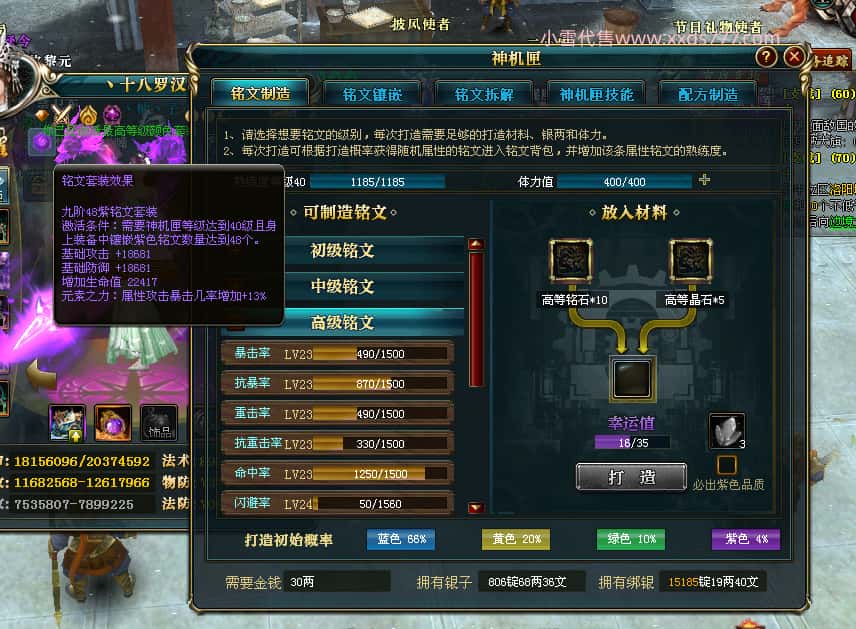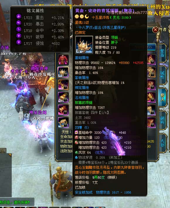 编号X24060 丶十八罗汉o 龙啸风云 荆州 本国排名33名 17117W战力 人物黄金普通橙15X(9件混沌) 传人史诗紫15X 副将极品紫12X 马史诗12X 精良紫15披风 人物星魂16级 传人星魂11级 副将星魂6级 马星魂12级 人物铭刻1件17级2件16级其余15级 点亮16星 马铭刻12级 点亮马鞍马镫14星剩下12星 人物绿龙印(武器衣服紫) 马黄龙印 五六等单双属性神圣完美无暇石头 黄蓝孔
