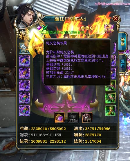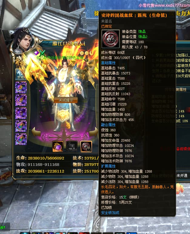 编号L24073 灌江口话事人i 龙战王者 燕州 本国排名25名 5038W战力 人物黄金精良橙15X(5件混沌) 马加强橙12X 人物绿龙印(8件紫龙印) 马黄龙印(1件绿龙印) 六等单双属性石头