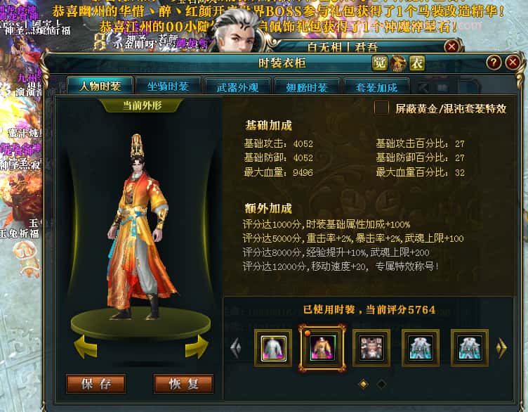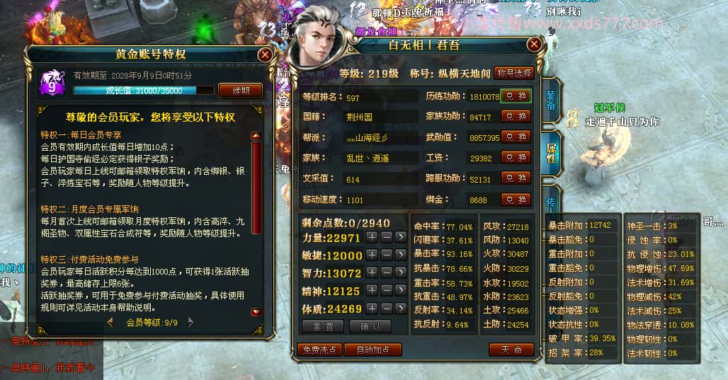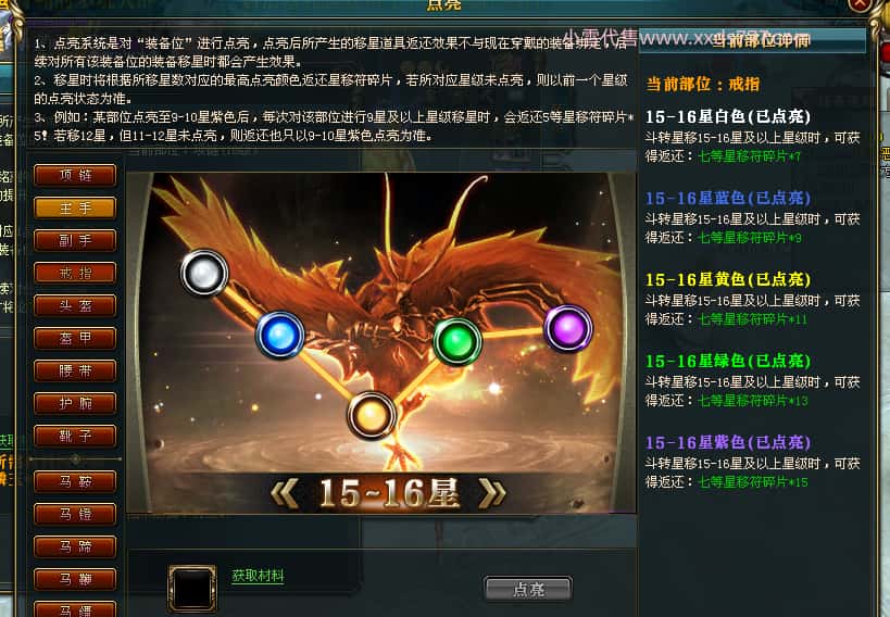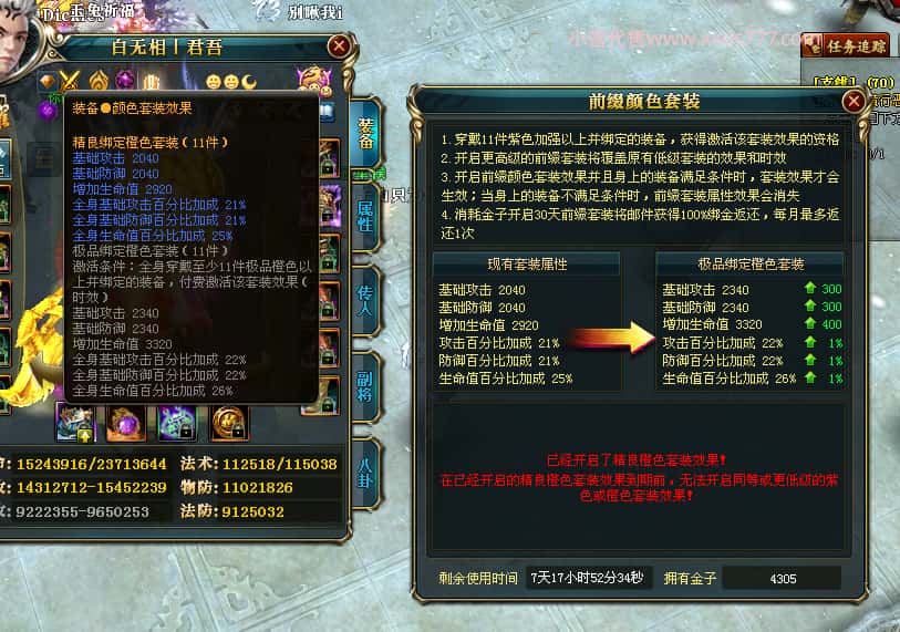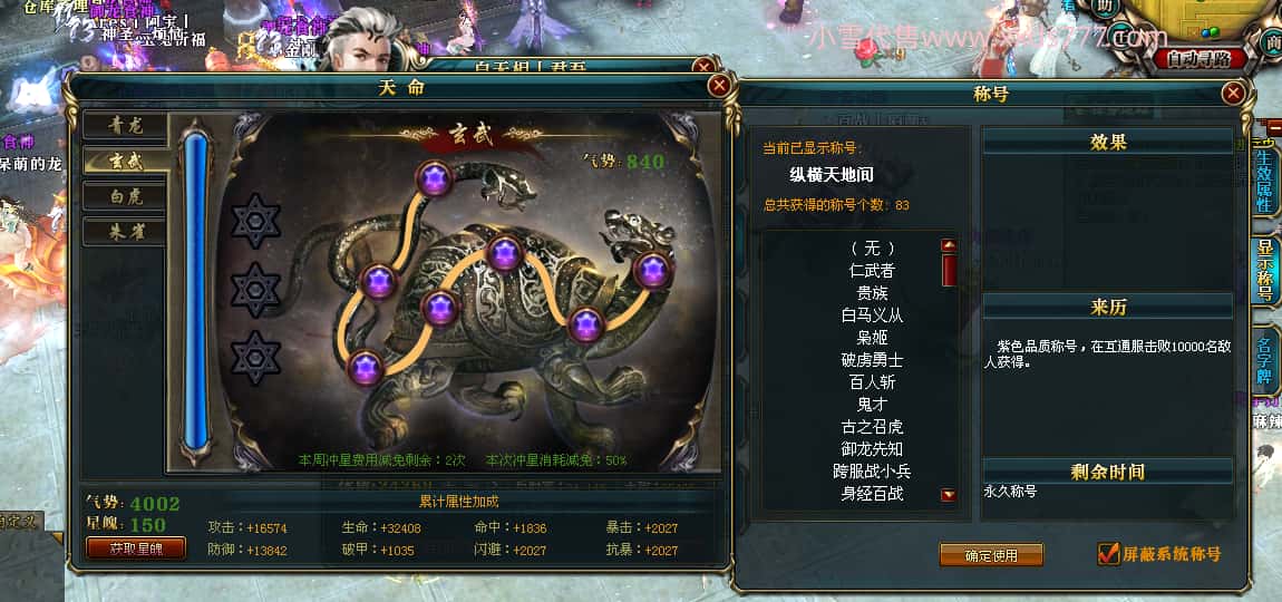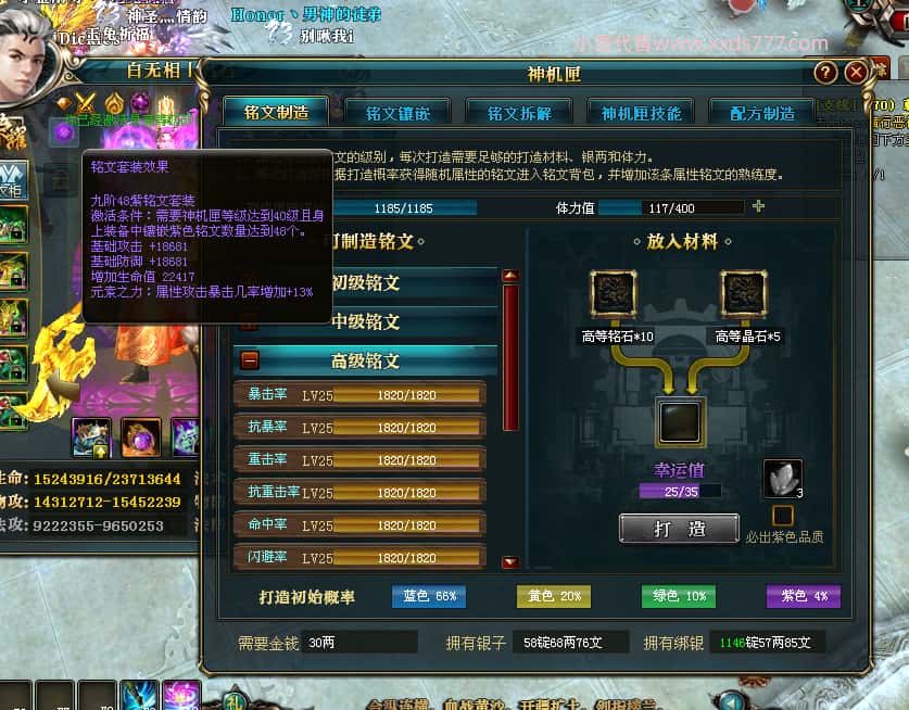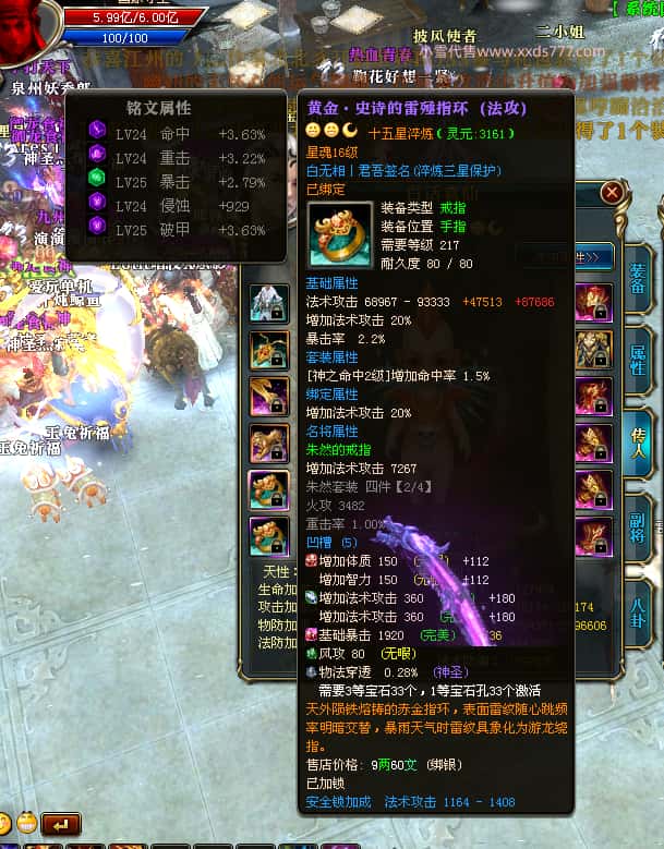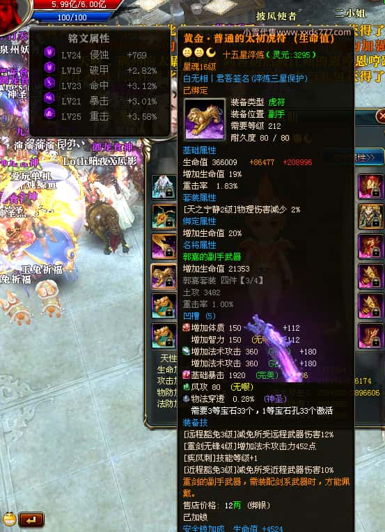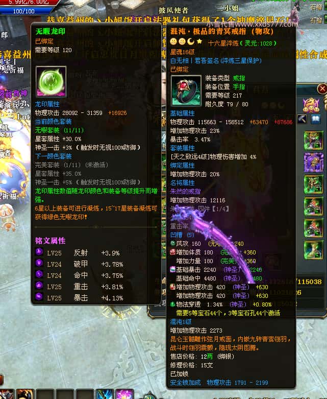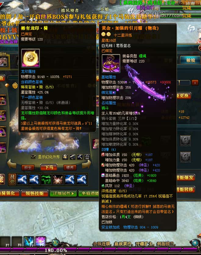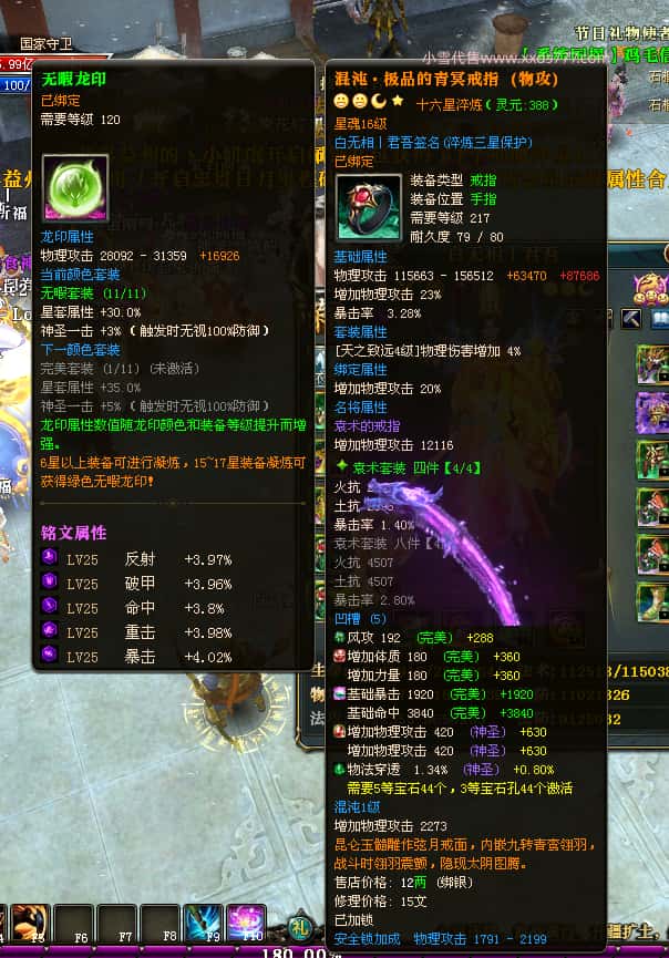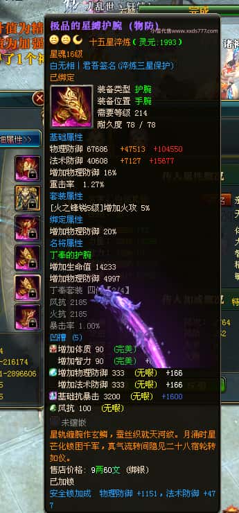 编号W24085 白无相丨君吾 龙舞九州 荆州 世界排名79名 24502W战力 人物黄金精良橙15X(7件混沌) 传人极品紫15X 副将精良紫15X 马黄金加强橙12X 极品紫16披风 人物星魂16级 传人星魂16级 副将星魂6级 马星魂16级 人物铭刻15级 点亮16星 马铭刻1件14级其余13级 马点亮2件14星其余12星 人物绿龙印(1件紫龙印) 马黄龙印 五六等单双属性神圣完美无暇石头 黄绿孔