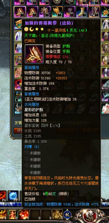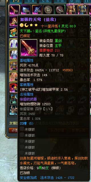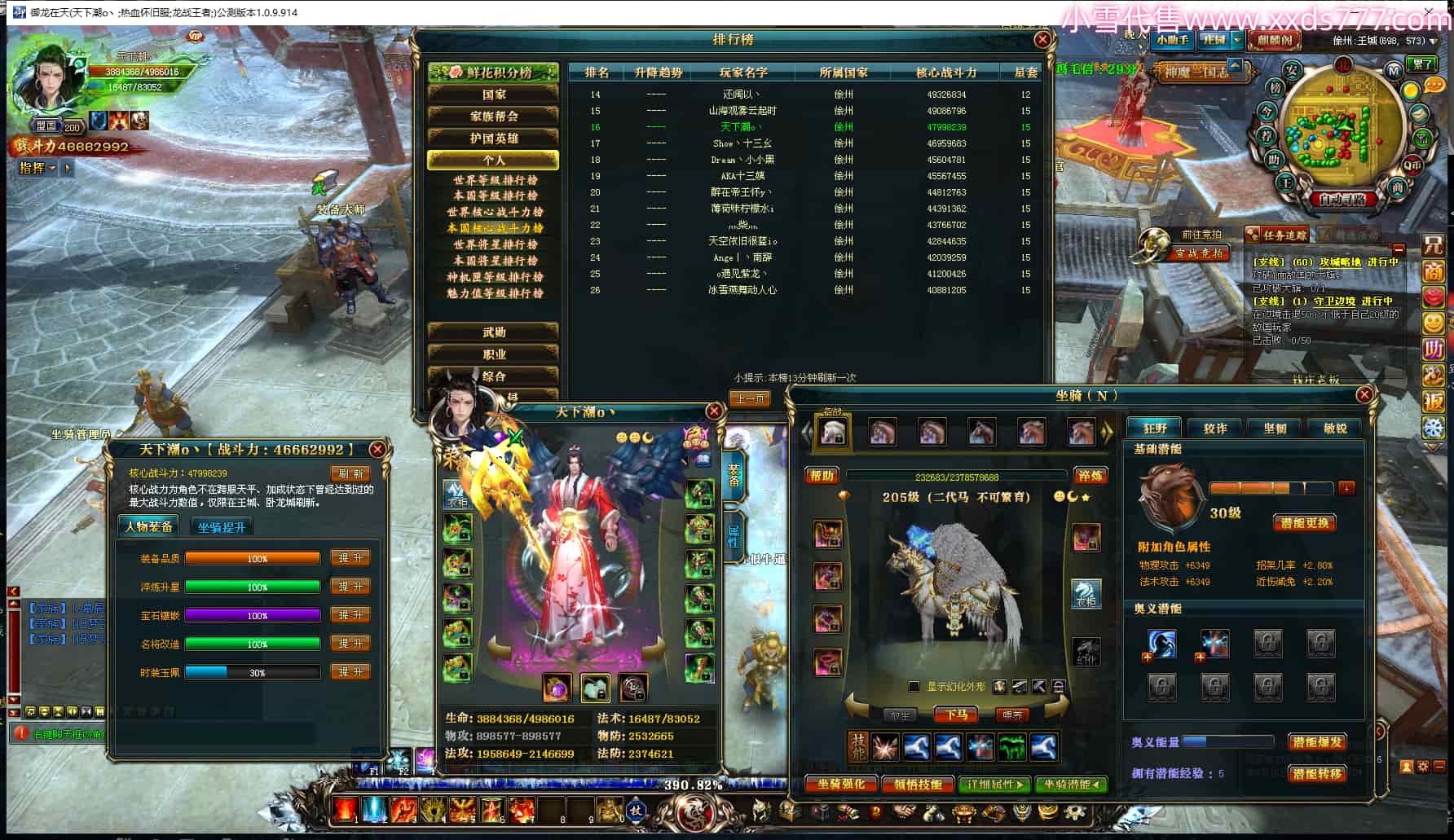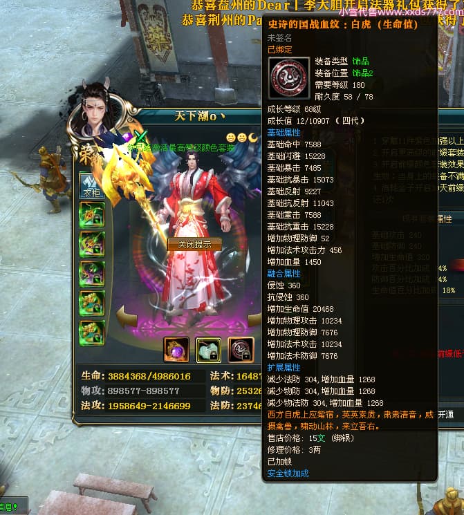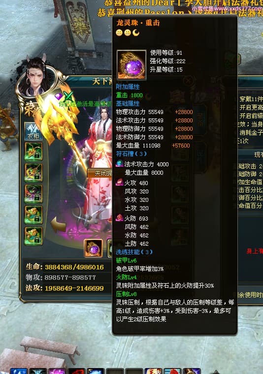 编号L24089 天下潮o丶 龙战王者 徐州 本国排名16名 4666W战力 人物黄金加强橙15X(5件混沌) 马普通橙10X 人物绿龙印 马黄龙印 六等单双属性石头 可以转移百分百安全