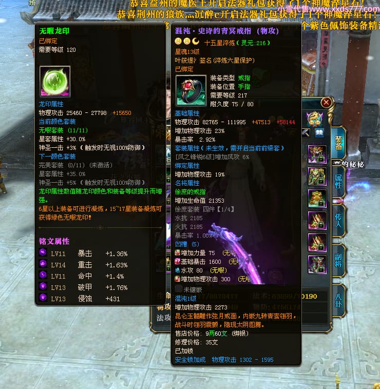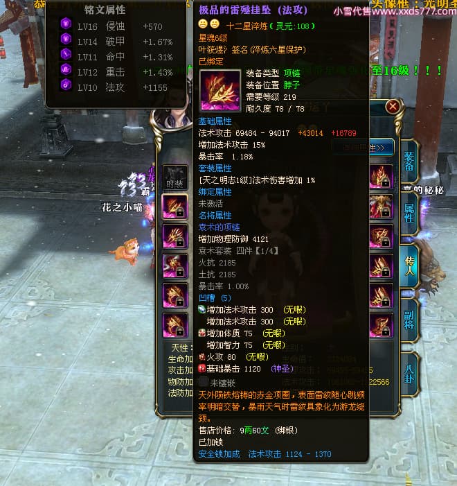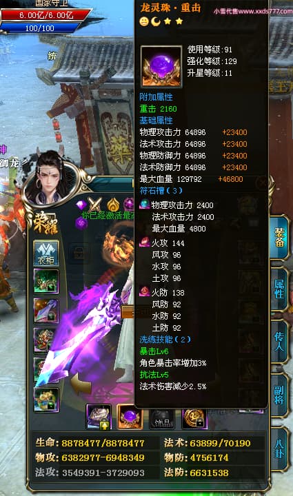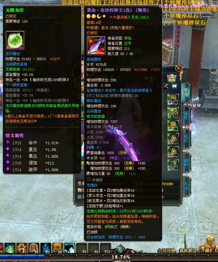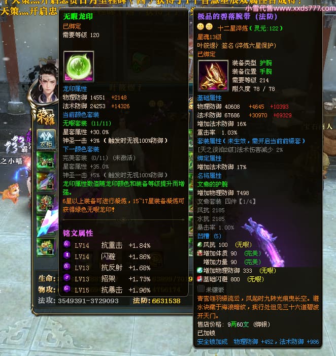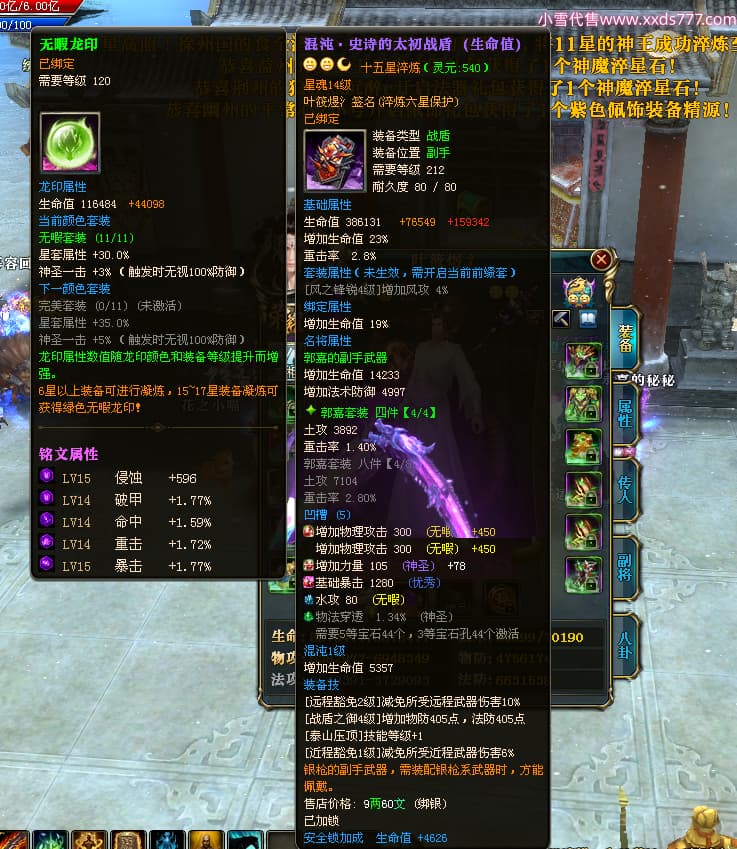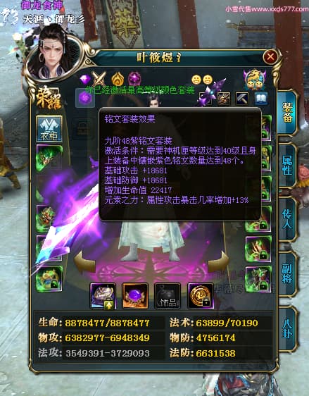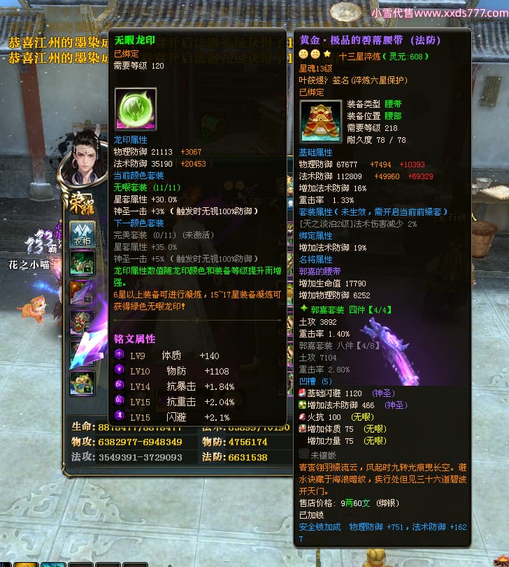 编号W24092 叶筱煜氵 龙舞九州 扬州 8792W战力 人物史诗紫12X(6件15X5件混沌) 传人精良紫12X 副将精良紫12X 马极品紫9X 加强紫13披风 人物星魂13级 传人6级 马星魂6级 人物铭刻3件15级其余12级 点亮1件16星2件14星其余12星 马铭刻9级 点亮10星 人物绿龙印 马蓝龙印 五等单双属性神圣完美无瑕石头