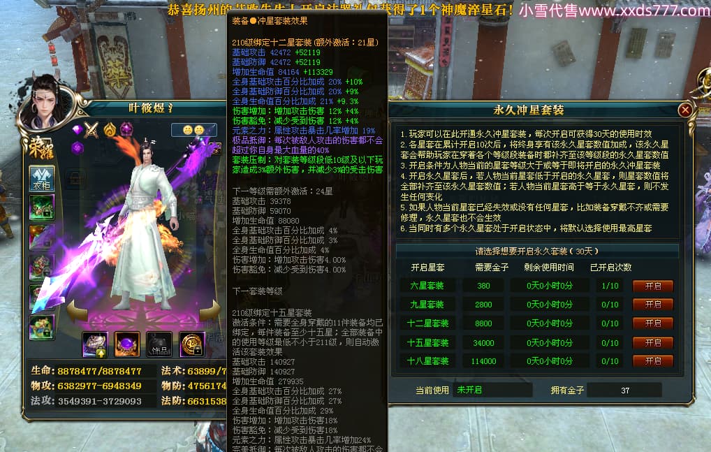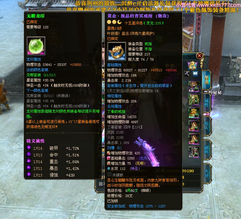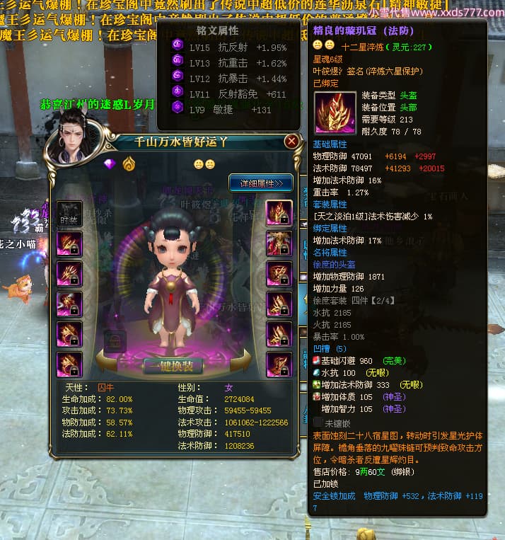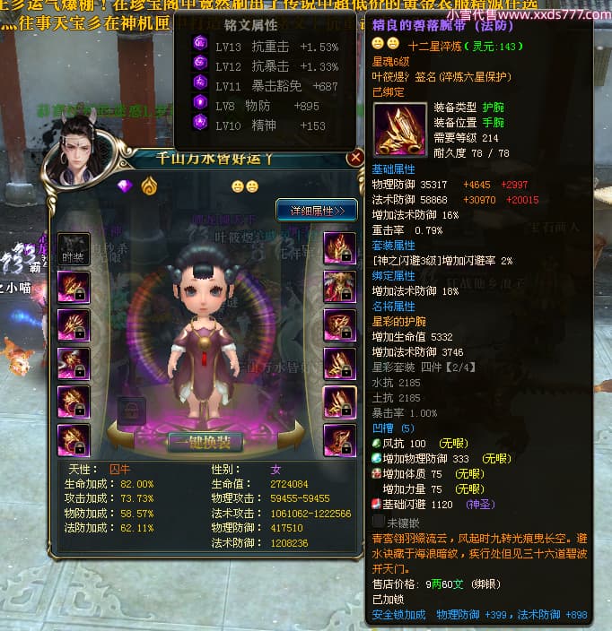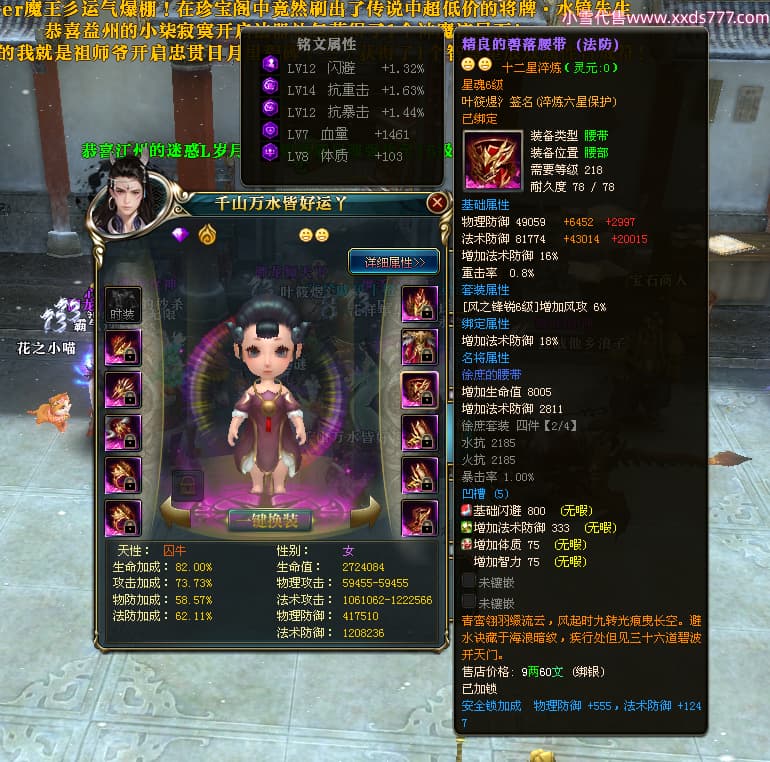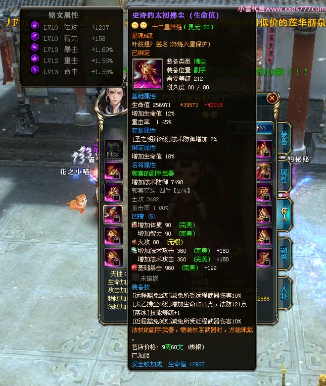 编号W24092 叶筱煜氵 龙舞九州 扬州 8792W战力 人物史诗紫12X(6件15X5件混沌) 传人精良紫12X 副将精良紫12X 马极品紫9X 加强紫13披风 人物星魂13级 传人6级 马星魂6级 人物铭刻3件15级其余12级 点亮1件16星2件14星其余12星 马铭刻9级 点亮10星 人物绿龙印 马蓝龙印 五等单双属性神圣完美无瑕石头